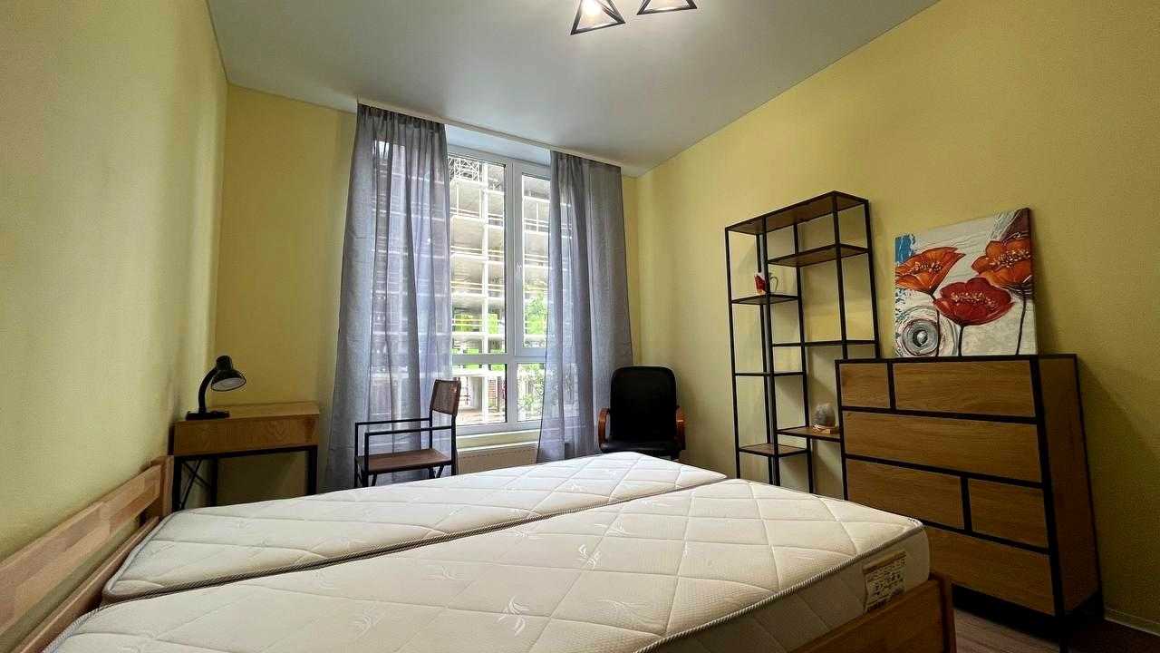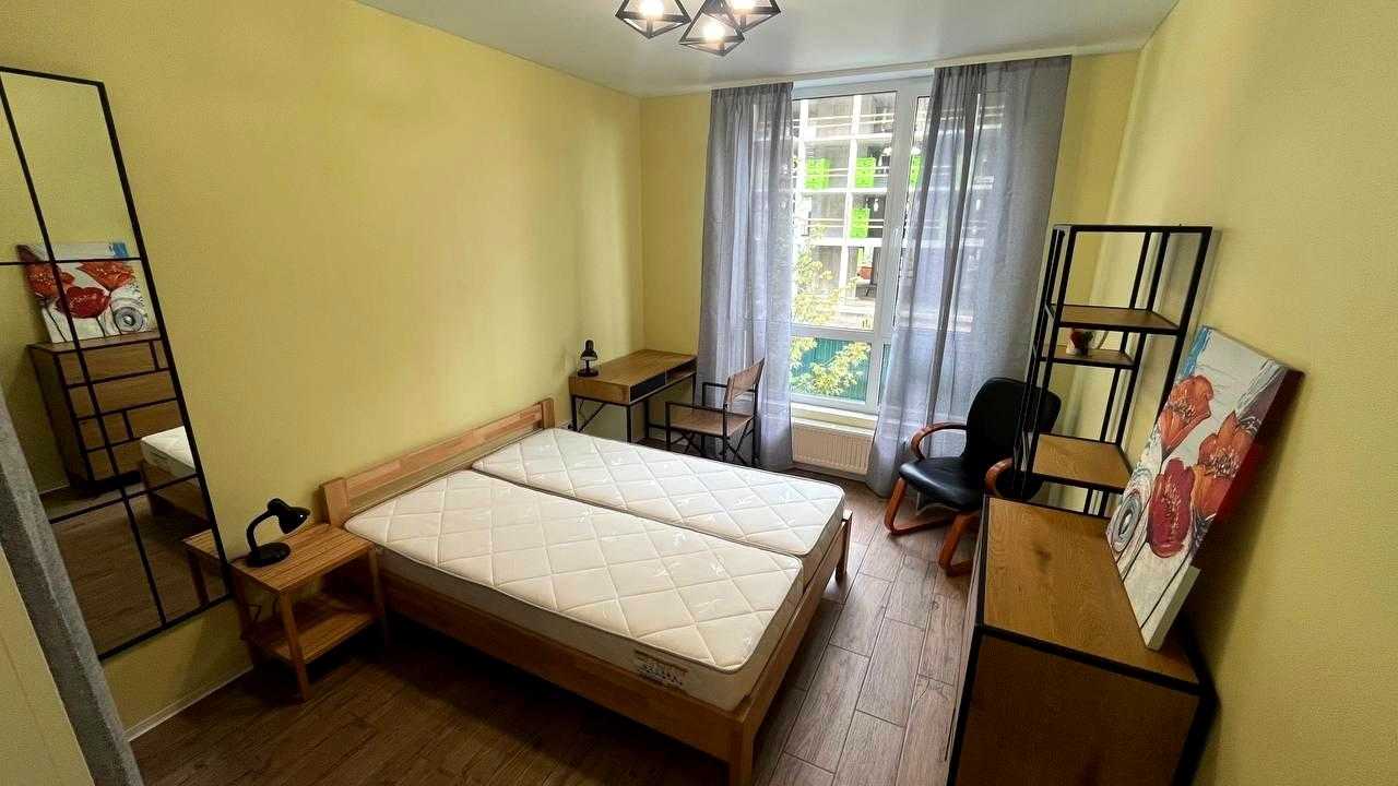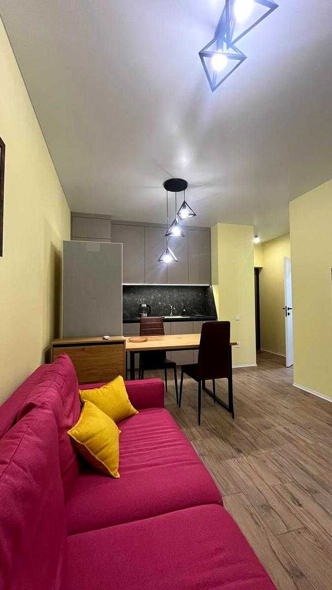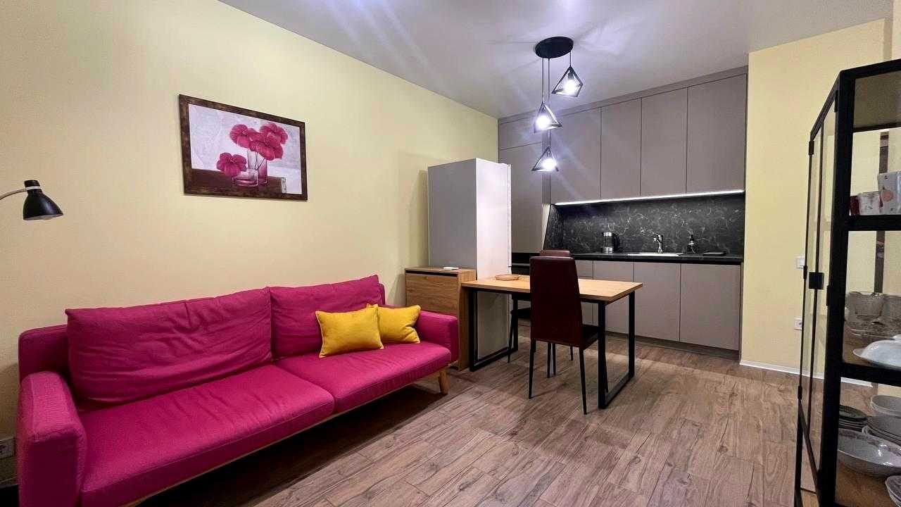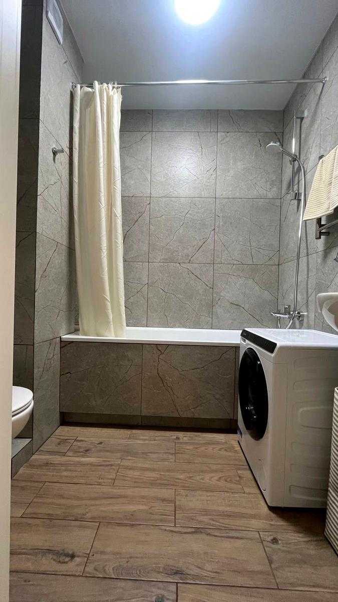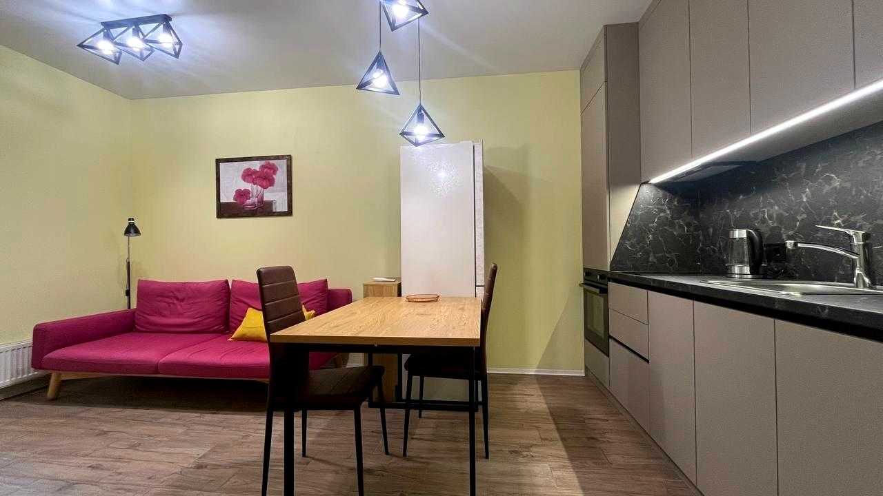 Светла та затишна 1-кімнатна квартира в сучасному ЖК "Файна Таун" на Салютній вул., 2-Б, в Шевченківському районі Києва. Площа квартири складає 39 м², розташована на 2-му поверсі. Квартира повністю готова до проживання, обладнана вбудованою технікою, меблями, включаючи зручне ліжко, пральну машину, холодильник та варильну поверхню. ЖК має власну інфраструктуру: закрита територія з охороною, басейн, ландшафтний парк, магазини та фітнес-центр. Метро "Нивки" знаходиться в 10 хвилинах пішки.