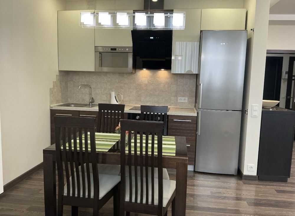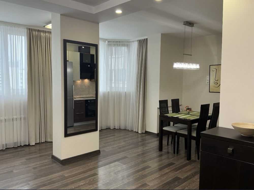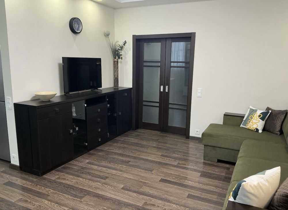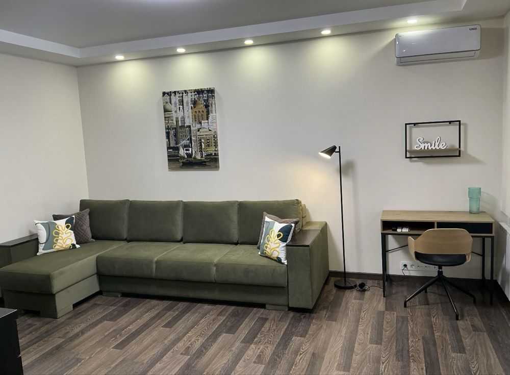 Пропонується до уваги квартира-студія площею 45 кв. м в солідному районі Позняків на вул. Драгоманова 6/1. У квартирі сучасний ремонт та нові меблі, з технікою марки Electrolux. Є велика ванна кімната, простора гардеробна, комп'ютерний стіл та новий розкладний диван. В оснащення входять посудомийна машина, духова шафа, електрична варочна поверхня, холодильник, пральна машина, бойлер та мікрохвильова піч. У будинку встановлений генератор, ліфти працюють навіть при відключенні електрики. Розвинута інфраструктура, поруч магазини та ресторани, до метро 5 хв на транспорті.