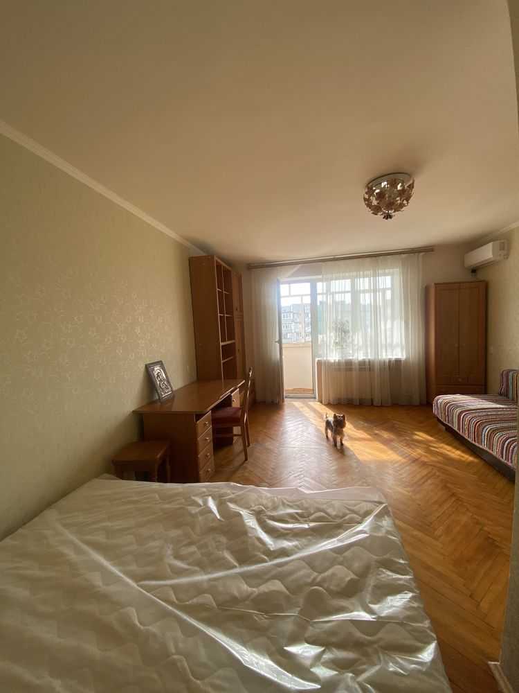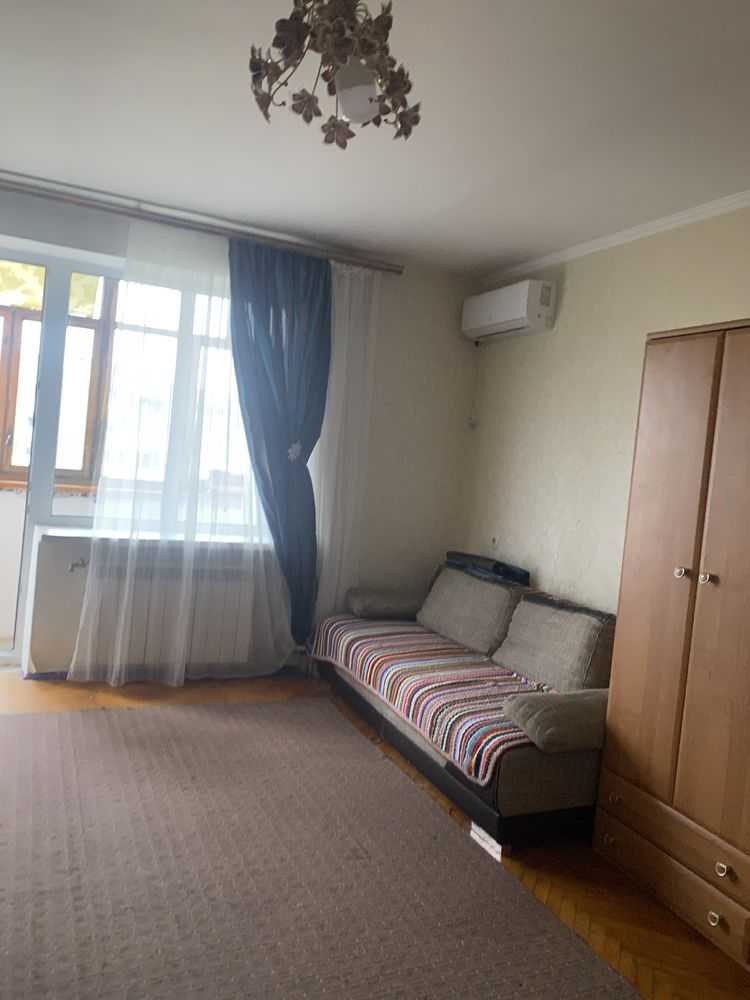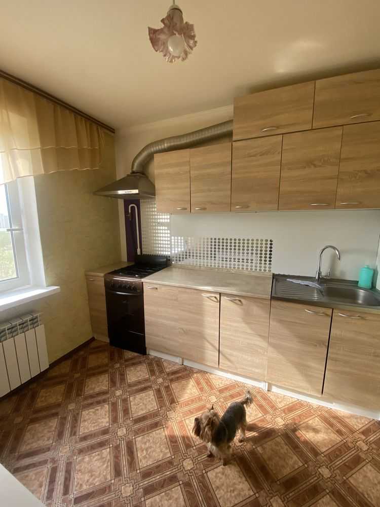 У Києві на вул. Тростянецька, пропонується однокімнатна квартира площею 40 м², розташована на 9 поверсі. У кімнаті 18 м² міститься двоспальне ліжко, розкладний диван, шафа і письмовий стіл. З кімнати є вихід на засклений балкон. Кухня обладнана новими меблями, бойлером, кондиціонером, пральною машиною, газовою плитою з духовкою та витяжкою. Район має розвинену інфраструктуру, поруч зупинки транспорту та магазини: АТБ, Варус, Сільпо, ТЦ New Way та Рівер Мол. Неподалік знаходиться Парк Партизанської Слави.