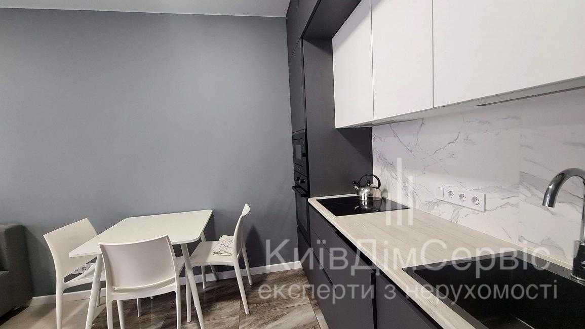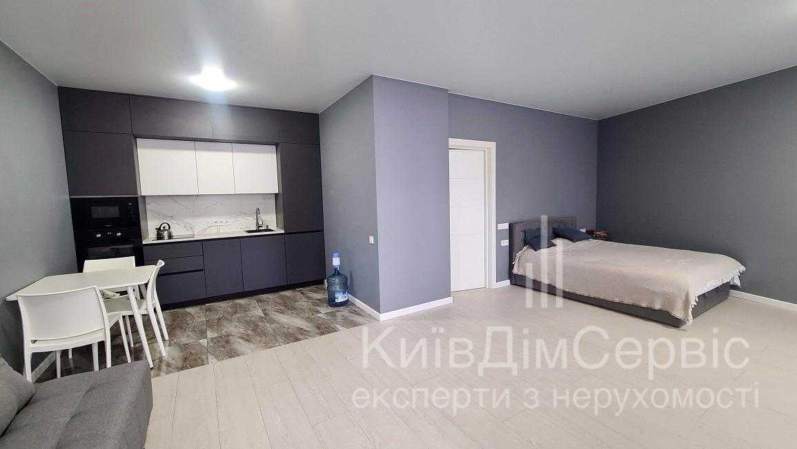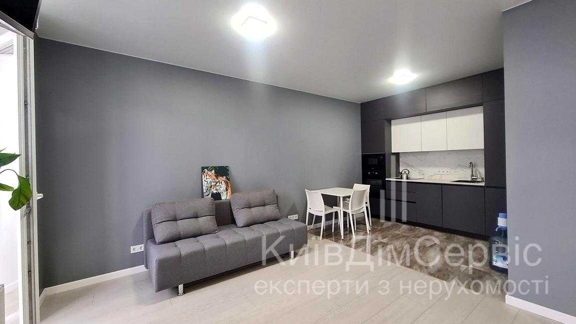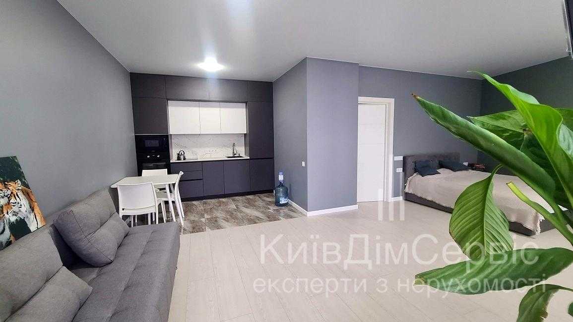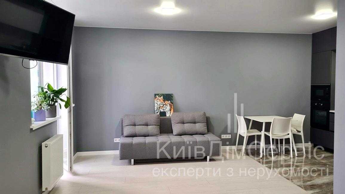 Квартира розташована на вул. Олени Пчілки, в новому житловому комплексі Традиція. Однокімнатне планування зі студійним оформленням, площа 50 кв.м. Виконано євроремонт, квартира обладнана меблями та технікою, включаючи телевізор, холодильник та кондиціонер. Будинок має закриту територію, з паркінгом та зручною транспортною розв'язкою. Поруч розташовані соціальні об'єкти, супермаркети, ресторани, а також зелені зони для відпочинку. До метро Позняки – 20 хвилин пішки.