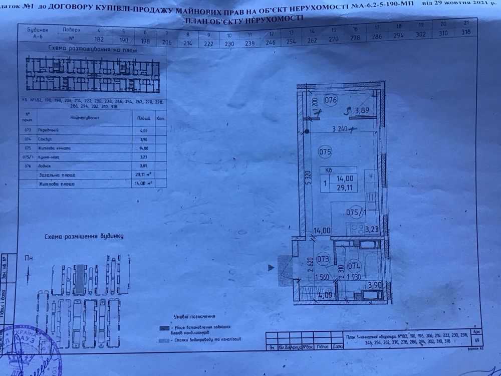 Квартиру розташовано в житловому комплексі «Нова Англія», що знаходиться у Голосіївському районі Києва. Загальна площа – 29.11 м2, квартира має кутове розташування з чотирма вікнами, два з яких панорамні. Також є балкон. Вигідно планується як студія, є можливість зонування. В будинку встановлені три ліфти, а на етажі розташовані три кладовки. Комплекс має закриту територію з охороною, дворівневий підземний паркінг, дитячі та спортивні майданчики, а також розвинену інфраструктуру.