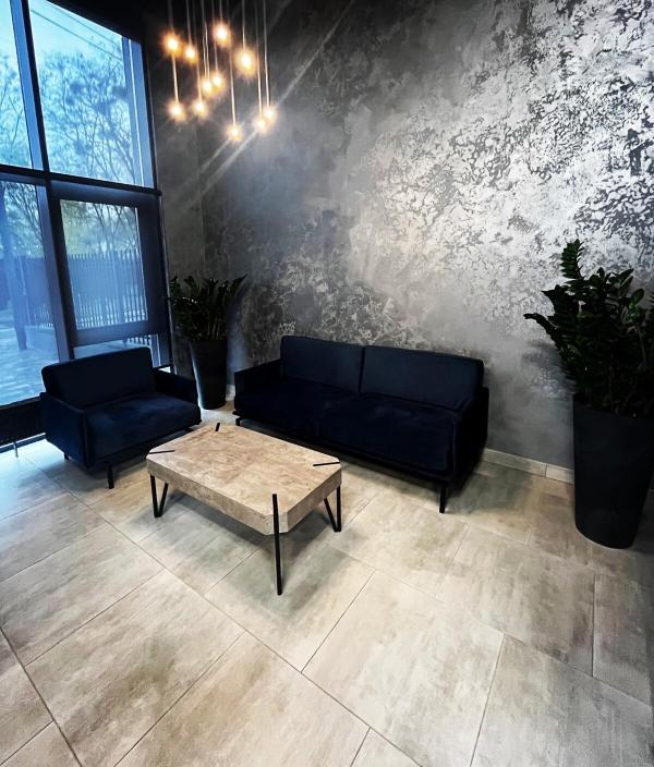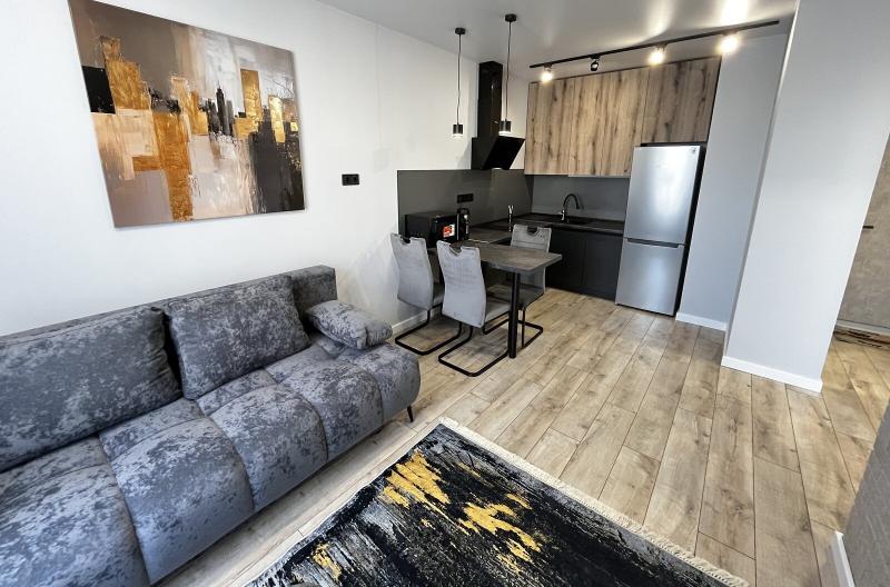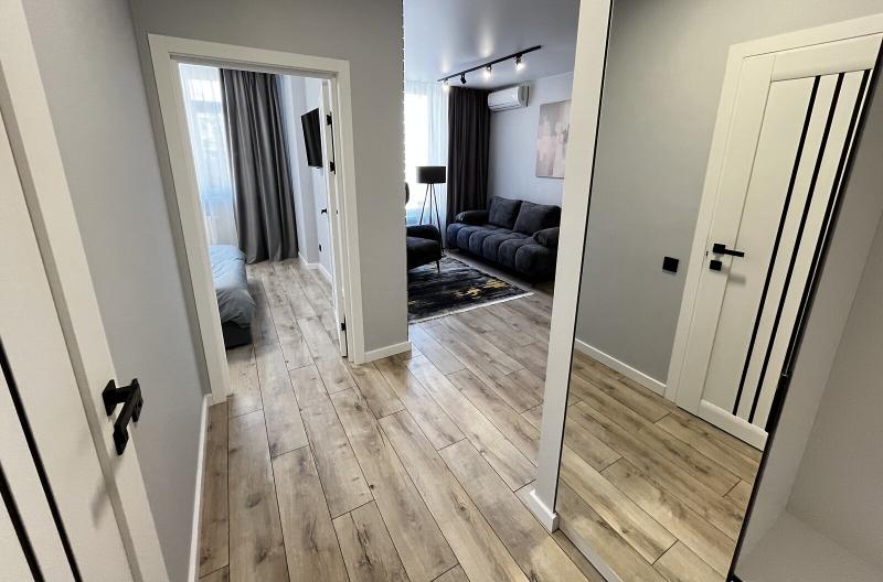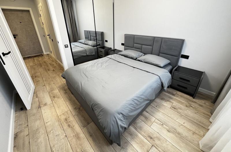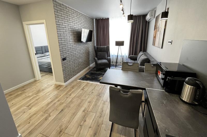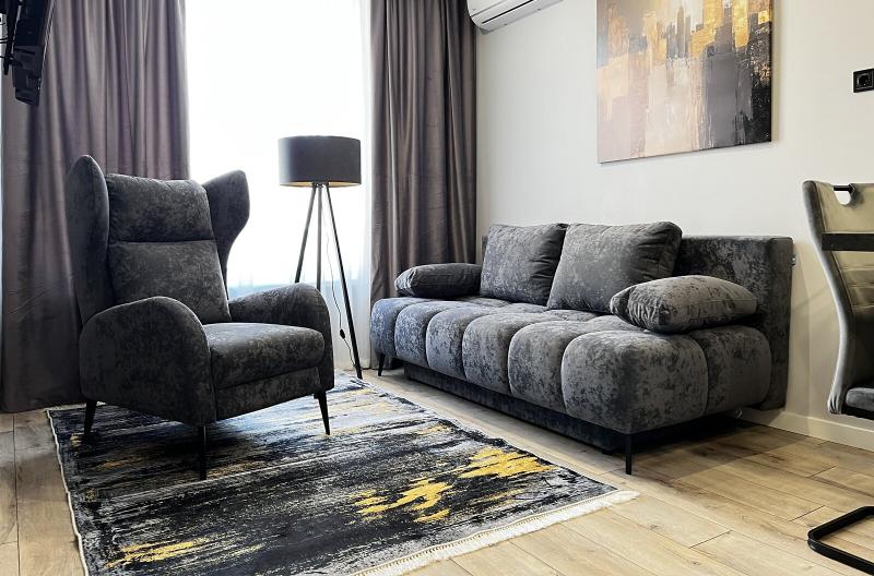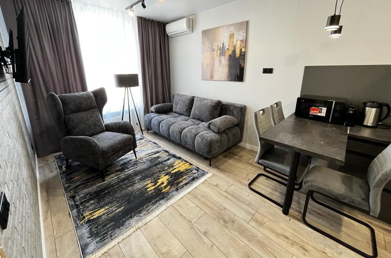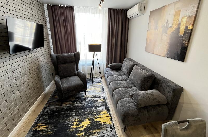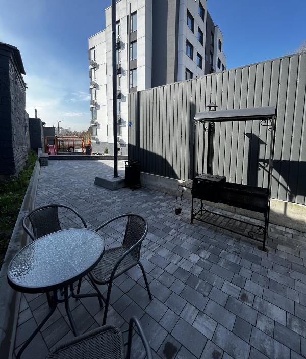 Квартира евродушка, загальною площею 37 м2, розташована на 5-му поверсі ЖК ONYX на вулиці Менделєєва, 19. У будинку є генератор, інвертор та сонячні панелі, що забезпечують електропостачання, опалення та інтернет, навіть під час відключень. Закрита територія з охороною та відеонаглядом, підземне укриття з WI-FI, а також підземний та наземний паркінги. Присутні дитяча та спортивна площадки, зона для барбекю. Поруч магазини, ТРЦ та станція метро.