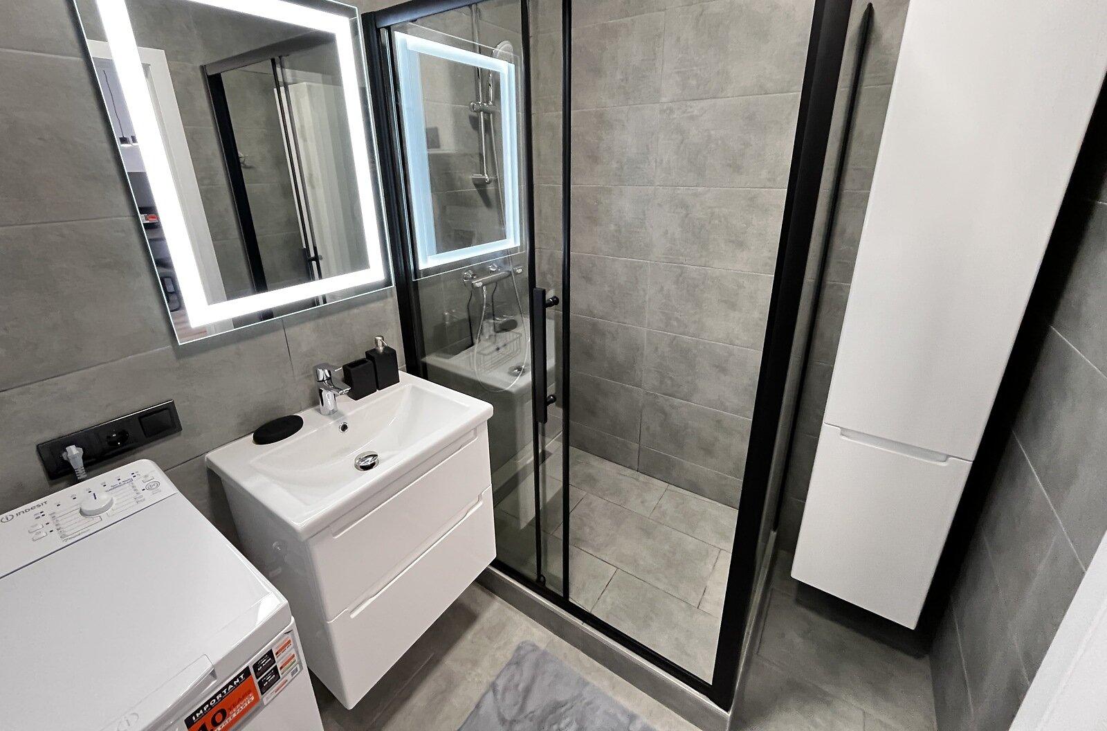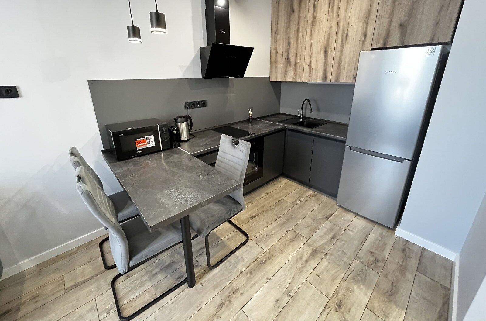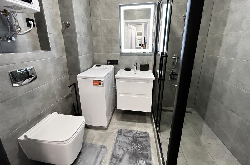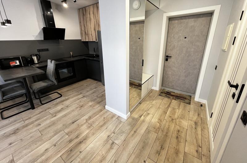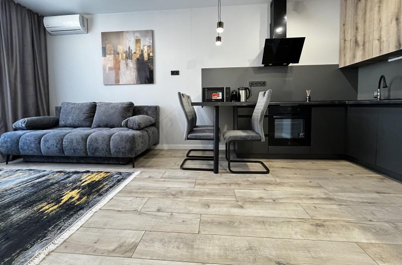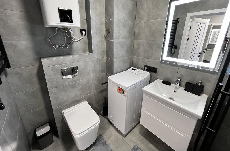 Квартира евродушка, загальною площею 37 м2, розташована на 5-му поверсі ЖК ONYX на вулиці Менделєєва, 19. У будинку є генератор, інвертор та сонячні панелі, що забезпечують електропостачання, опалення та інтернет, навіть під час відключень. Закрита територія з охороною та відеонаглядом, підземне укриття з WI-FI, а також підземний та наземний паркінги. Присутні дитяча та спортивна площадки, зона для барбекю. Поруч магазини, ТРЦ та станція метро.