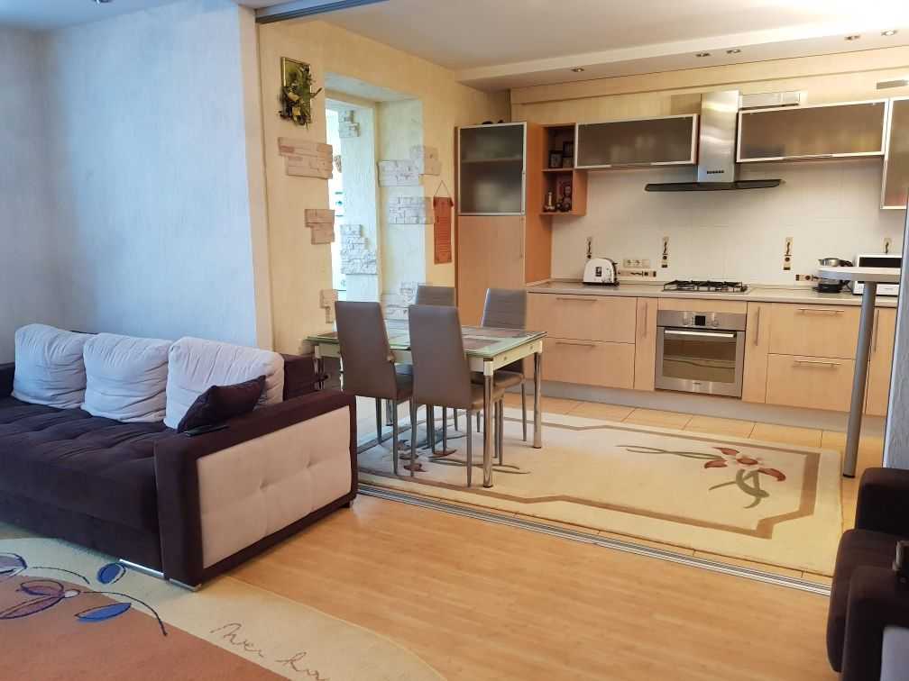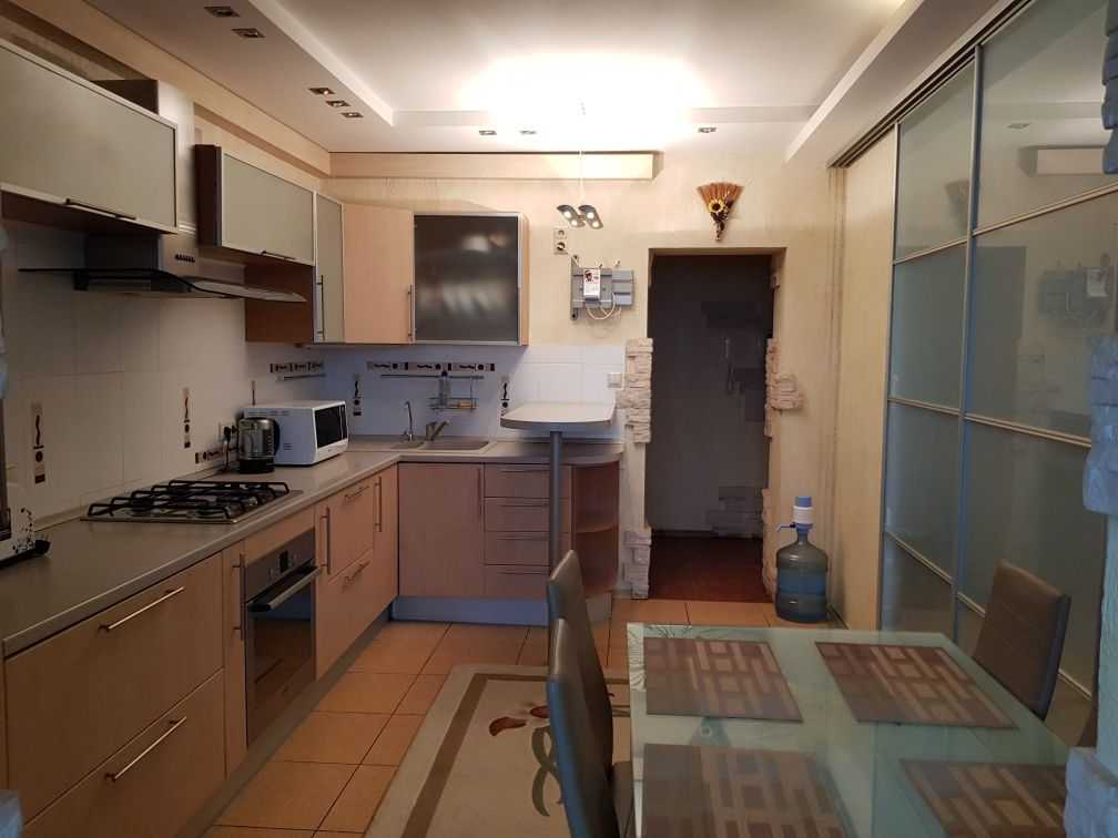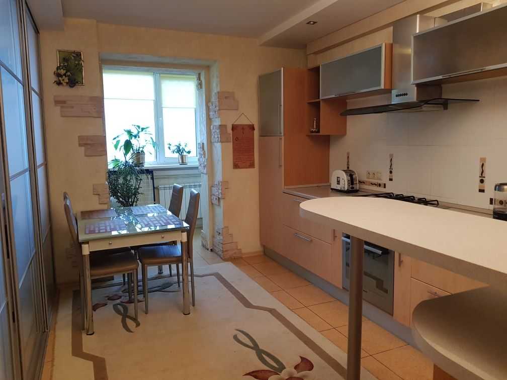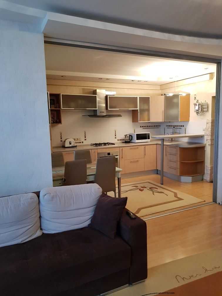 Терміново здається 3-х кімнатна квартира на вул. Хмельницькій 10. Площа 95 кв.м. Квартира з хорошим ремонтом, світла та простора, з вікнами на дві сторони. Є два санвузли, кожен з бойлером. Дві окремі кімнати з шафами-купе. Кухня-студія з великими меблями та повністю обладнана технікою: газова плита, витяжка, холодильник, мікрохвильова піч, електричний чайник, тостер, мультиварка. У холлі розташована велика двостороння шафа-купе. Квартира має 3 кондиціонери та підключений інтернет.