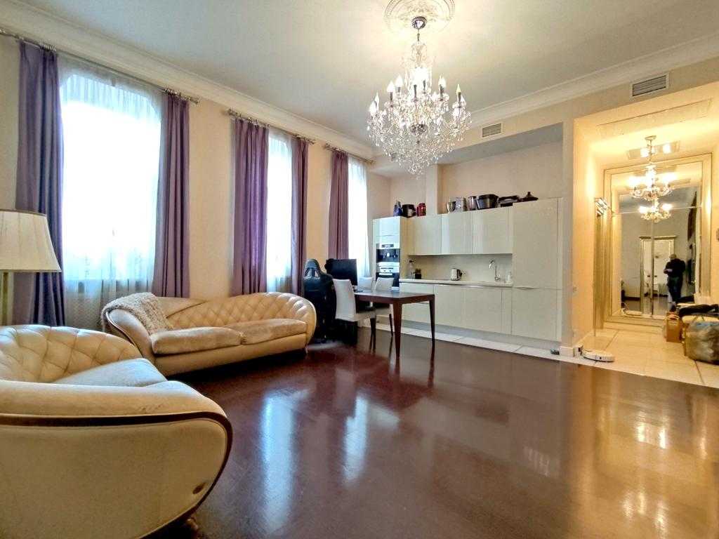 Апартаменти площею 69 кв.м. розташовані на вул. Архітектора Городецького в історичній частині Києва. Будинок сталінської архітектури з високими стелями (3,8 м) та великими вікнами, які відкривають красивий вид. Квартира має сучасний ремонт у класичному стилі з використанням якісних матеріалів. Планування включає спальню, кухню-вітальню, ванну кімнату з вікном, хол і гардеробну. Є балкон. Розвинута інфраструктура: поряд парки, театри, кіно, школи та дитсадки.