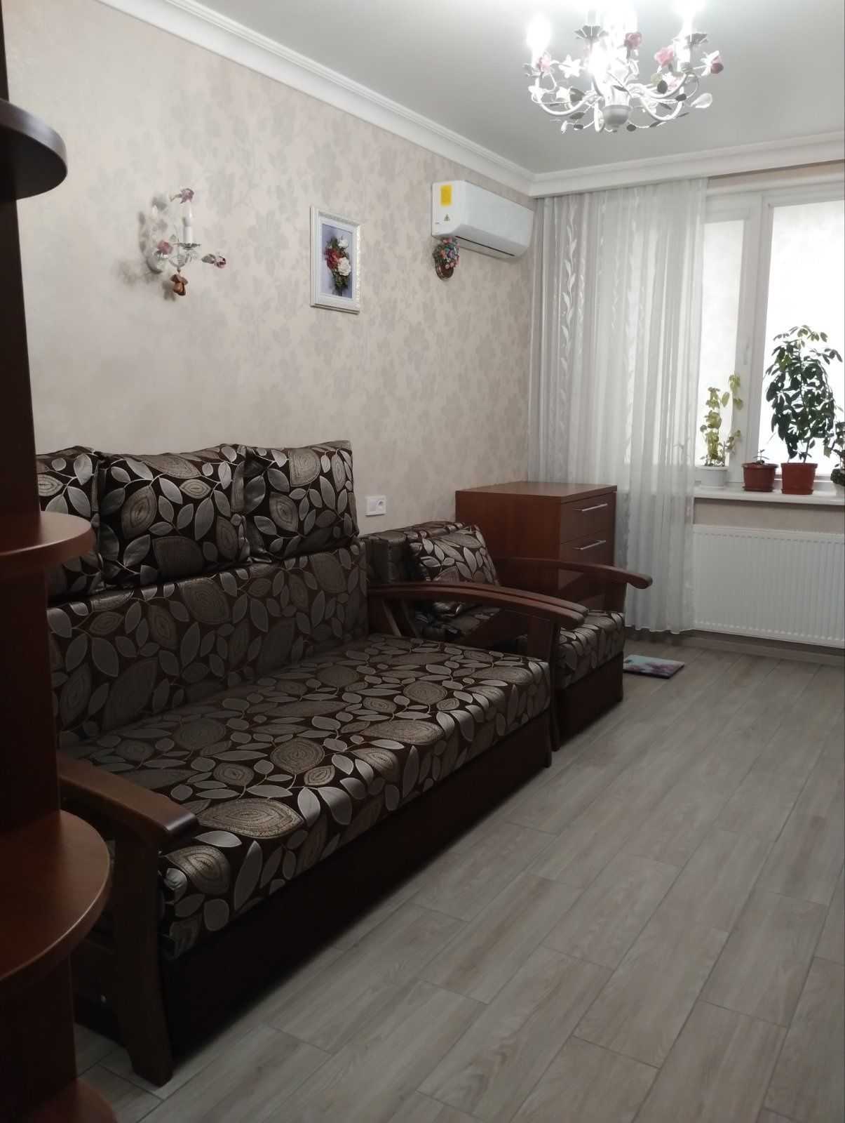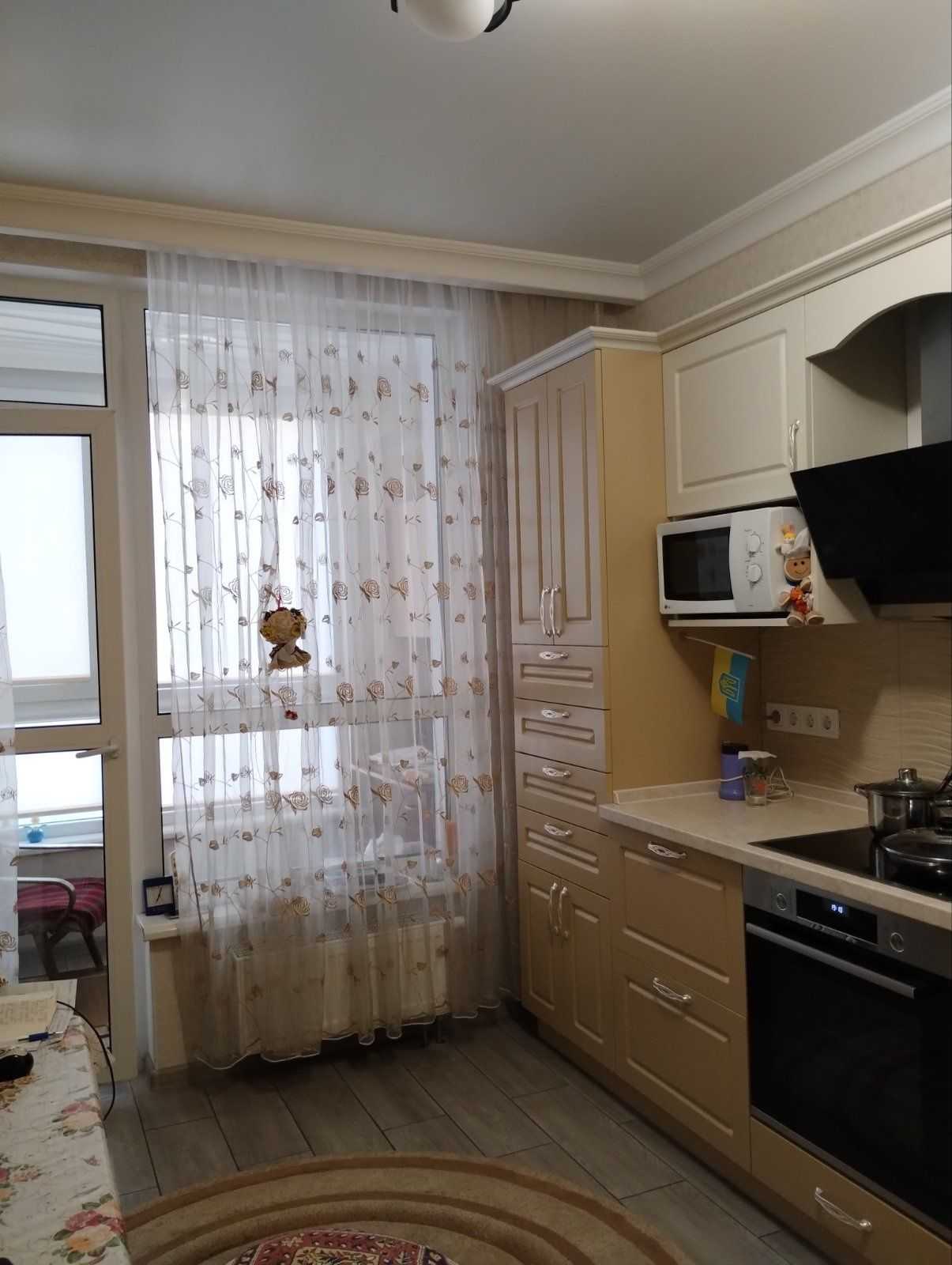Однокімнатна квартира в новобудові, розташована на 9 поверсі за адресою проспект Європейського союзу 45А, в Подільському районі Києва. Квартира повністю укомплектована меблями та побутовою технікою, має якісний ремонт. Укомплектована двоспальним диваном, телевізором, кондиціонером, електричною духовкою, варильною поверхнею, бойлером та пральною машиною. Закрита територія комплексу забезпечує укриття на випадок блекауту та наявність генератора. Додатково: відеоспостереження, охорона, три ліфти. Поряд зупинка транспорту, зручна інфраструктура: магазини, аптек, кав'ярні, школи.