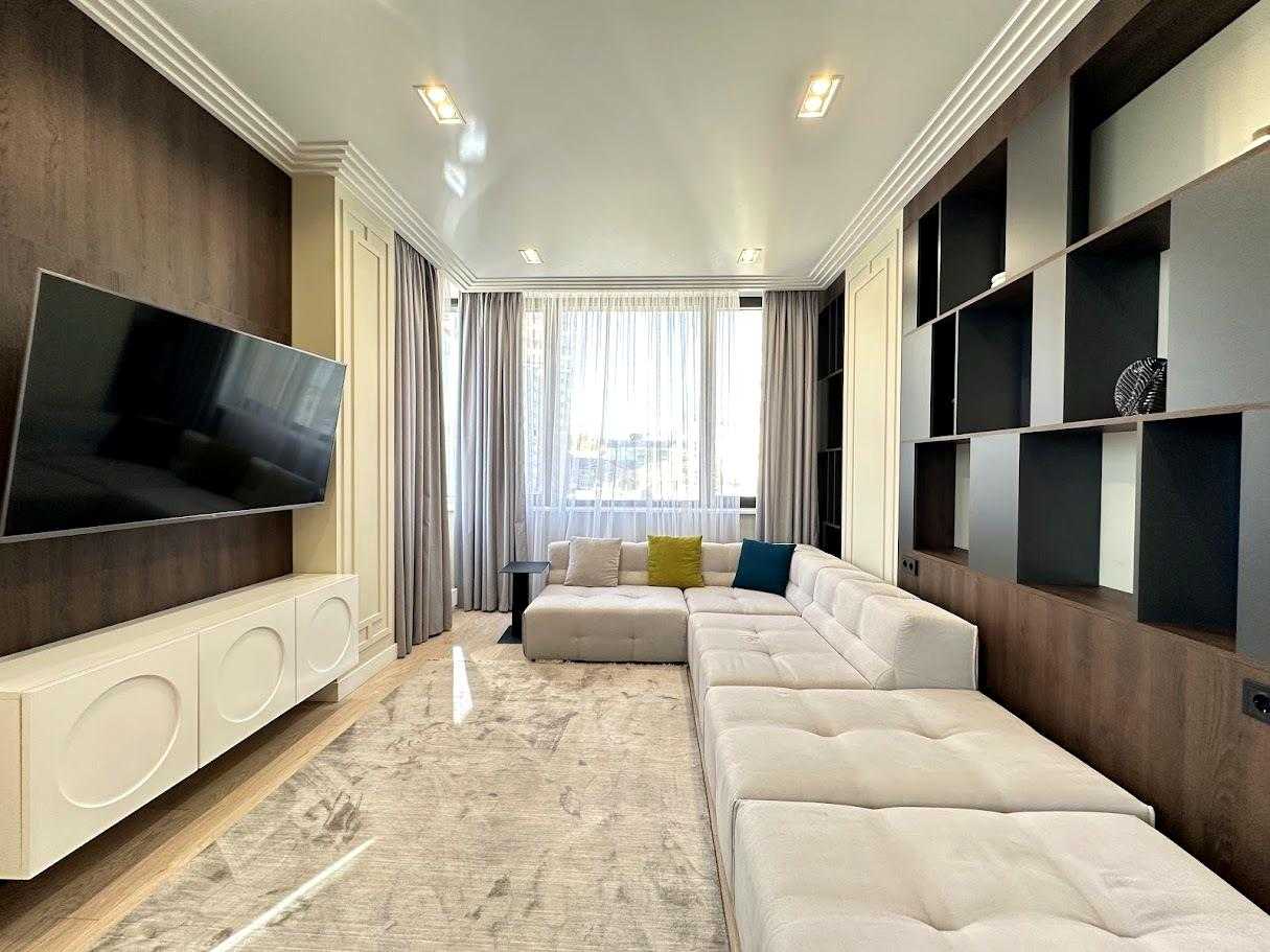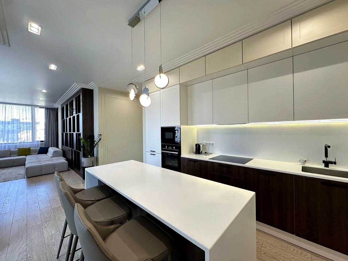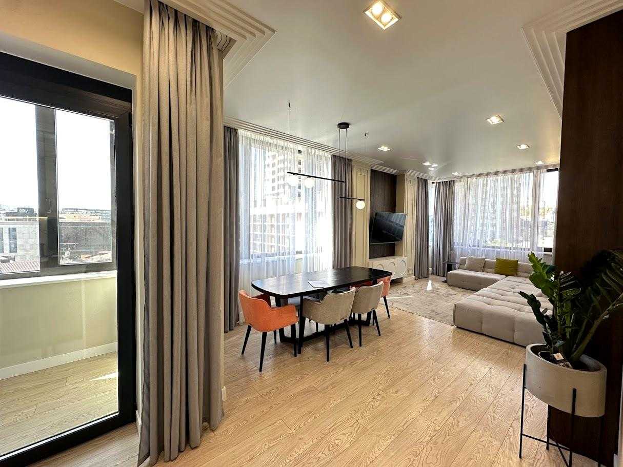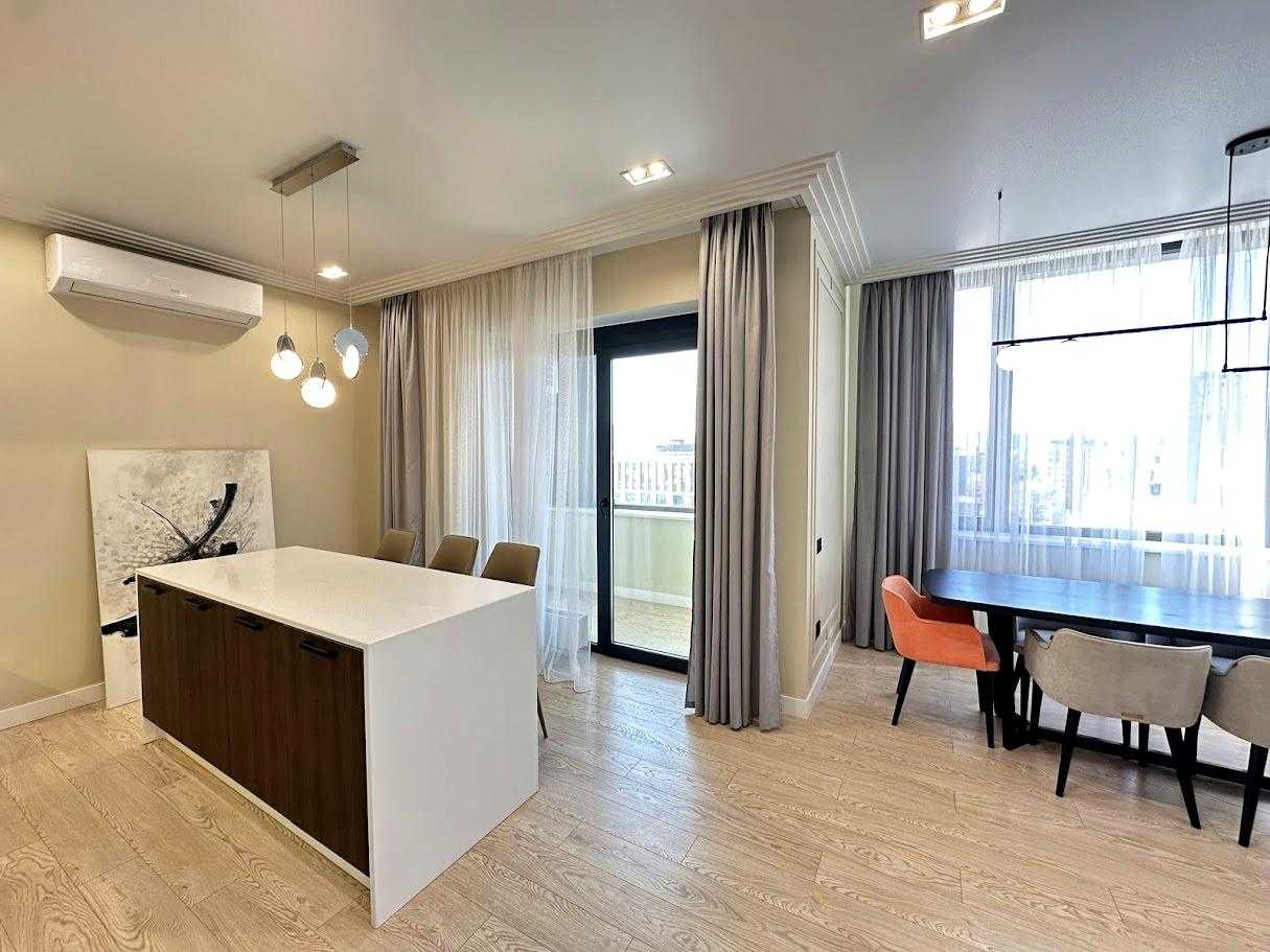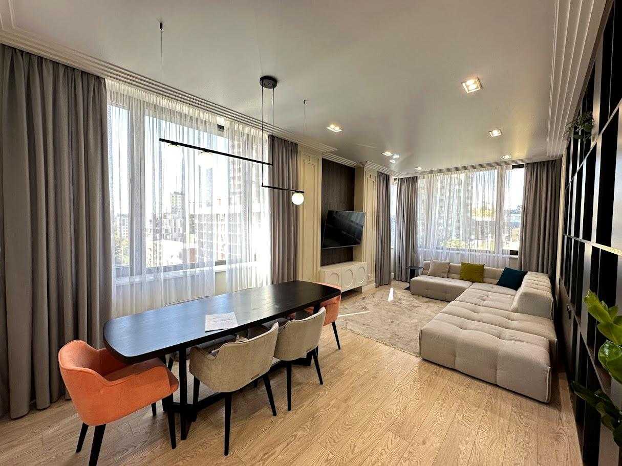 Пропонується 3-кімнатна дизайнерська квартира в ЖК бізнес-класу "Chicago Central House" у Голосіївському районі Києва. Загальна площа квартири 105 м². Квартира обладнана сучасною технікою та меблями з екологічно чистих матеріалів у світлих тонах. Функціональне планування включає кухню-вітальню з обідньою зоною, дві окремі спальні та два санвузли. ЖК має розвинену інфраструктуру, сучасні комунікаційні системи та система відеоспостереження для безпеки.