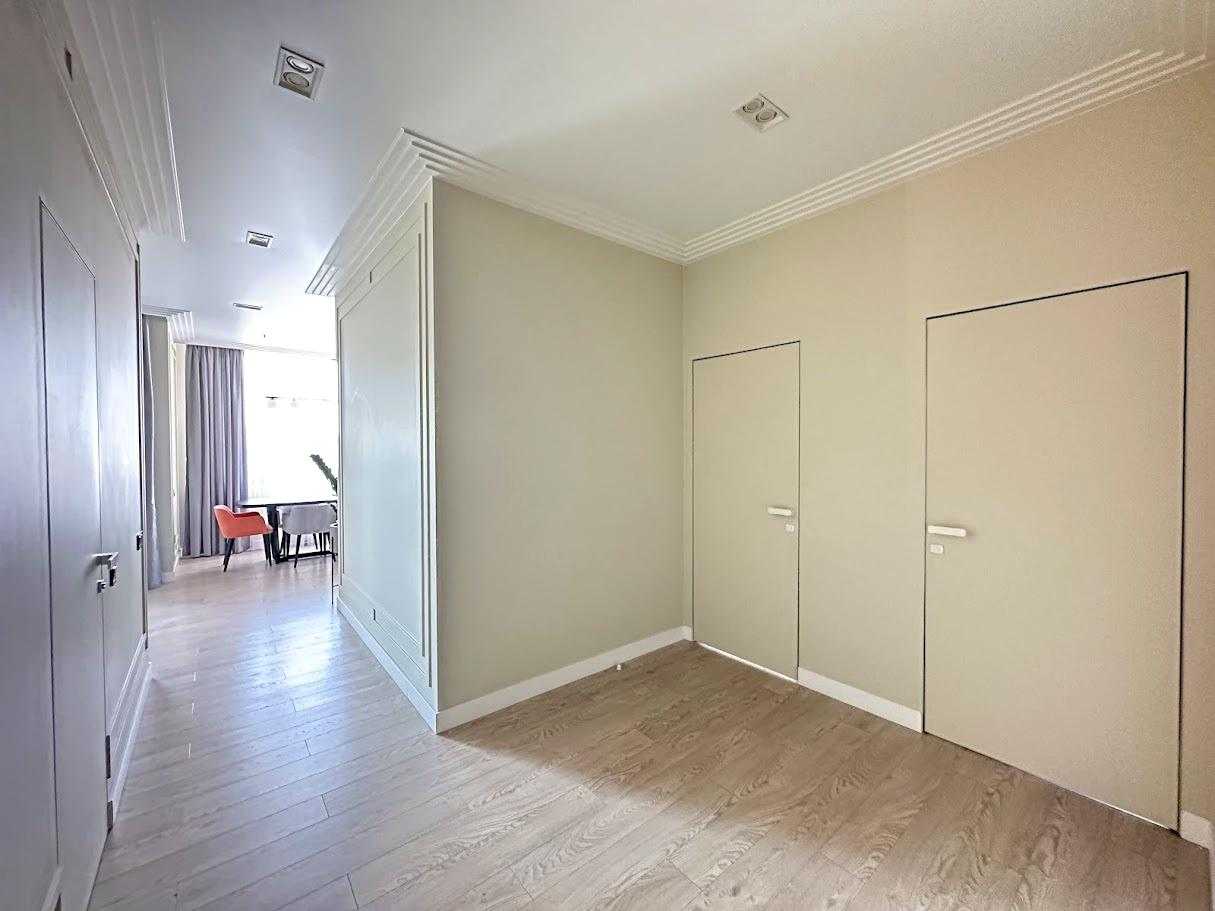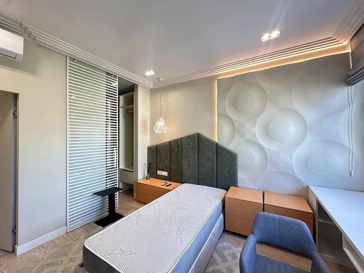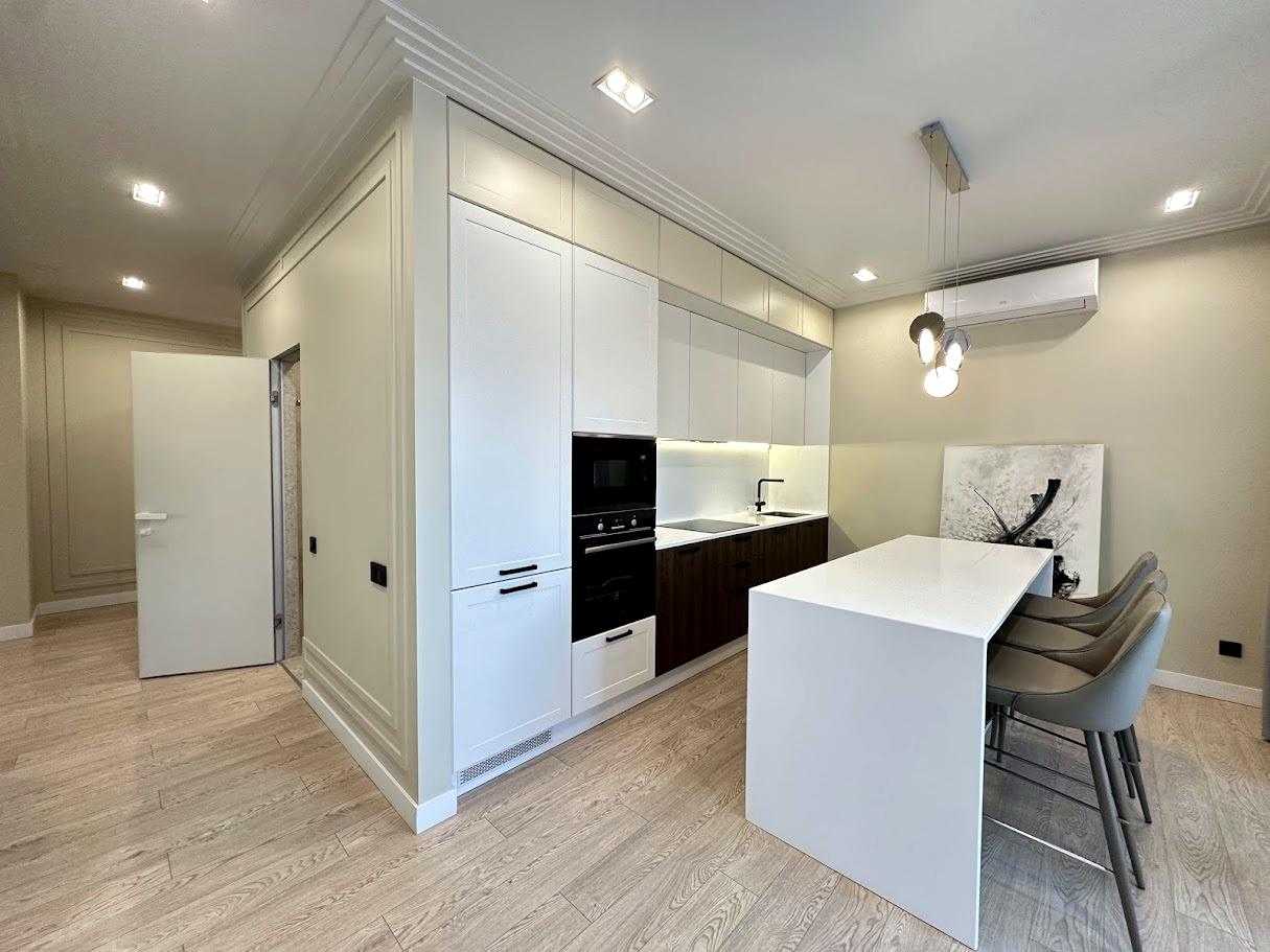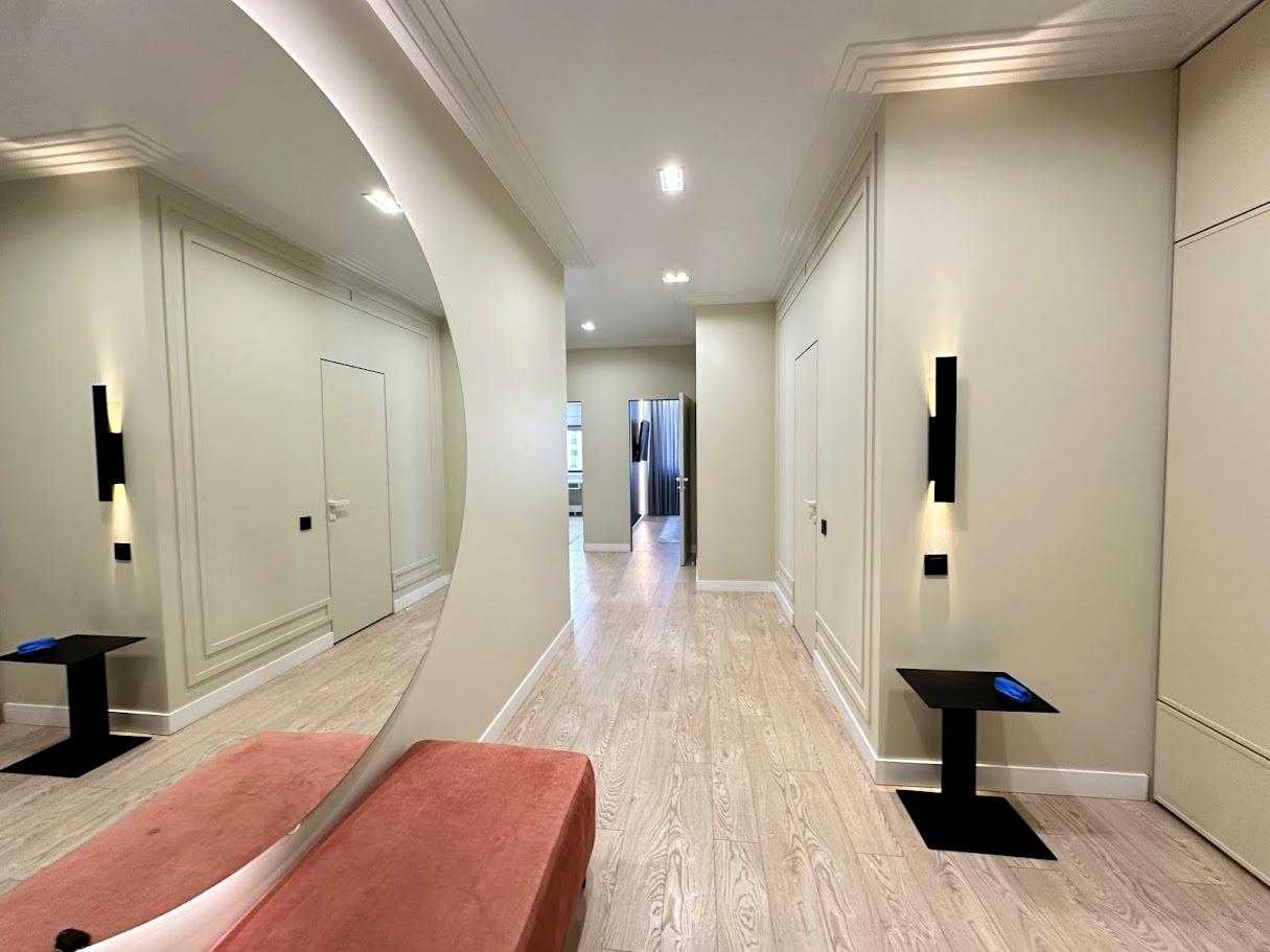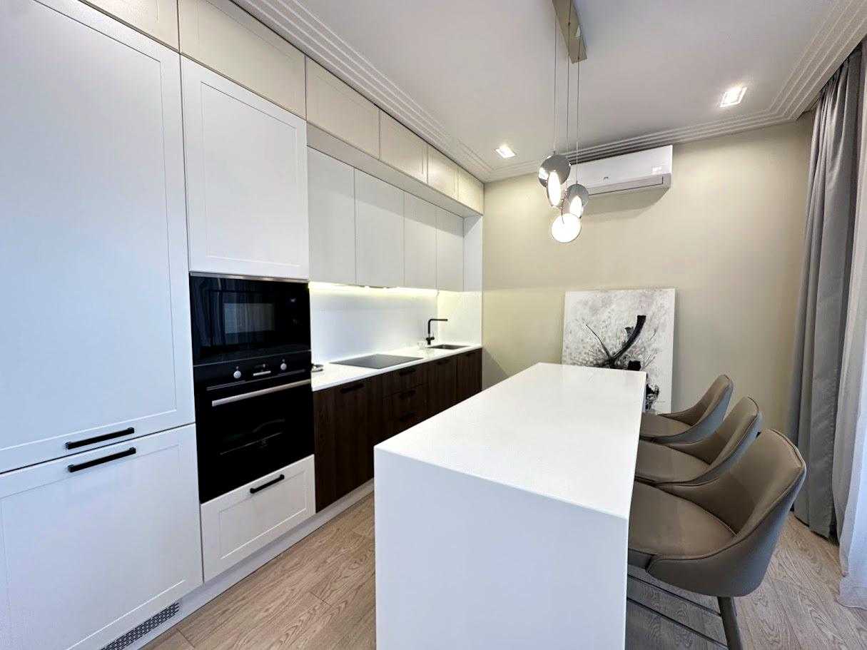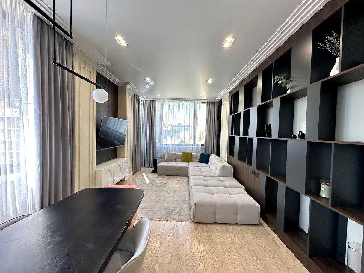 Пропонується 3-кімнатна дизайнерська квартира в ЖК бізнес-класу "Chicago Central House" у Голосіївському районі Києва. Загальна площа квартири 105 м². Квартира обладнана сучасною технікою та меблями з екологічно чистих матеріалів у світлих тонах. Функціональне планування включає кухню-вітальню з обідньою зоною, дві окремі спальні та два санвузли. ЖК має розвинену інфраструктуру, сучасні комунікаційні системи та система відеоспостереження для безпеки.