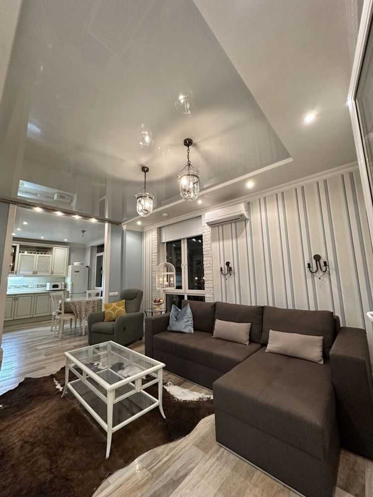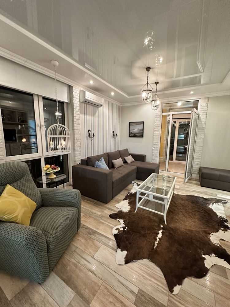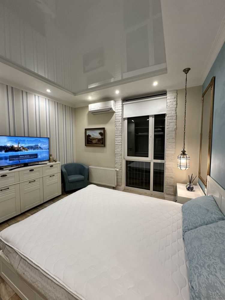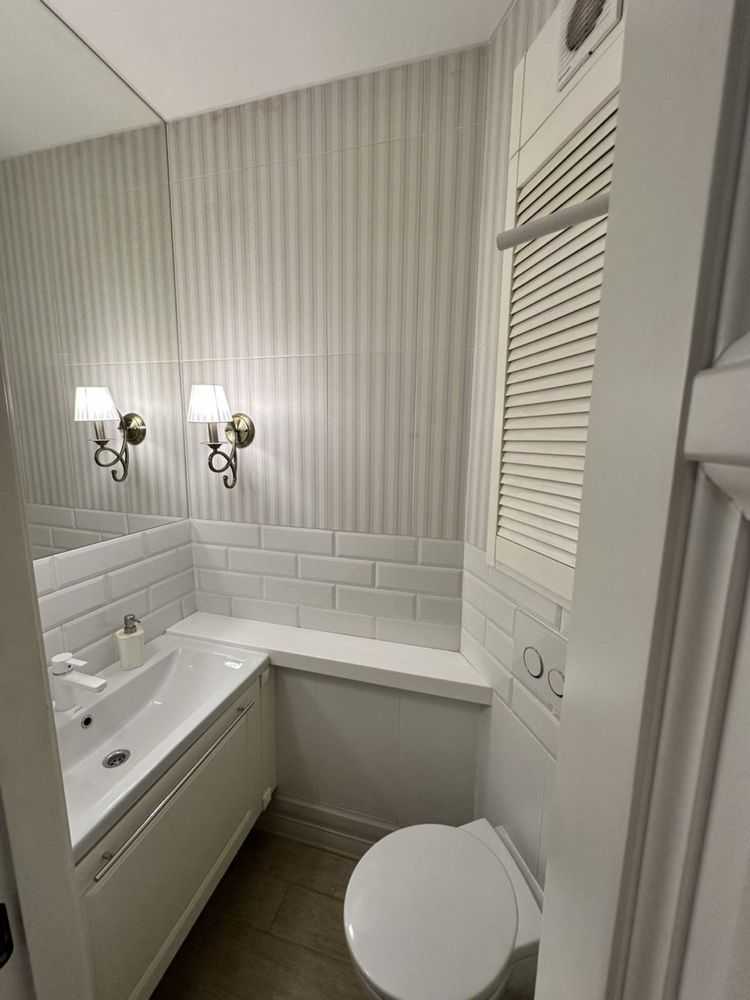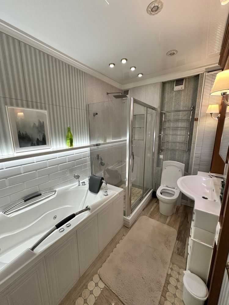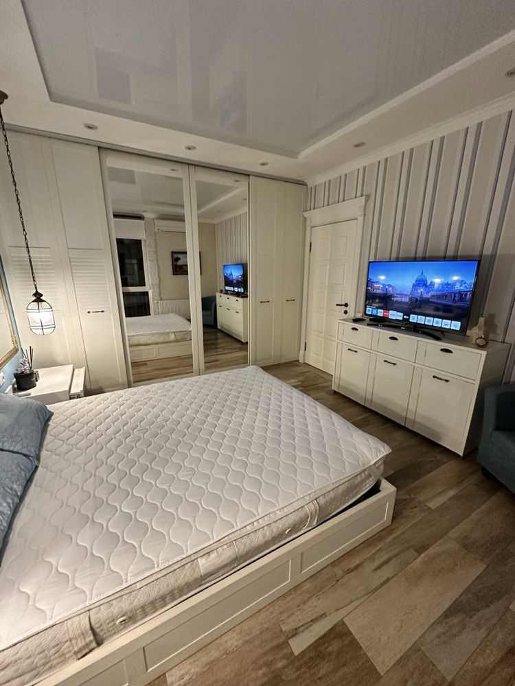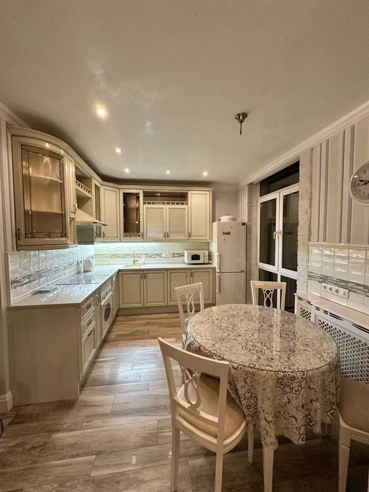 Двокімнатна квартира в комфортному районі Києва площею 64 м² з авторським дизайном. Простора кухня-вітальня, окрема спальня з ортопедичним матрацом, два санвузли, душова система та ванна з джакузі. Лоджія облаштована як кабінет з додатковим спальним місцем. Сучасна техніка включає варильну поверхню, духову шафу, витяжку, мікрохвильову піч, посудомийну машину, холодильник. Два телевізора Smart, кондиціонери, пральна машинка, велика шафа-купе. Індивідуальні лічильники на всі комунікації. Квартира без тварин.