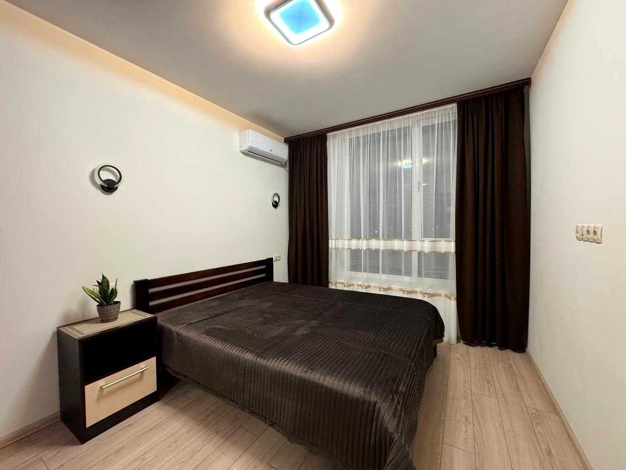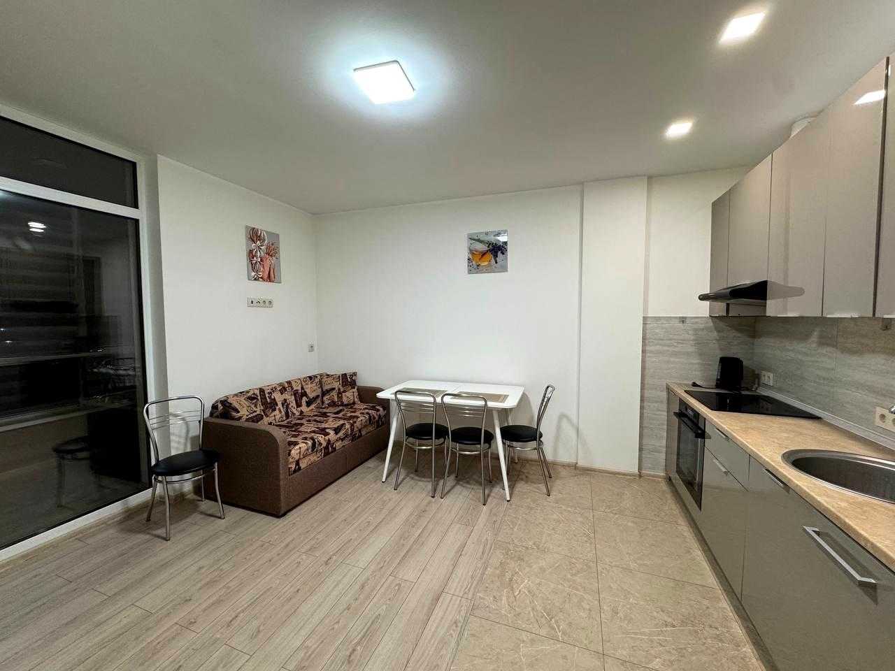 Пропонується 1-кімнатна квартира в житловому комплексі Respublika, розташована на 5 поверсі. Квартира має зручне планування: спальню та кухню-вітальню з виходом на лоджію. У санвузлі є сучасні елементи. Квартира повністю мебльована і обладнана всім необхідним: шафою, холодильником, ліжком, пральною машиною та кондиціонером. Стан квартири - хороший. Дозволено проживання з маленькими тваринами.