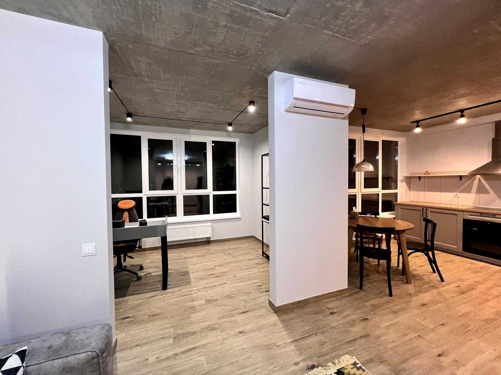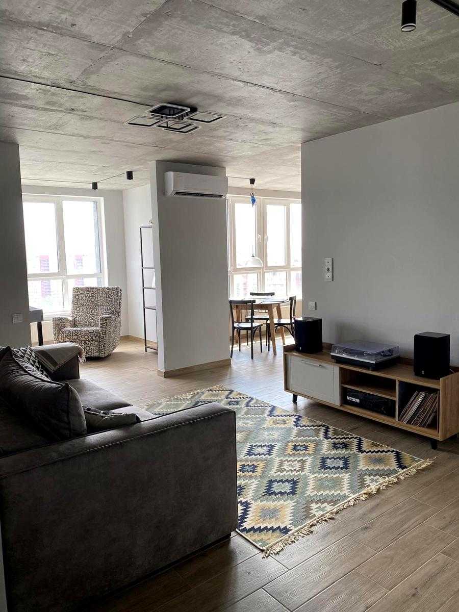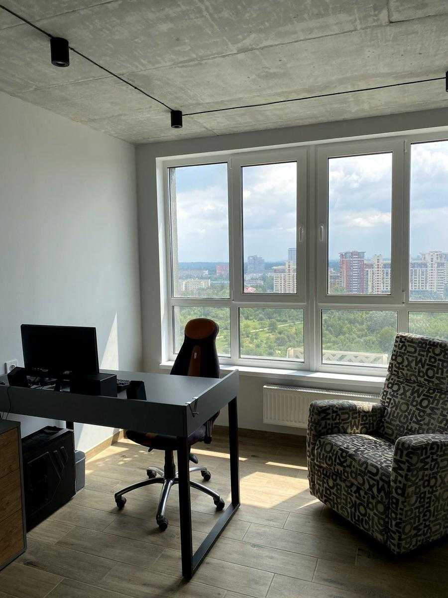Пропонується 2-кімнатна квартира в ЖК LIKO-GRAD Perfect Town на вулиці Михайла Максимовича, 32. Загальна площа 77 м², 21 поверх з 23. Інтер'єр виконаний у стилі лофт, передбачає простору кухню-вітальню з панорамними вікнами, спальню та окремий робочий кабінет. В квартирі є два санвузли, вбудовані шафи і кухня, а також кондиціонери та підігрів підлоги. Поблизу розташовані супермаркети, кафе, парки та навчальні заклади.