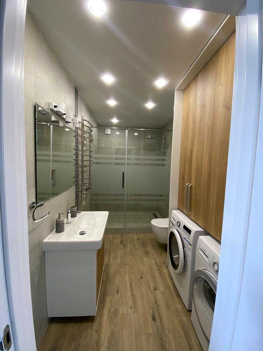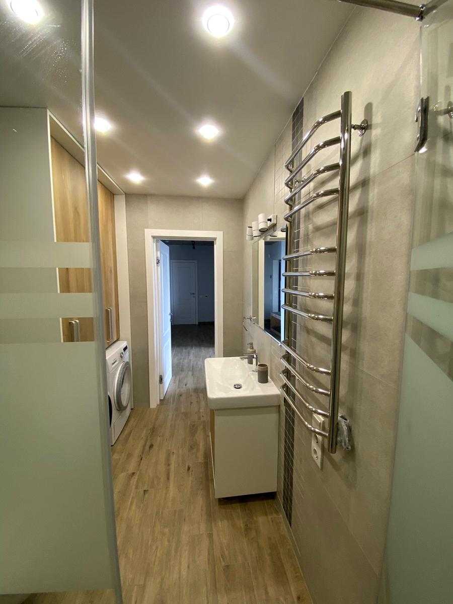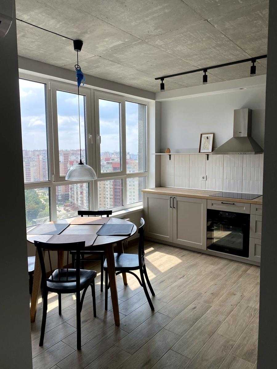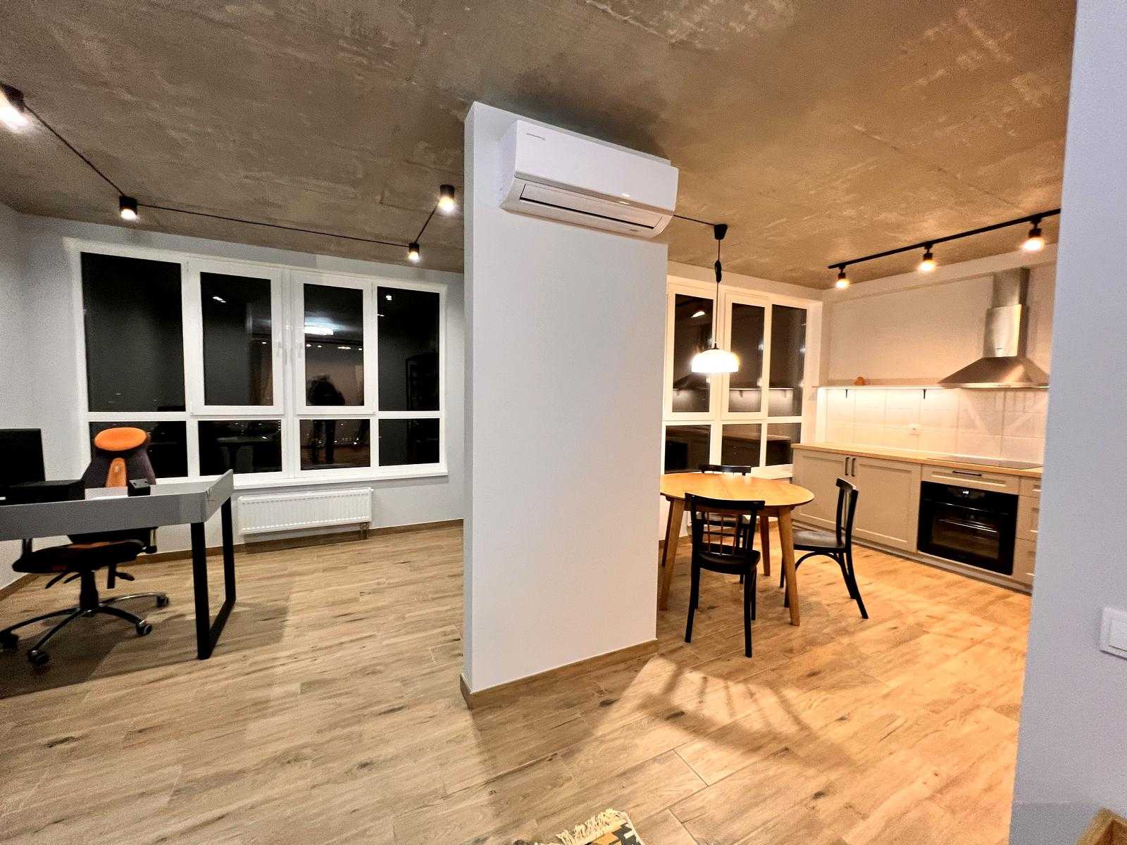Пропонується 2-кімнатна квартира в ЖК LIKO-GRAD Perfect Town на вулиці Михайла Максимовича, 32. Загальна площа 77 м², 21 поверх з 23. Інтер'єр виконаний у стилі лофт, передбачає простору кухню-вітальню з панорамними вікнами, спальню та окремий робочий кабінет. В квартирі є два санвузли, вбудовані шафи і кухня, а також кондиціонери та підігрів підлоги. Поблизу розташовані супермаркети, кафе, парки та навчальні заклади.