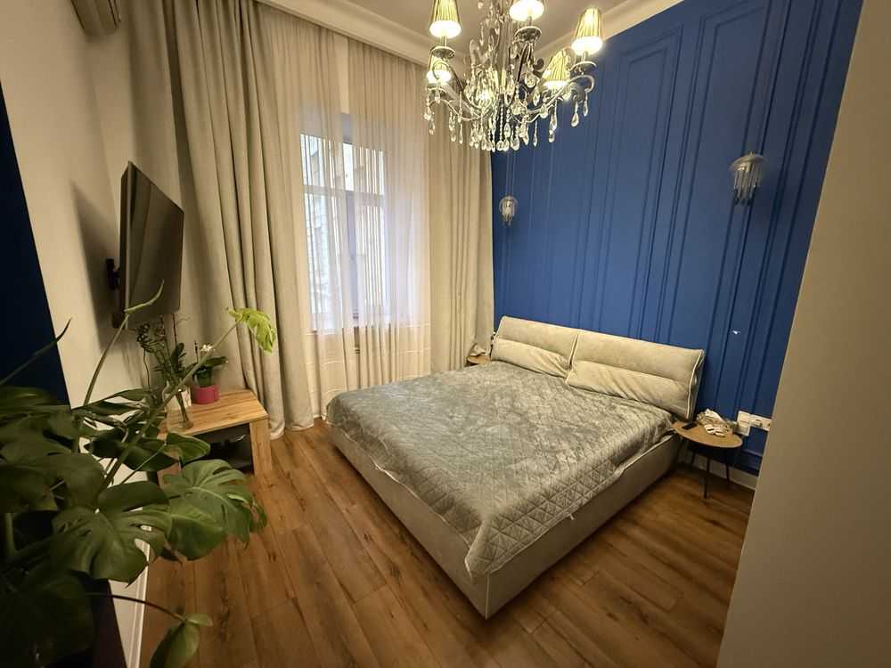 Стильна квартира в історичному центрі Києва, біля Золотих Воріт. Дизайнерський ремонт у сучасному стилі, високі стелі 4 м, тепла підлога. Повністю мебльована та укомплектована технікою: кондиціонери, ТВ, пральна машина, духова шафа та індукційна плита. Включає кухню-вітальню, затишну спальню, простору ванну кімнату та великий хол із дзеркальними шафами. Тихий двір із зручним заїздом. Відмінна локація поруч із ресторанами, театрами та парками.