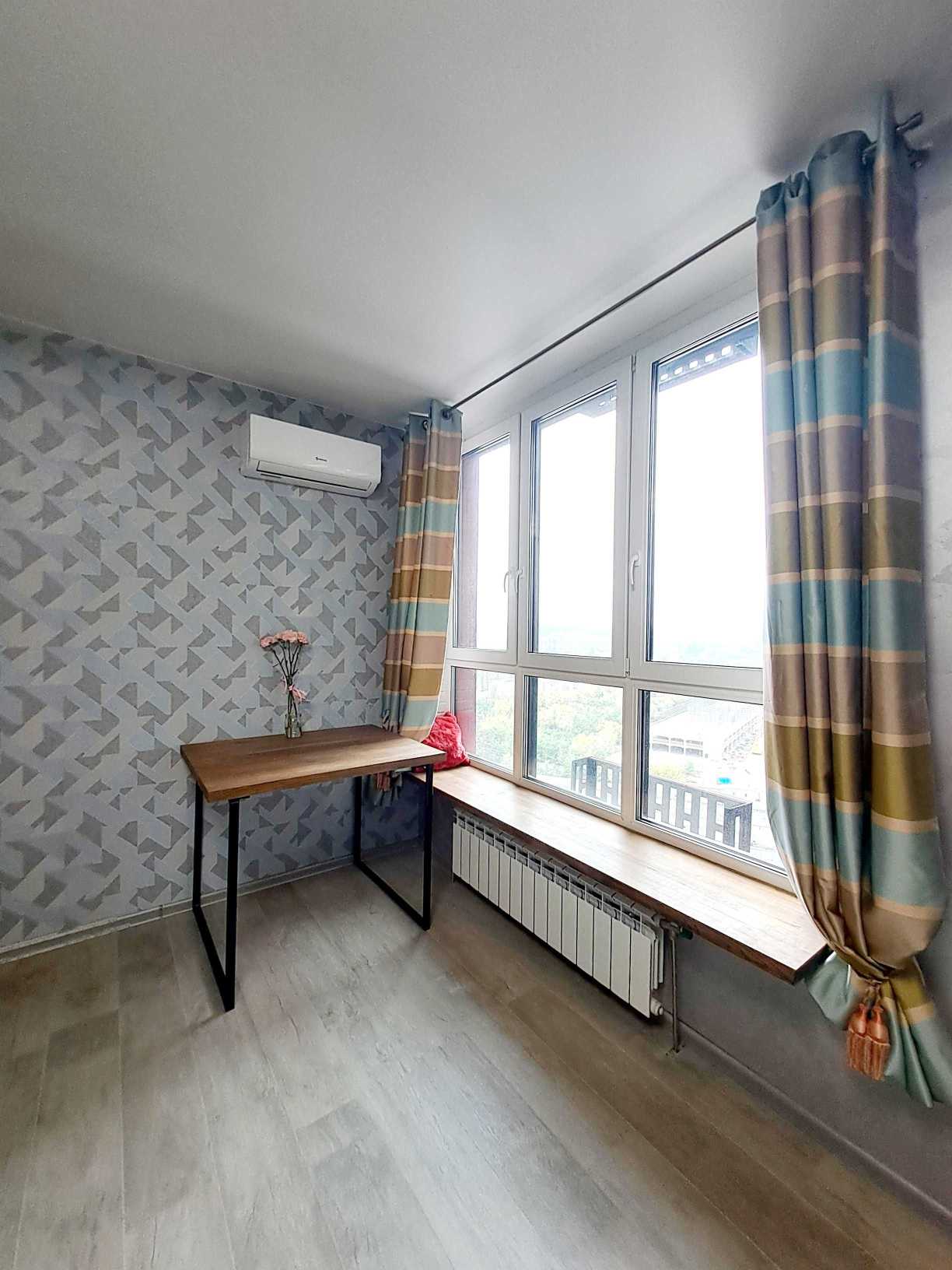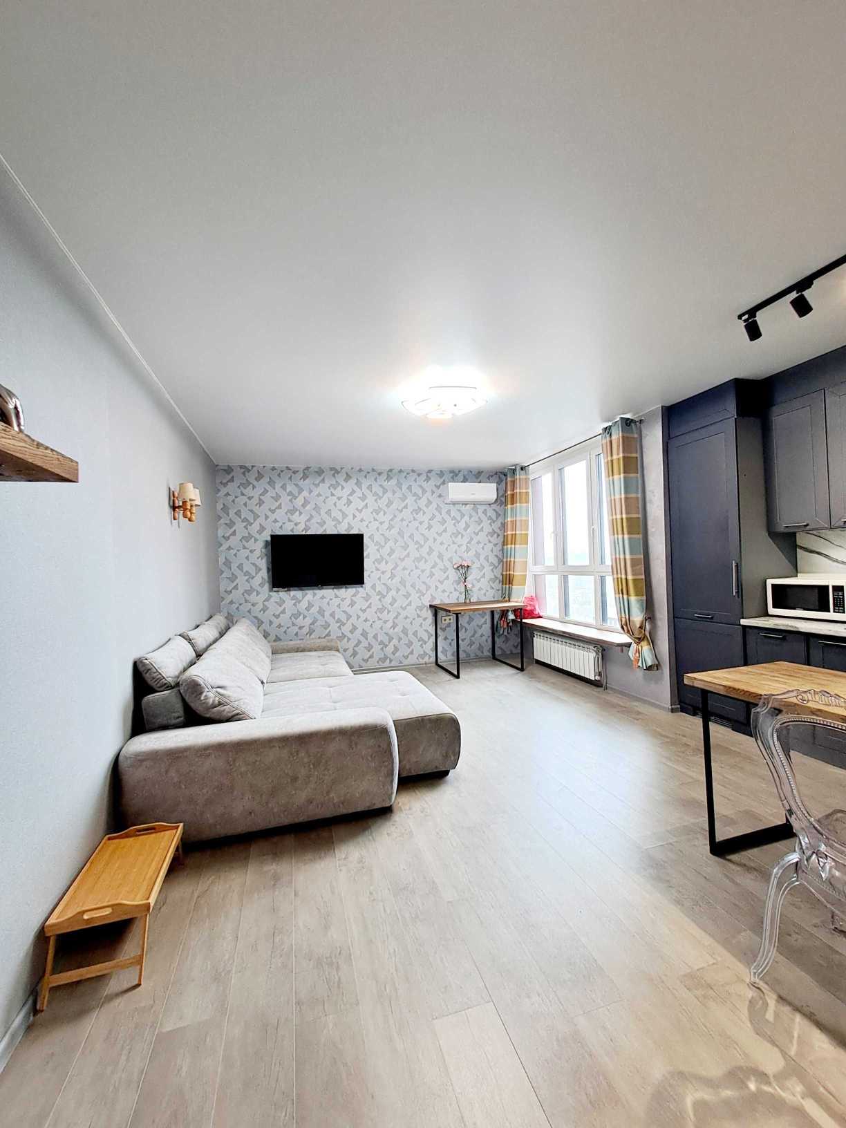 Пропонується затишна 1-кімнатна квартира в ЖК Dock 32 на вул. Набережно-Рибальській 27, в Оболонському районі. Загальна площа складає 31,2 м2, кухня площею 10 м2, розташована на 15 поверсі 26-поверхового будинку. Квартира обладнана всім необхідним для комфортного проживання: диваном, шафами, плитою, бойлером, телевізором, кондиціонером, холодильником та пральною машиною. ЖК надає доступ до внутрішнього двору з дитячим майданчиком та спортивною зоною, а також кав'ярні. Територія охороняється, має відеоспостереження та консерж-сервіс.