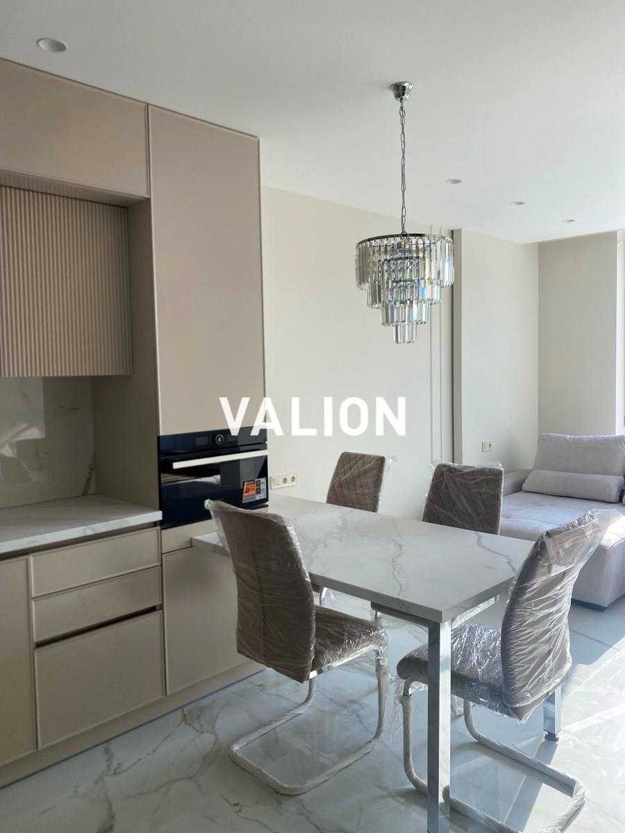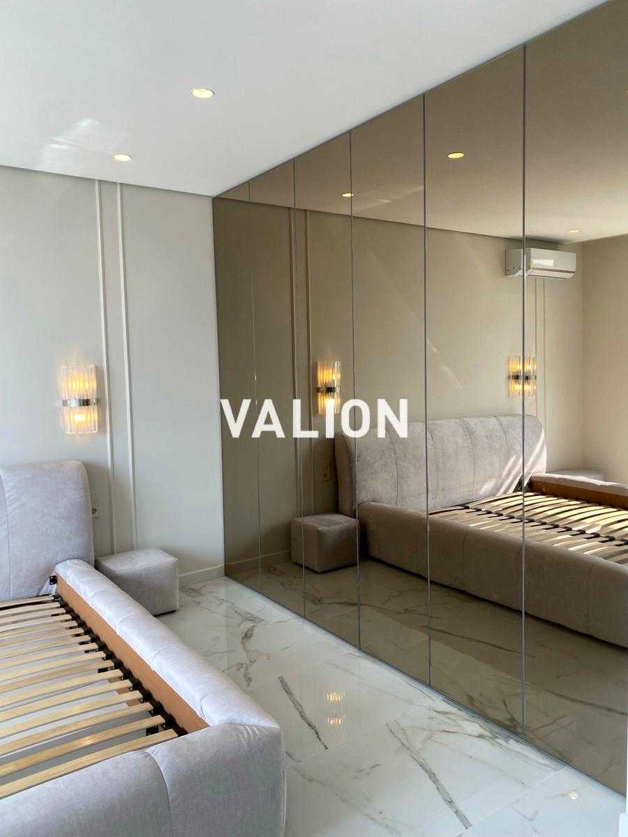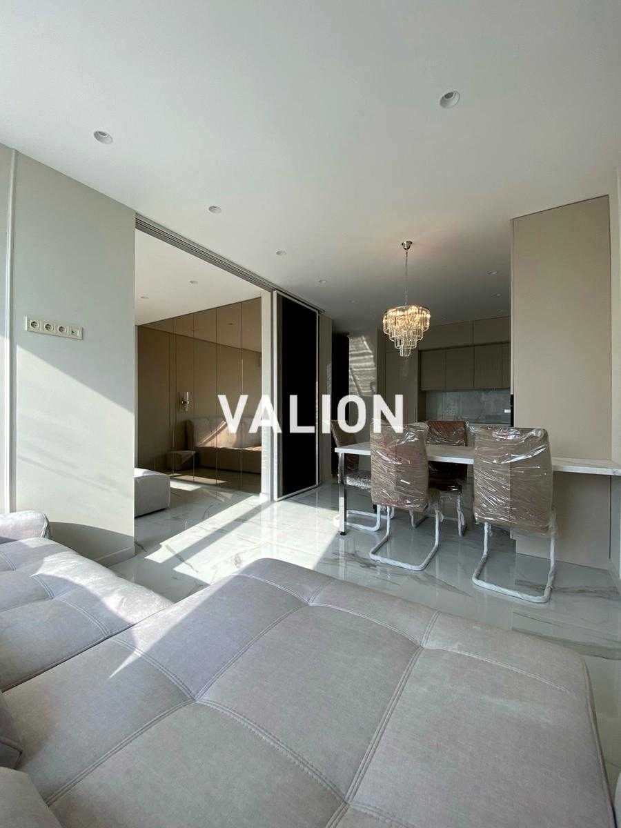 Стильна однокімнатна квартира площею 47 м2 розташована на 11-му поверсі нового ЖК Варшавський-2 у Подільському районі Києва. В квартирі виконаний сучасний ремонт у світлих тонах з використанням мармуру та скла. Функціональне планування включає простору кухню-вітальню, спальню, великий санвузол та гардеробну. Оснащена меблями, побутовою технікою, теплими підлогами та кондиціонером. Комплекс має охорону 24/7, комерційну інфраструктуру на першому поверсі, зручне транспортне сполучення та розвинену інфраструктуру в околицях.