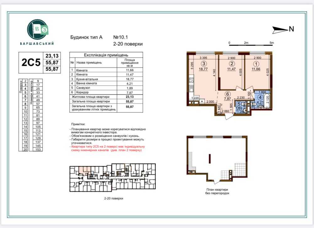 Пропонується до уваги 2-кімнатна квартира в житловому комплексі «Варшавський 3» у Подільському районі Києва. Площа квартири складає 55,87 м², квартира розташована на 16-му поверсі 25-поверхового будинку. Комплекс відрізняється сучасним дизайном та зручним плануванням. На відстані всього 2 хвилини пішки знаходиться ТРЦ Ретровіль. Квартира забезпечена централізованим опаленням та будівельним матеріалом з монолітного бетону.