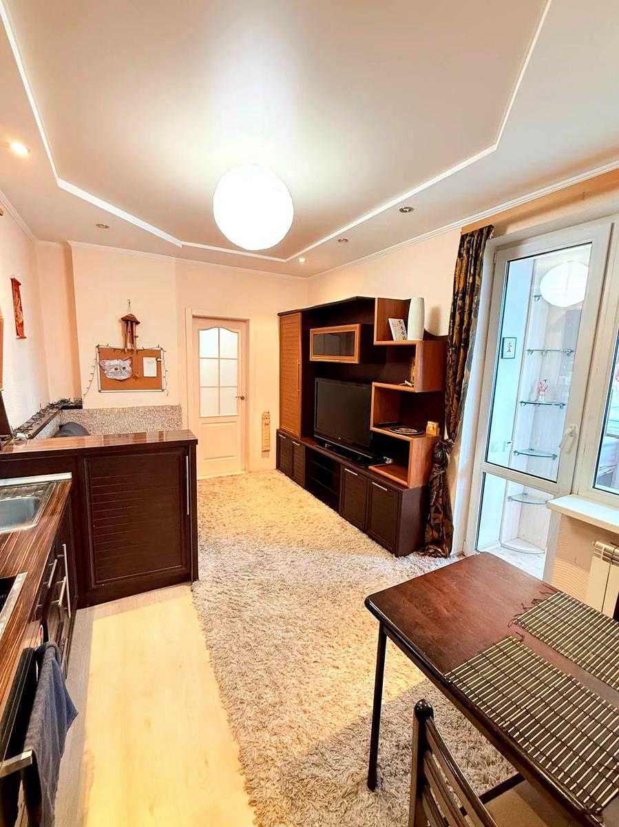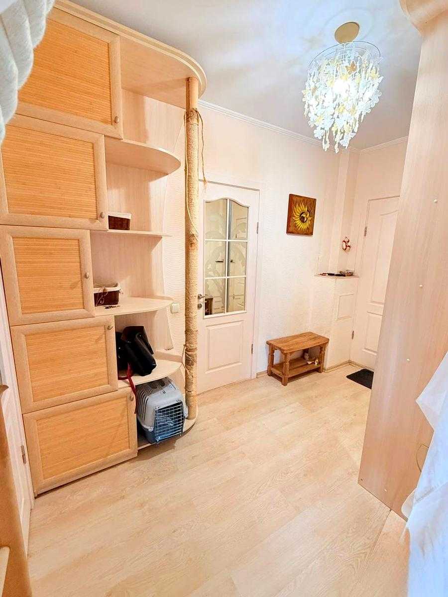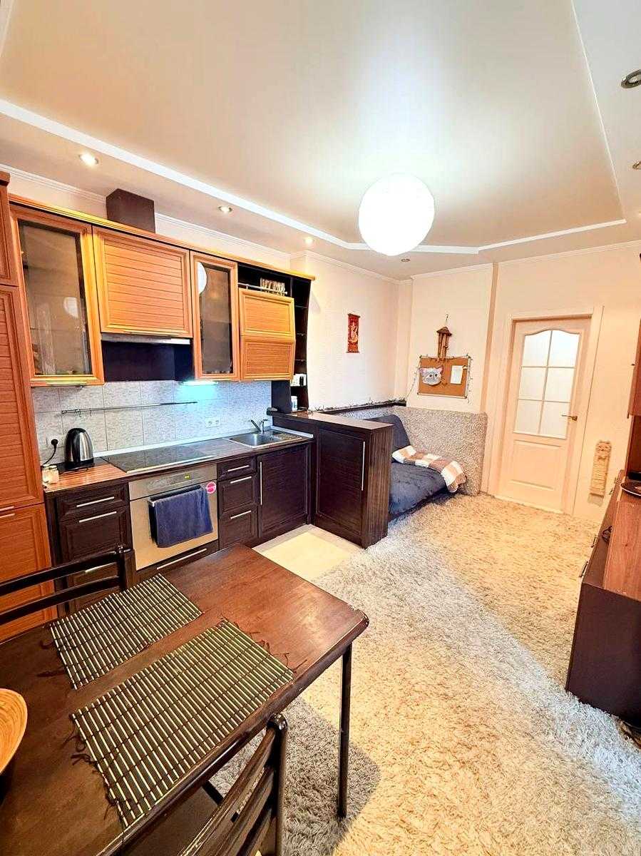 Пропонується 1-кімнатна квартира на вул. Осінній, 33, у Святошинському районі Києва. Простора, світла квартира з якісним ремонтом у сучасному будинку, з висотою стель 2,85 м. Квартира повністю мебльована, є кухня-студія з вбудованою технікою та затишна спальня з великими вікнами. Високий комфорт забезпечений наявністю кондиціонера та охайного санвузла. Будинок у відмінному стані, з консьєржем, кодовим замком та ліфтами. Доглянута територія, тихий двір з дитячим майданчиком. Поруч метро, магазини, дитячі садочки та школи.