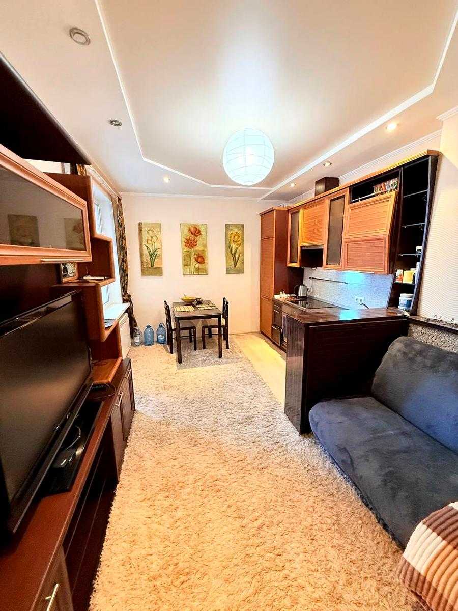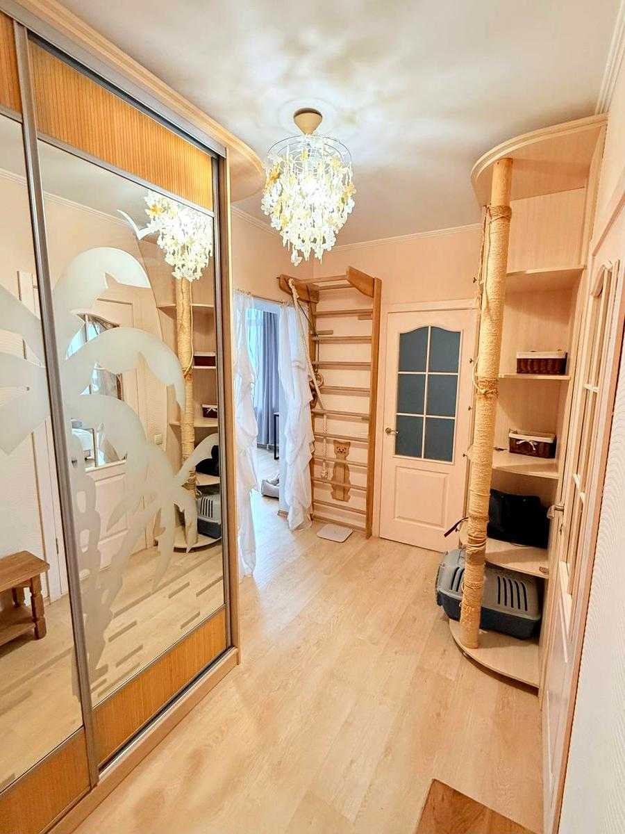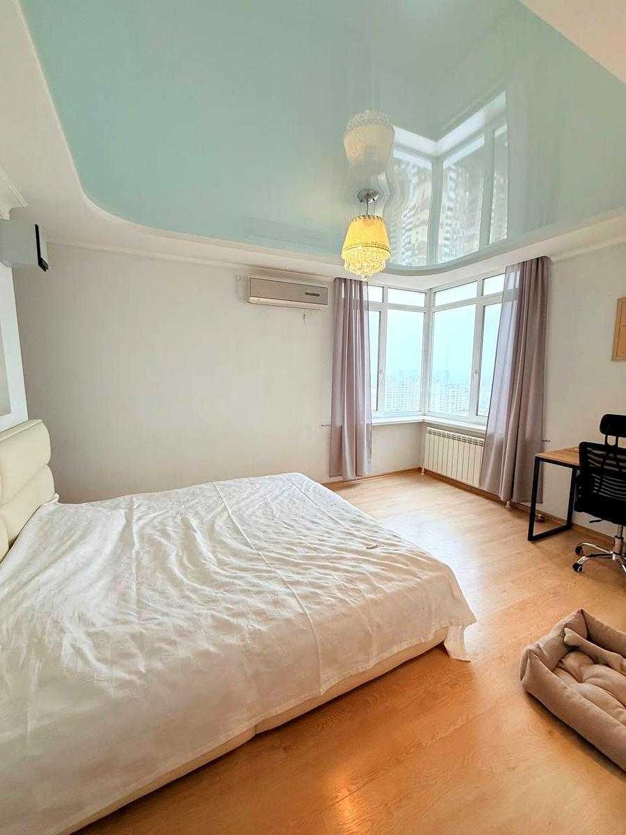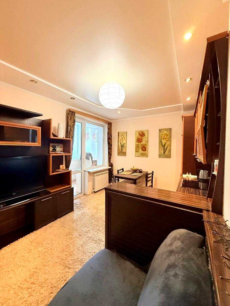 Пропонується 1-кімнатна квартира на вул. Осінній, 33, у Святошинському районі Києва. Простора, світла квартира з якісним ремонтом у сучасному будинку, з висотою стель 2,85 м. Квартира повністю мебльована, є кухня-студія з вбудованою технікою та затишна спальня з великими вікнами. Високий комфорт забезпечений наявністю кондиціонера та охайного санвузла. Будинок у відмінному стані, з консьєржем, кодовим замком та ліфтами. Доглянута територія, тихий двір з дитячим майданчиком. Поруч метро, магазини, дитячі садочки та школи.