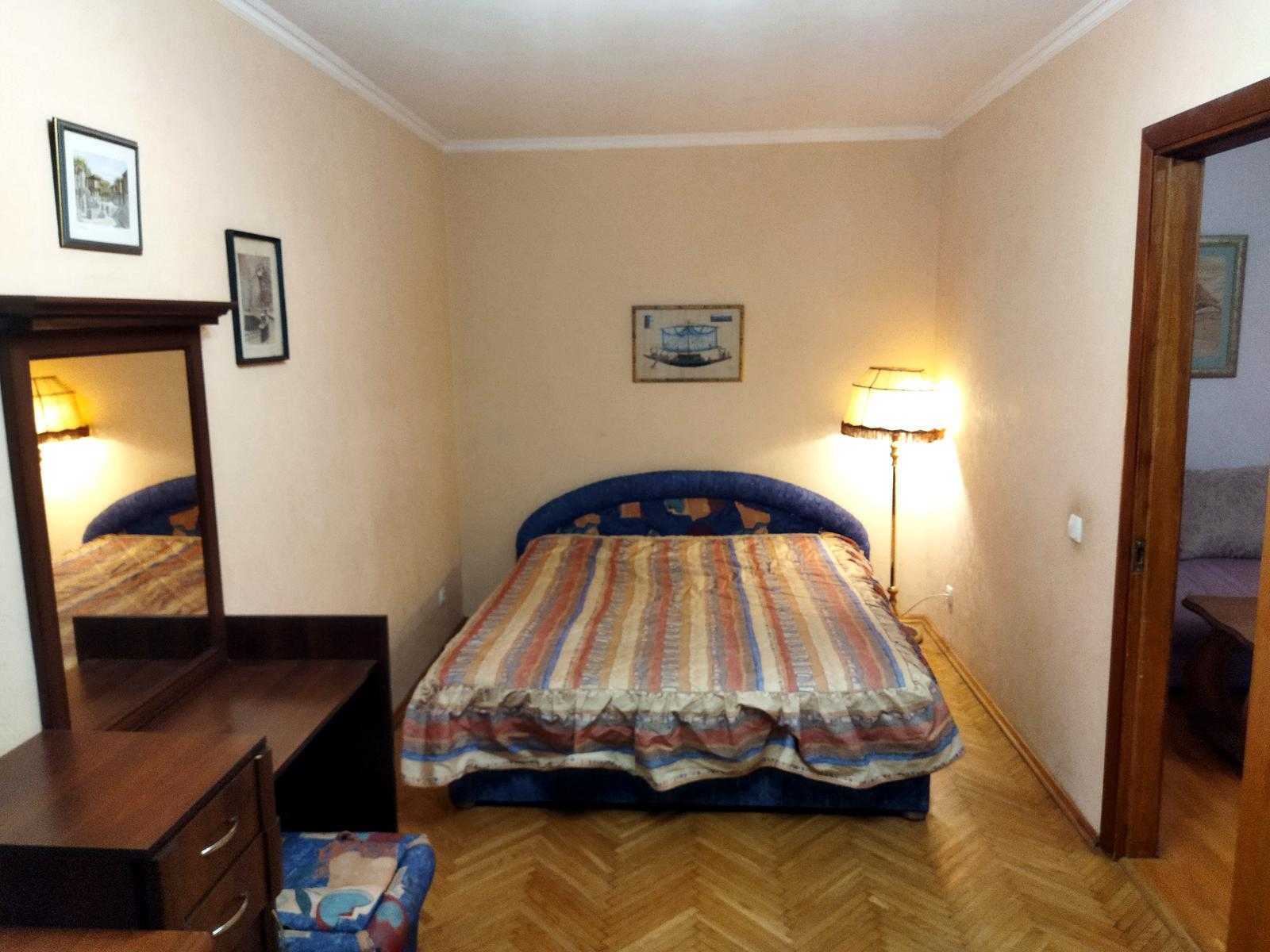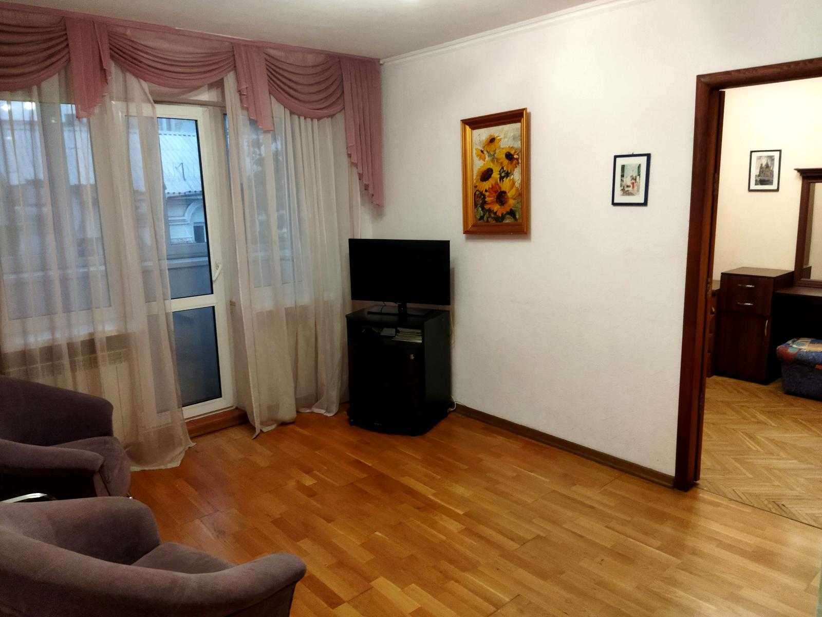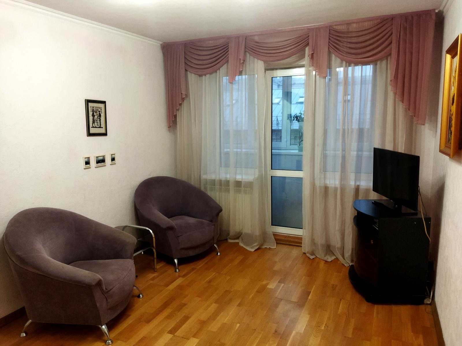 Двохкімнатна квартира в центрі Києва, на Михайлівському провулку, 7, у "Будинку журналістів". Чиста та затишна оселя, обладнана всім необхідним для комфортного проживання. Окрема спальня з великим двоспальним ліжком і вітальня з виходом на балкон. Квартира оснащена холодильником, пральною машиною, кондиціонером та іншою побутовою технікою. Гаряча вода централізована, є опалення, а також швидкісний інтернет. Поруч розташовані парк, магазини та навчальні заклади.