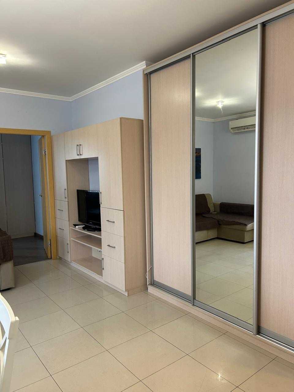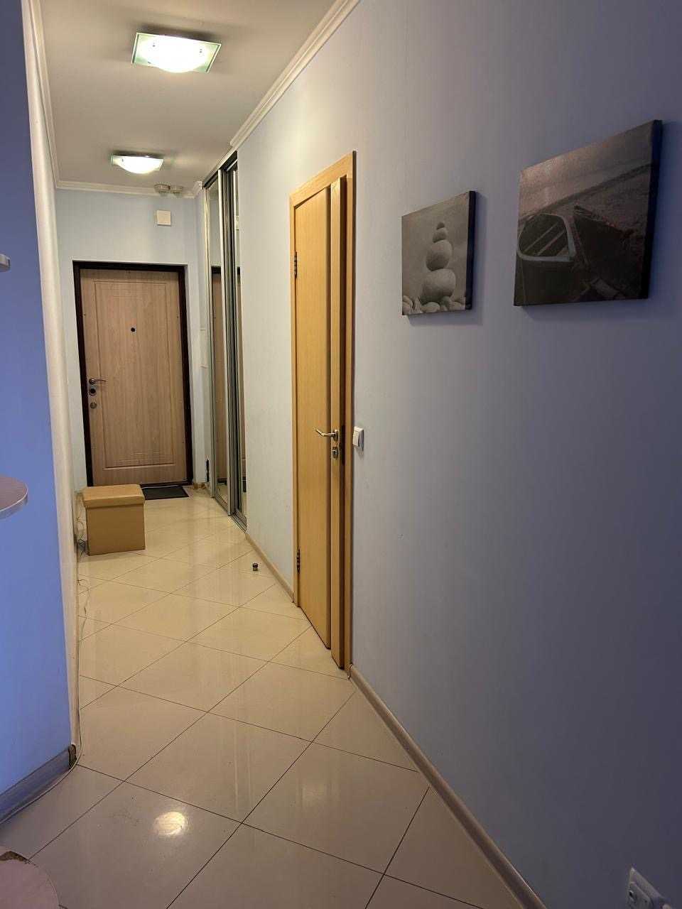 Простора однокімнатна квартира в будинку 4 на вул.Бориса Гмирі. Окрема спальня площею 16 кв.м. та кухня-вітальня 22 кв.м. Санвузол суміжний, 5,2 кв.м. Має велику кількість місць для зберігання. Встановлені лічильники води та опалення. Продуманий ремонт забезпечує комфорт торгового обслуговування. З вікон відкривається краєвид.