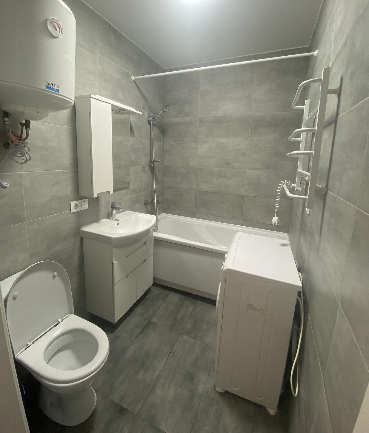 Квартира розташована на 23-му поверсі 26-поверхового будинку в Святошинському районі Києва на проспекті Берестейському (Победи). Площа складає 37 кв. м. У квартирі є вся необхідна мебель і побутова техніка: холодильник, мікрохвильова піч, електричний чайник, пральна машина, бойлер, електрична варильна поверхня та кондиціонер. Будинок оснащений системою відеонагляду, а також має консьєржа. На території доступна автостоянка, поруч розташовані зупинки громадського транспорту, ТЦ та супермаркети. В околицях є озера, ресторани та пляжі.