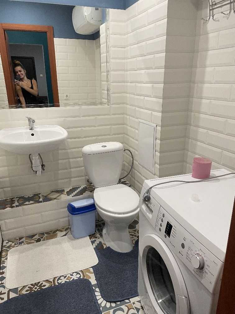 Пропонується 1-кімнатна квартира площею 50 м² на 17-му поверсі за адресою пр. Науки, 60. У квартирі є необхідна техніка: холодильник, електрична плита, духова шафа, мікрохвильова піч, бойлер, пральна машина, телевізор та кондиціонер. Простір включає прихожу, зону відпочинку, кухню та спальню з робочим місцем. Спальня обладнана ліжком з ортопедичним матрасом, в зоні відпочинку є розкладний диван. Окремою перевагою є простора балкон-терраса.