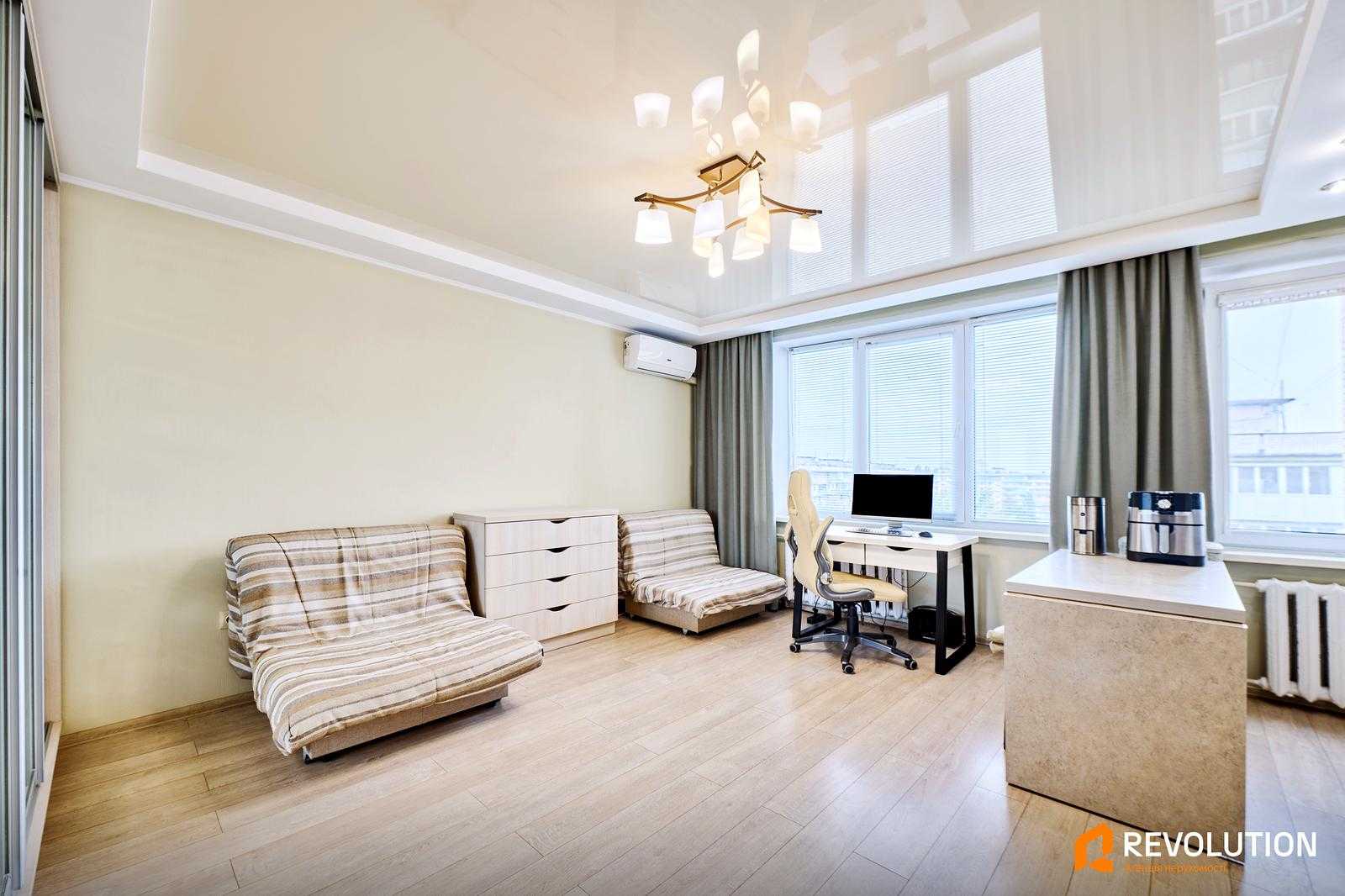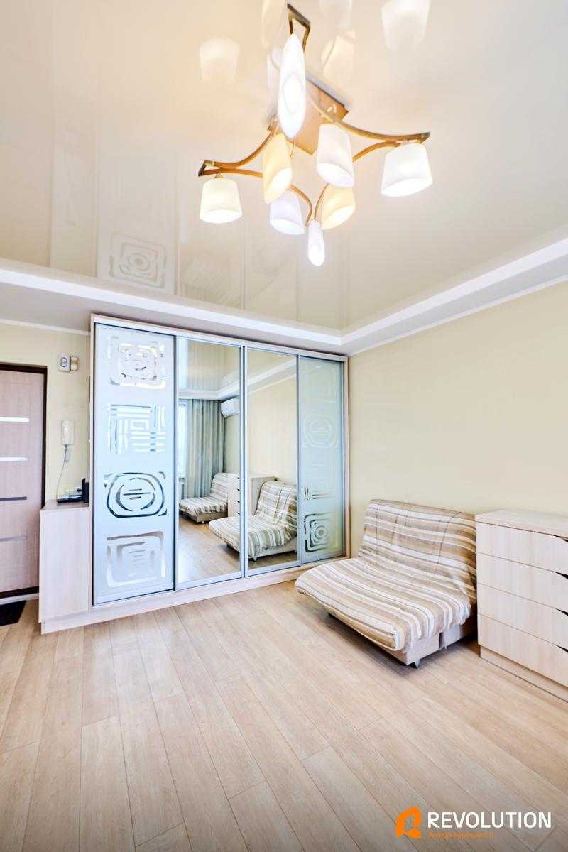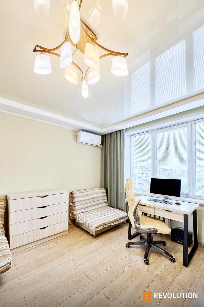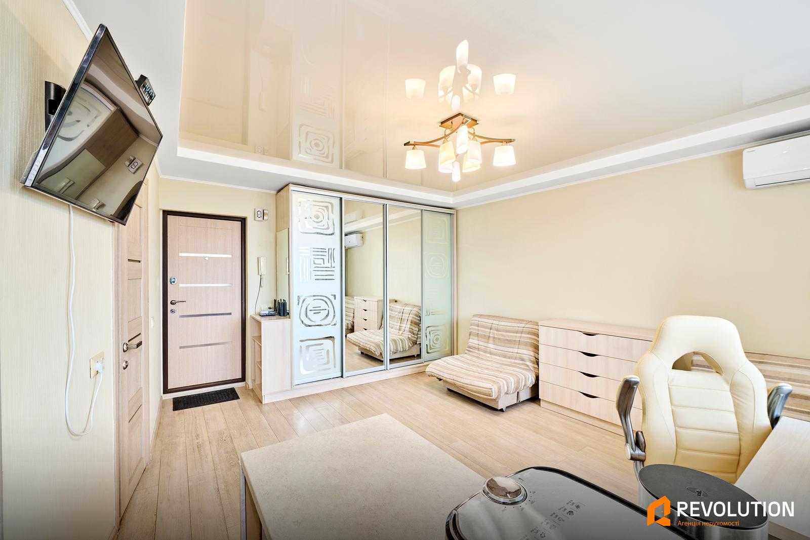 Квартира розташована на вулиці Зодчих, 64, в Святошинському районі Києва. Має загальну площу 20.9 м², одна кімната з житловою площею 12.4 м². Знаходиться на останньому, 9-му поверху цегляного будинку. У квартирі проведено капітальний ремонт у 2016 році, вона повністю мебльована. Є всі необхідні побутові прилади: кондиціонер, пральна машина, телевізор, холодильник та бойлер. У пішій доступності знаходяться транспортні зупинки, магазини, супермаркети, школи та дитячі садки.
