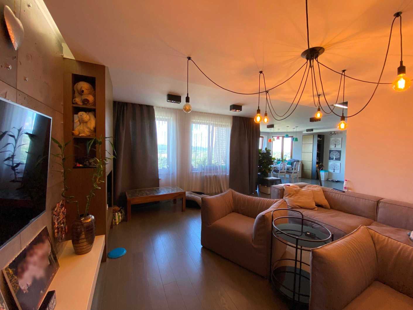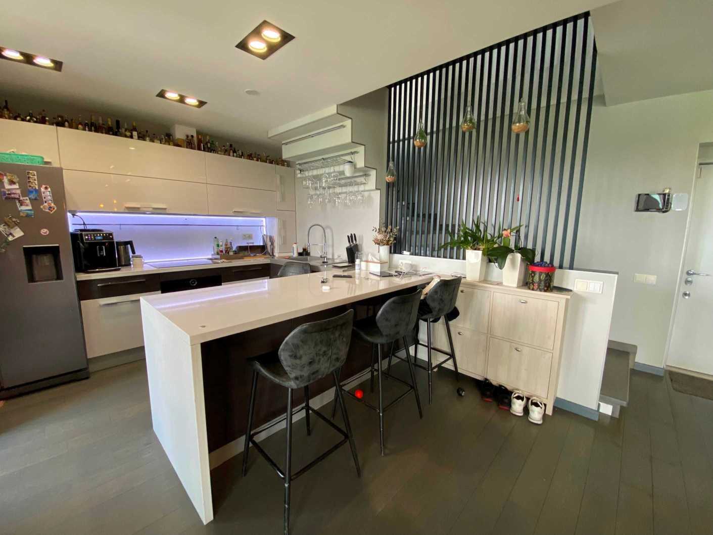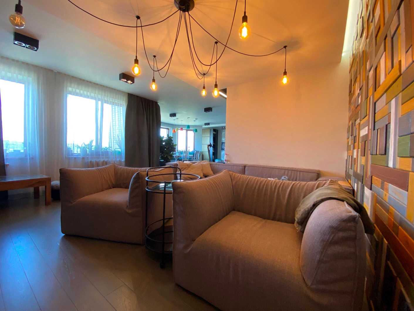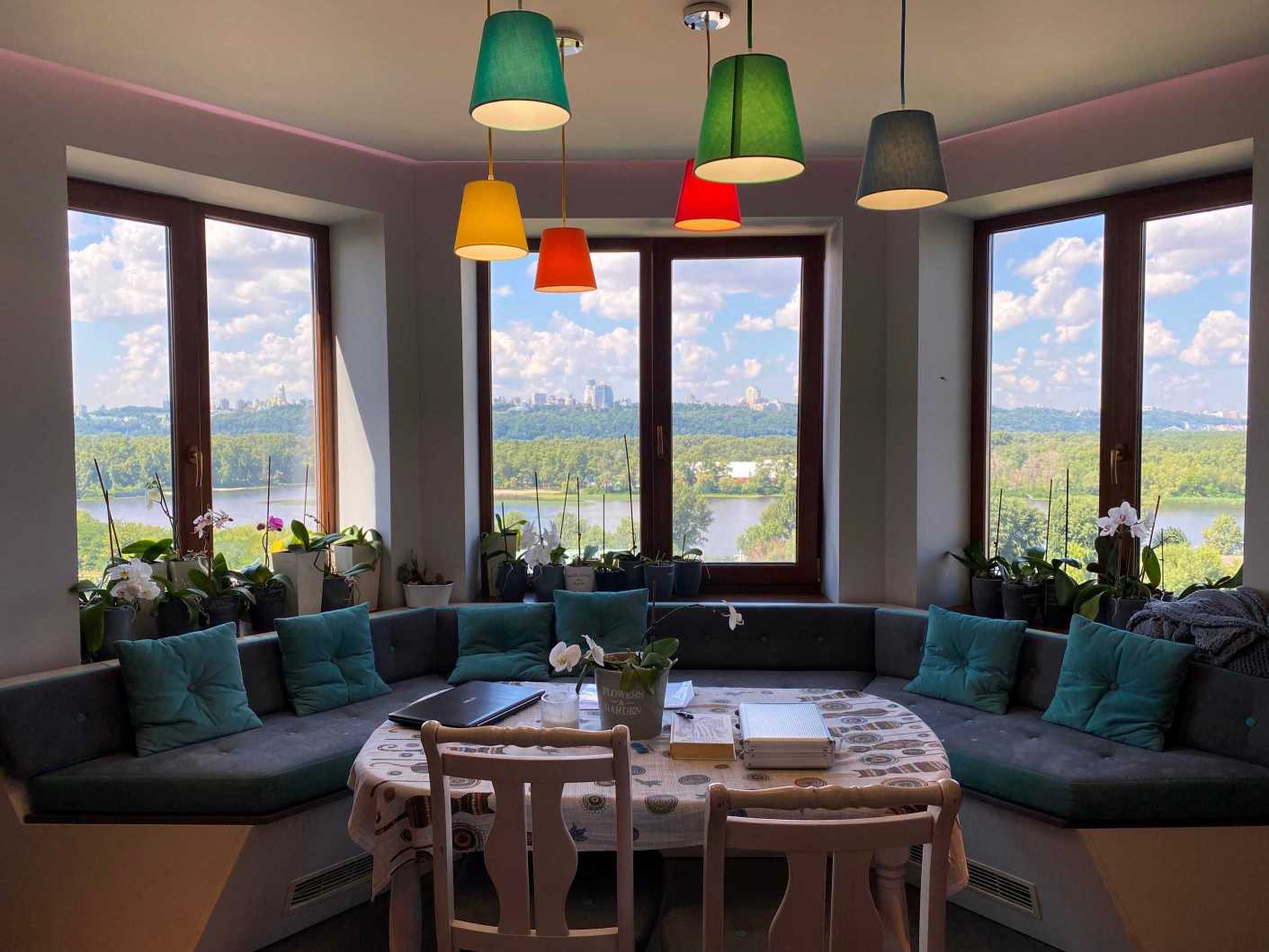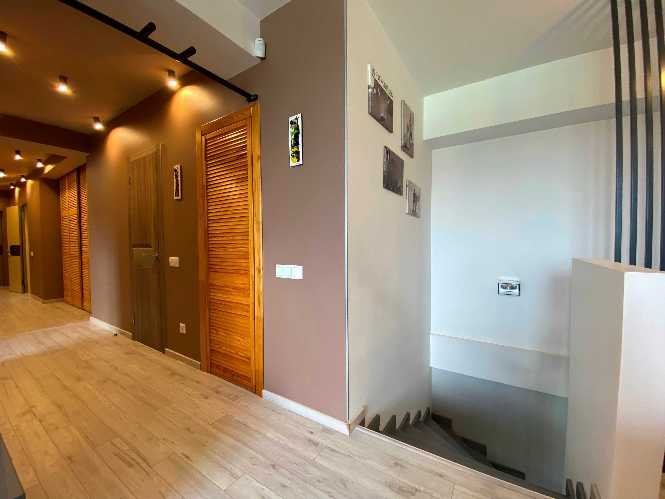 Пропонується дворунева квартира на вул. Микільсько-Слобідській, 4Д, загальною площею 222 м2, розташована на 10-11 поверхах цегляного будинку. В квартирі 6 кімнат, з яких 5 окремих спалень, 3 санвузли та простора кухня-столова. Вікна виходять на Дніпро та панораму Києва. Перший рівень містить затишну вітальню, кухню, балкон з краєвидом та гостьовий санвузол. Другий рівень пропонує 4 дитячі кімнати, спальню для батьків, ігрову зону та два балкони. Ідеальне місце для великої родини поруч з набережною, парками та мережею супермаркетів.