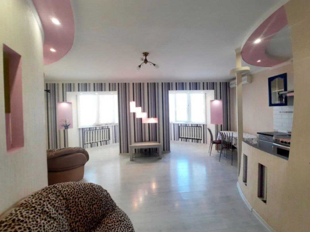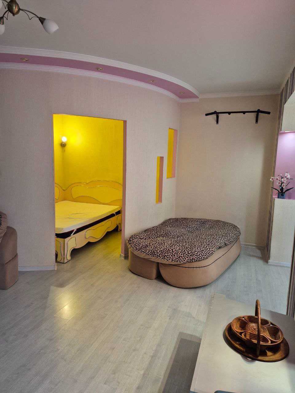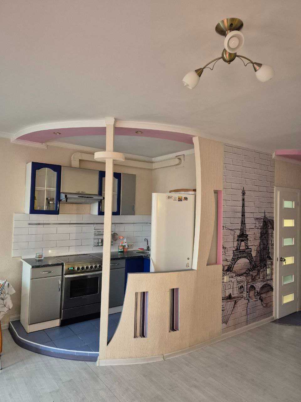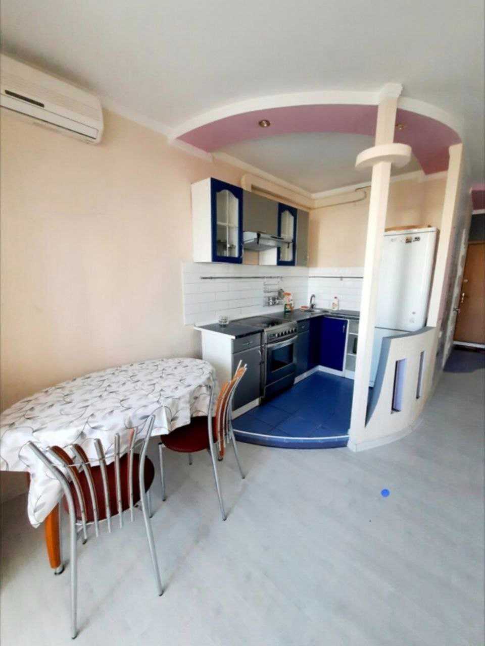 Пропонується квартира-студія на Оболоні, проспект Івасюка 43В. Відстань до станції метро Мінська складає 10 хвилин пішки. Розташована на 1 поверсі 14-поверхового будинку, площа складає 45 кв.м. Квартира має відокремлену спальну та кухонну зони. Укомплектована ліжком з ортопедичним матрацом, розкладним диваном, кріслом, великою шафою-купе, електричною плитою з духовкою, холодильником, пральною машиною, бойлером та кондиціонером. Додатково, поруч розташовані стадіон та озеро.