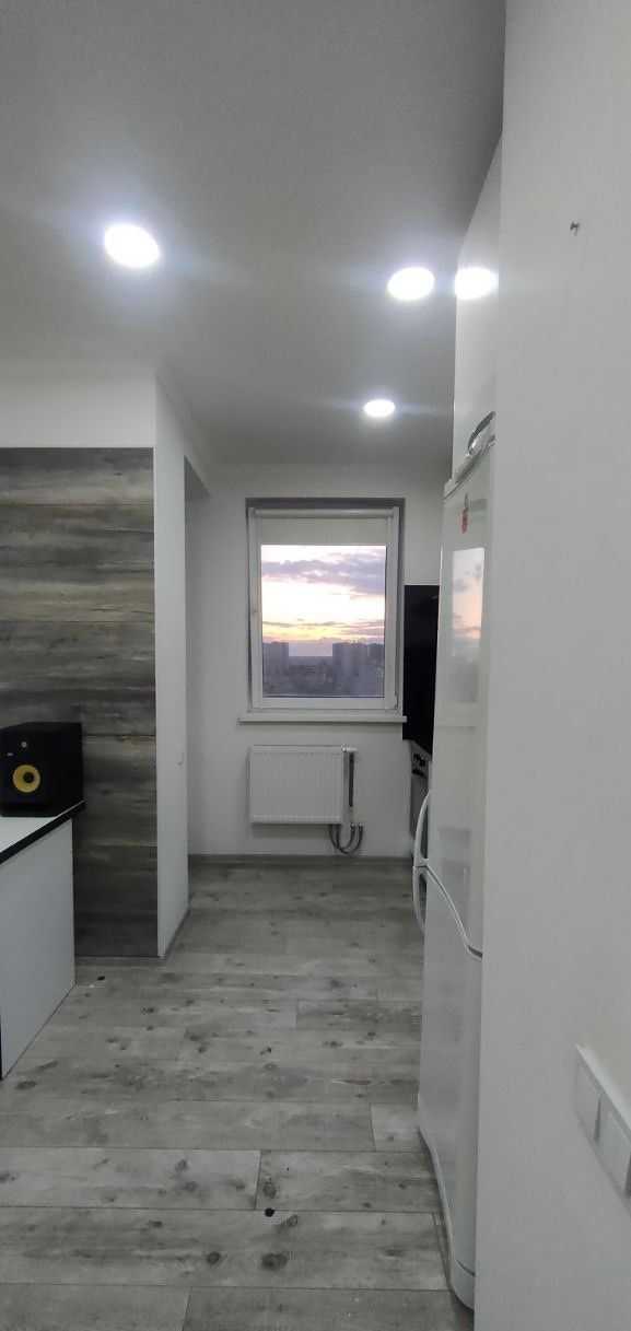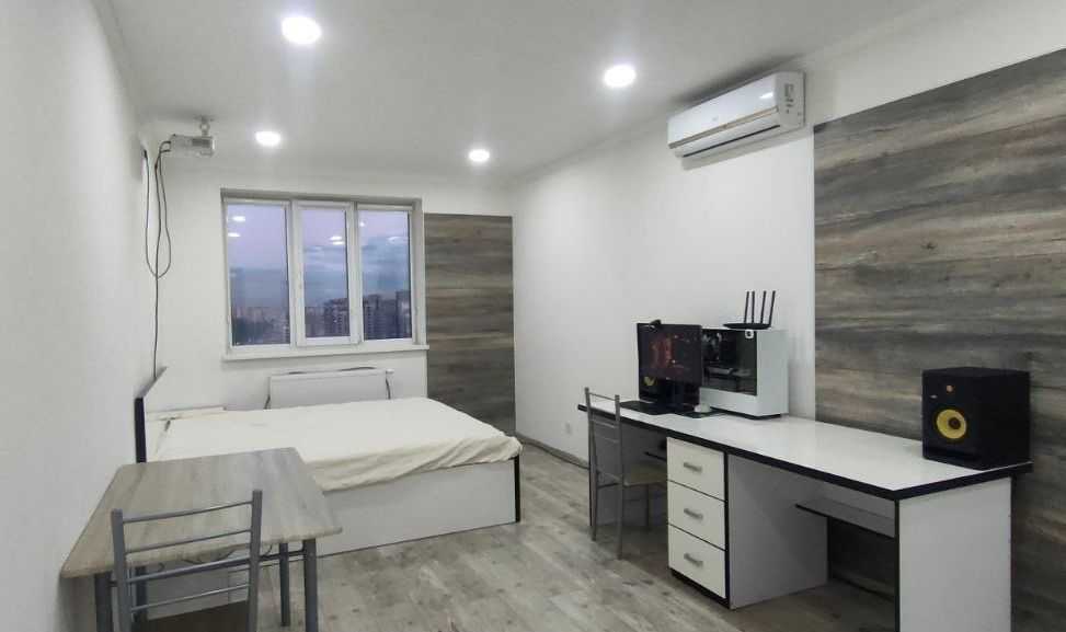 Однокімнатна квартира в новому будинку на Теремківській 3А, розташована всього в 2 хвилинах пішки від станції метро "Теремки". В околицях розташовані зупинки громадського транспорту, маркет "Коло", ТРЦ "Республіка", а також низка супермаркетів. Будинок, введений в експлуатацію у 2019 році, утеплений мінеральною ватою, має централізоване опалення та систему відеоспостереження. Квартира-студія з окремою ванною кімнатою та заскленим балконом. Виконано якісний ремонт в нейтральних кольорах. Оснащена необхідними меблями та технікою.