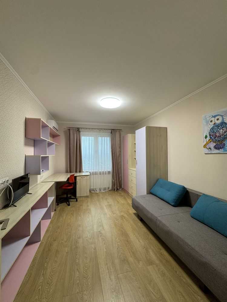 Пропонується 2-кімнатна квартира на вулиці Григорія Ващенка 7, неподалік від станції метро «Осокорки». Квартира розташована на 16-му поверсі 25-поверхового будинку, загальна площа становить 63,8 м². У складі - світла дитяча кімната площею 14,2 м² та затишна спальня 17,3 м². Простора кухня площею 12,3 м² обладнана зоною для обіду та заскленою лоджією площею 6 м². У квартирі роздільний санвузол, вбиральня з раковиною та ванна кімната з душовою кабіною. Парадний вхід з консьєржем.