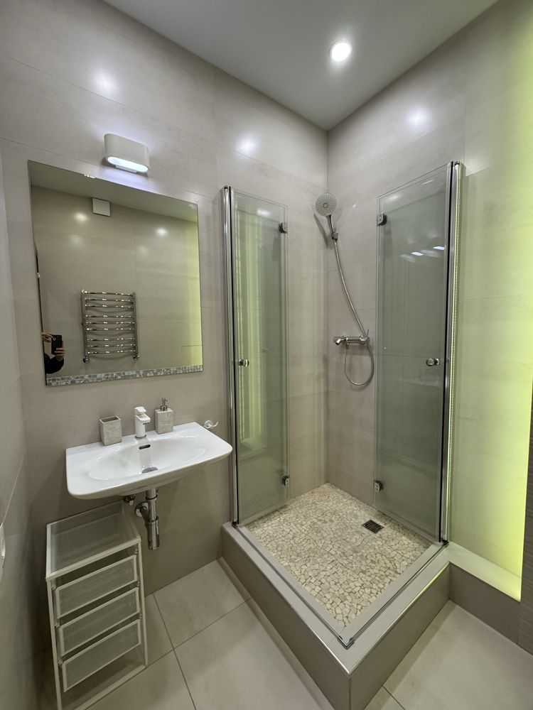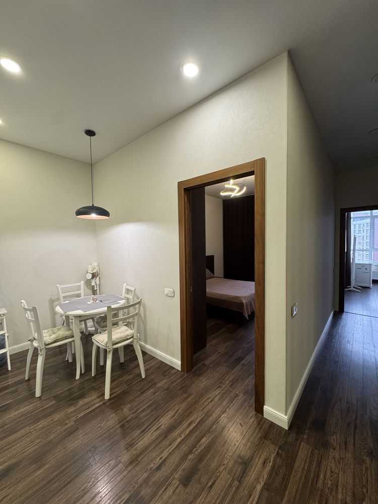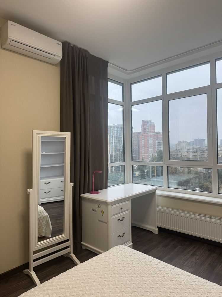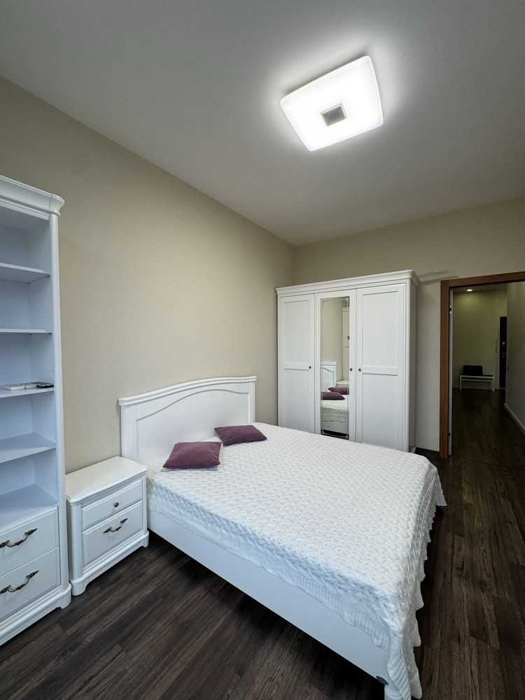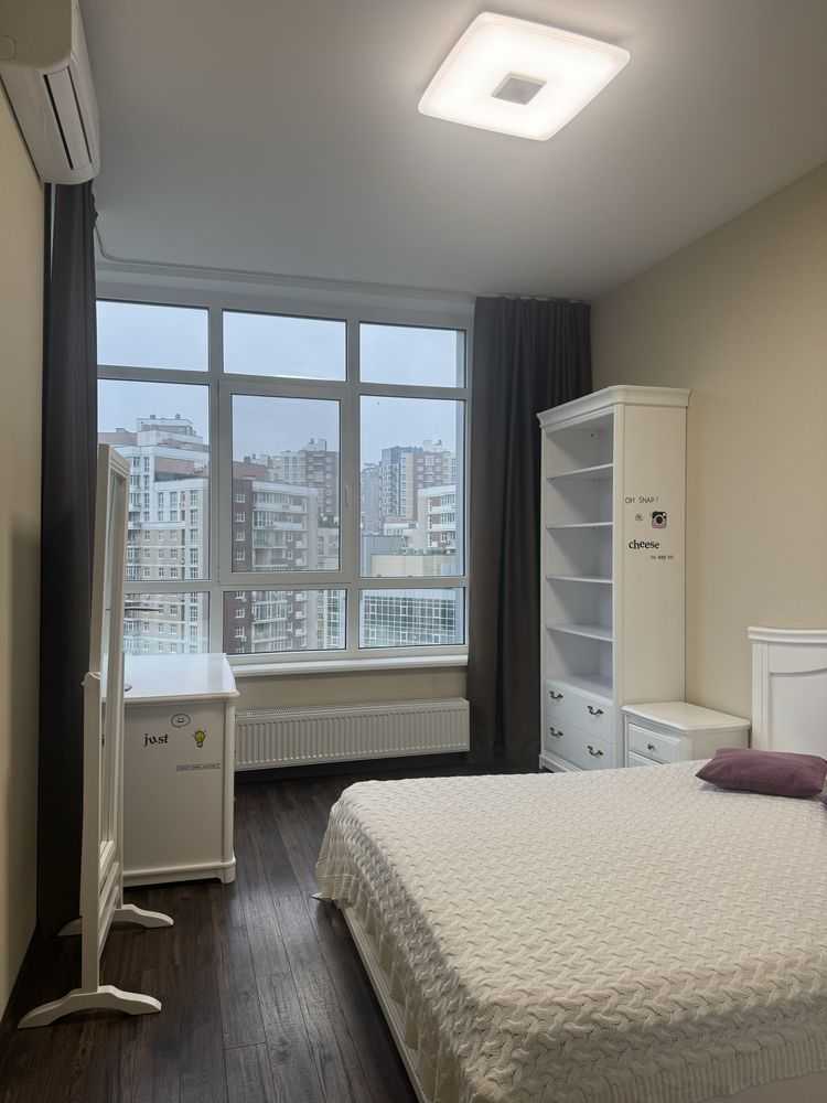Пропонується квартира в ЖК "Central Park" на вул. Джона Маккейна 7. Квартира має незвичайне планування з двома спальнями, одна з яких може стати дитячою або робочим кабінетом. Просторна кухня-вітальня площею 19.9 м² вміщує вбудовану кухню та обідню зону. Санвузол сумісний з теплою підлогою і тропічним душем. Є підземний паркінг та дизайнерське лоббі з охороною. Близькість супермаркетів та станції метро «Либідська» забезпечує комфортне проживання.