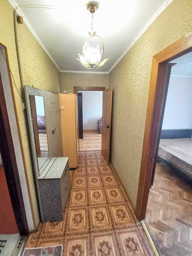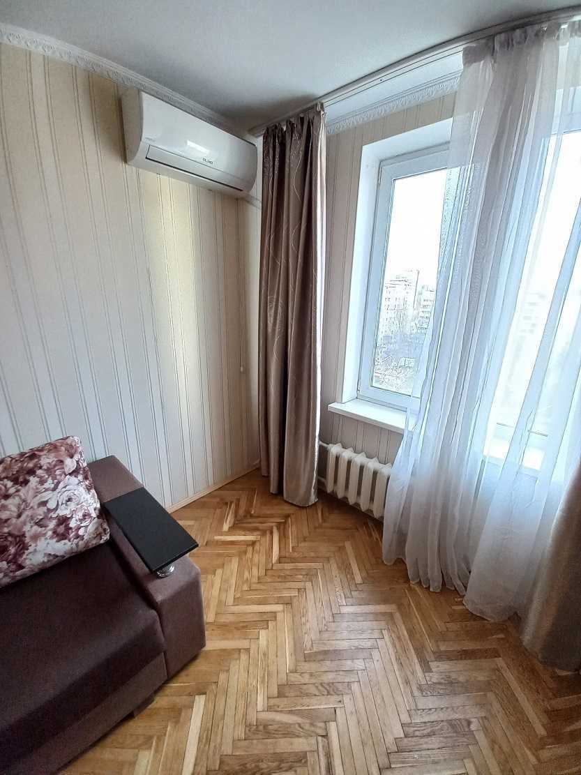 Пропонується двокімнатна квартира на Русанівському масиві, бульвар Ігоря Шамо, 14. Знаходиться на 7-му поверсі 17-поверхового фасадного будинку. Загальна площа 45,22 м² включає дві спальні, кухню та санвузол з душовою кабіною. Наявні два балкони. Квартира після ремонту 2019 року, з паркетною підлогою, якісною сантехнікою та кондиціонером. Укомплектована побутовою технікою та меблями. Вікна виходять у двір.