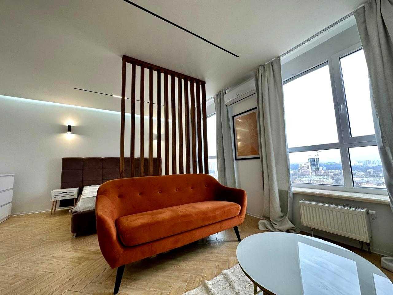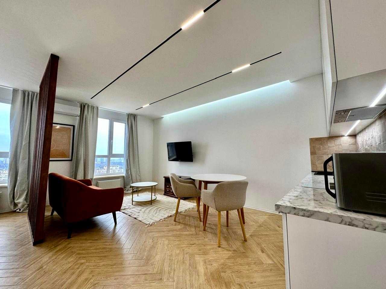 Пропонується стильна дизайнерська квартира на 20-му поверсі нового ЖК UNO City House, розташованого на вулиці Олени Теліги, 25-А, поряд з метро Дорогожичі. Площа – 41 м², планування – студія. Квартира оснащена системою "Розумний дім", повністю мебльована та укомплектована технікою. Якісний ремонт з дорогих матеріалів, підігрів підлоги та LED освітлення додають сучасного вигляду. Територія комплексу озеленена, є генератор та працюючі ліфти, що забезпечують комфорт у будь-яку пору. Розвинута інфраструктура: парки, магазини та кафе поруч.