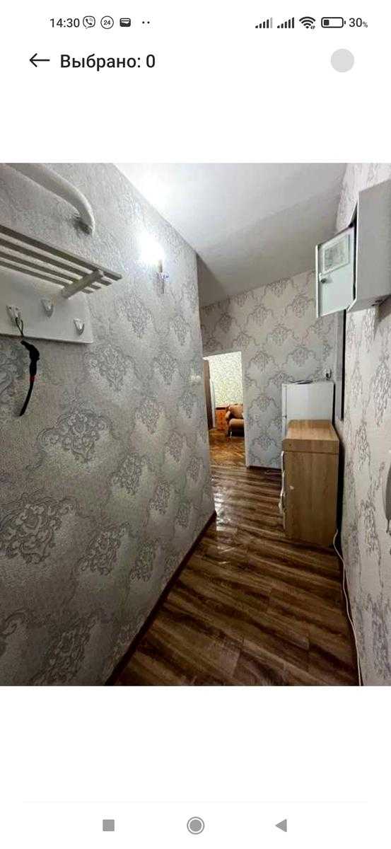 Квартира на вул. Будівельників, 12, на 5-му поверсі п'ятиповерхового будинку. Загальна площа складає 33 м². Стандартне роздільне планування з однією кімнатою, косметичний ремонт. В оснащення входять два розкладних дивани, шафа, стіл, кондиціонер, газова плита, холодильник, пральна машина, мікрохвильова піч. Санвузол суміщений, є засклений балкон. Вікна металопластикові виходять у двір. Поруч розташовані школа, дитсадок, зупинки транспорту, розважальні заклади, парк і супермаркет. Опалення центральне, гаряча вода через електричний бойлер.