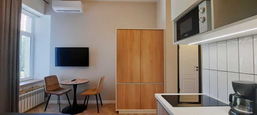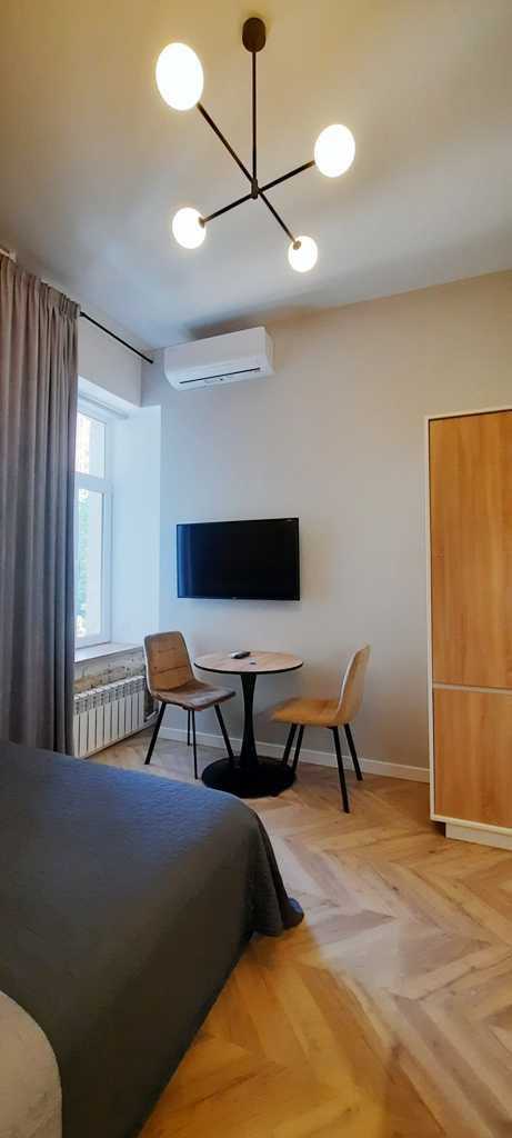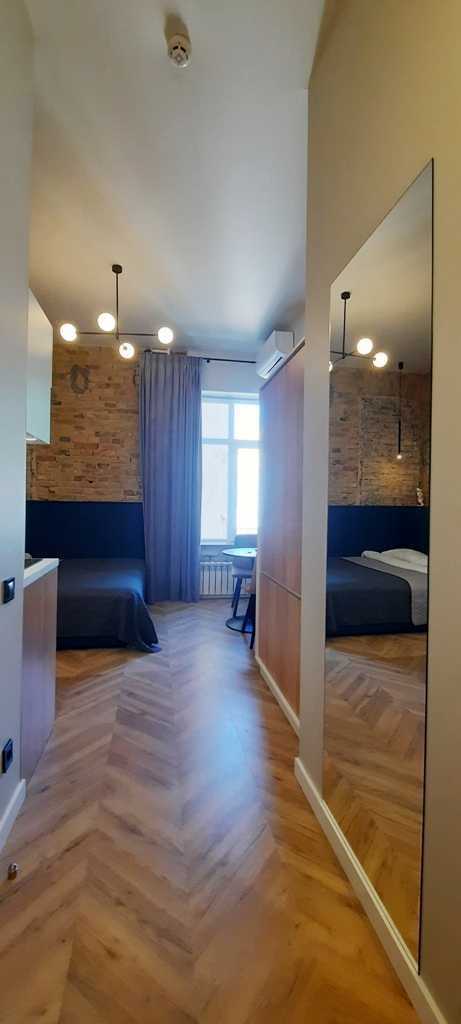 Пропонуються сучасні 1-комнатні апартаменти в історичному центрі Києва, на Малопідвальній, 4, поблизу Майдану Незалежності. Загальна площа 19 кв.м. Апартаменти компактні та функціонально сплановані. Оснащені бойлером, кондиціонером, мікрохвильовою піччю, електрочайником, плазмовим телевізором та комплектом посуду. Розташовані на 3-му поверсі, наявність ліфта відсутня.