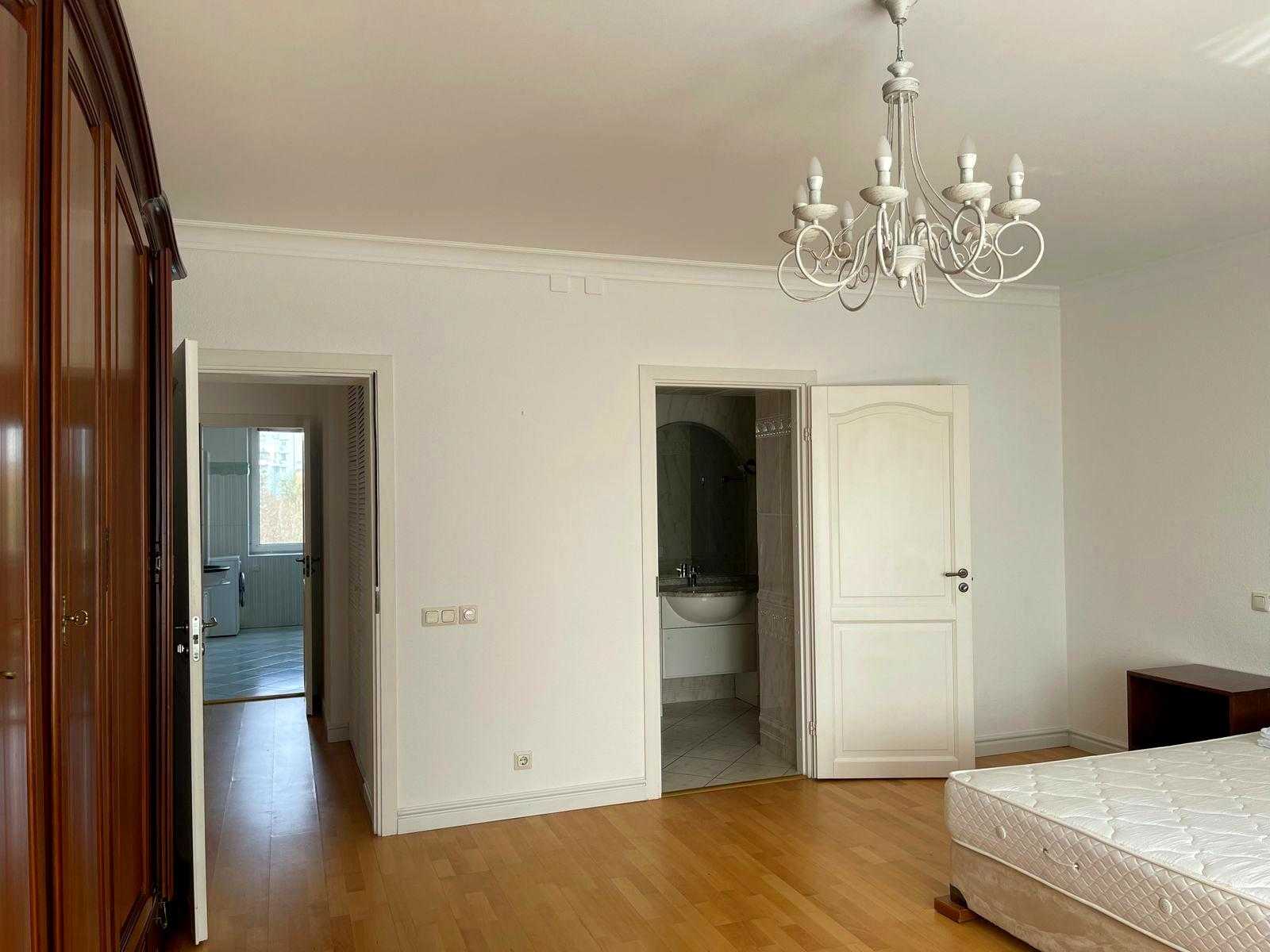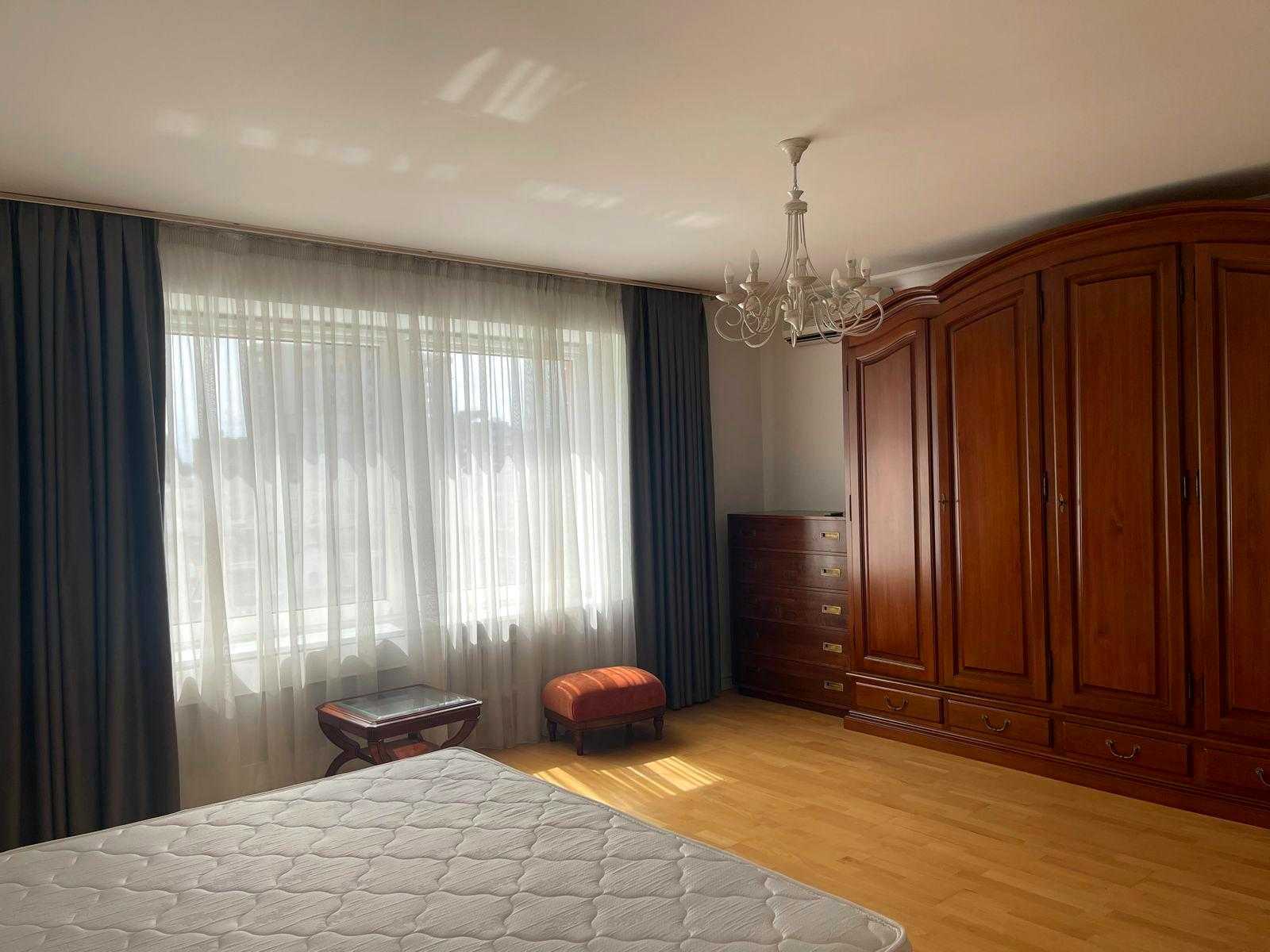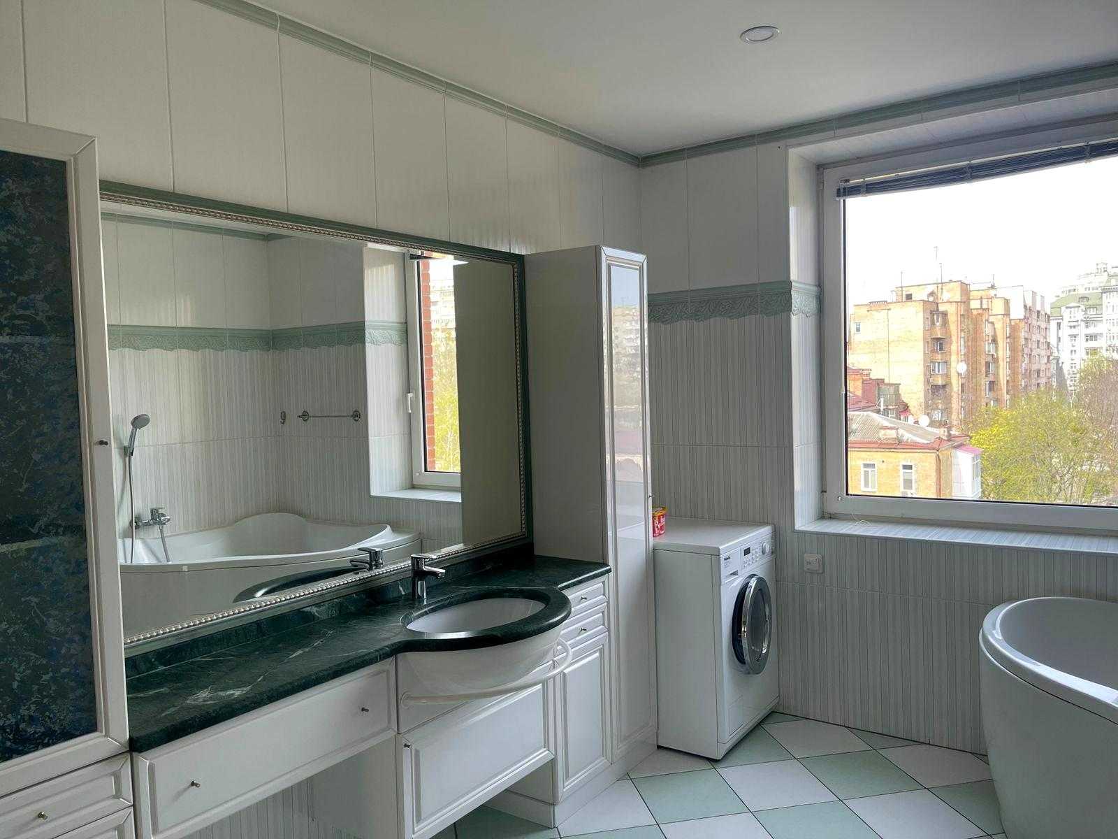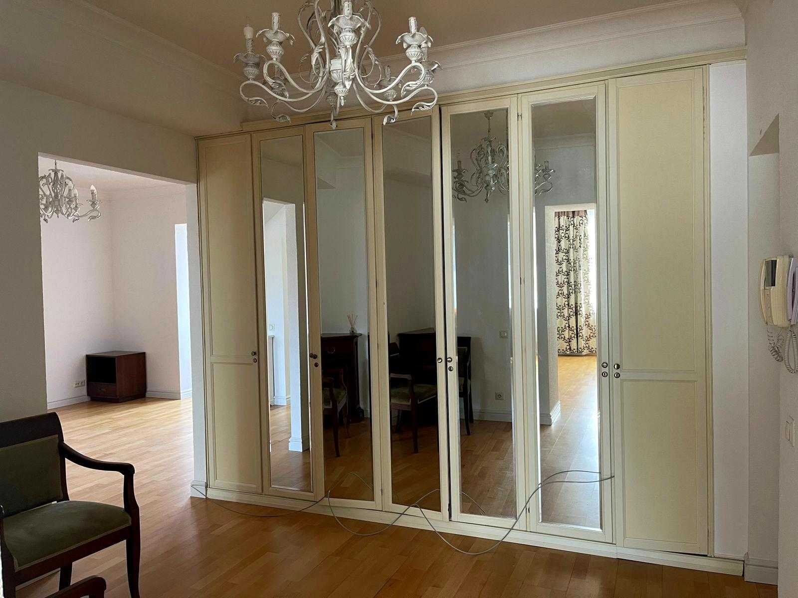 Пропонується квартира на Олександра Кониського вул., 52-58, в Шевченківському районі Києва, неподалік від метро Лук'янівська. Це клубний будинок з двома квартирами на поверсі площею 190 м² на 8-му поверсі. Квартира має сучасний класичний ремонт, висота стель 3 м, паркет, а кухня та столярка виконані з дерева. Раціональне планування в два рівня: на першому розташовані вітальня, кухня-столова, спальня та с/в; на другому - три спальні та два с/в. Доступні підземний та гостьовий паркінг, закрита прибудинкова територія, а також власна котельня.