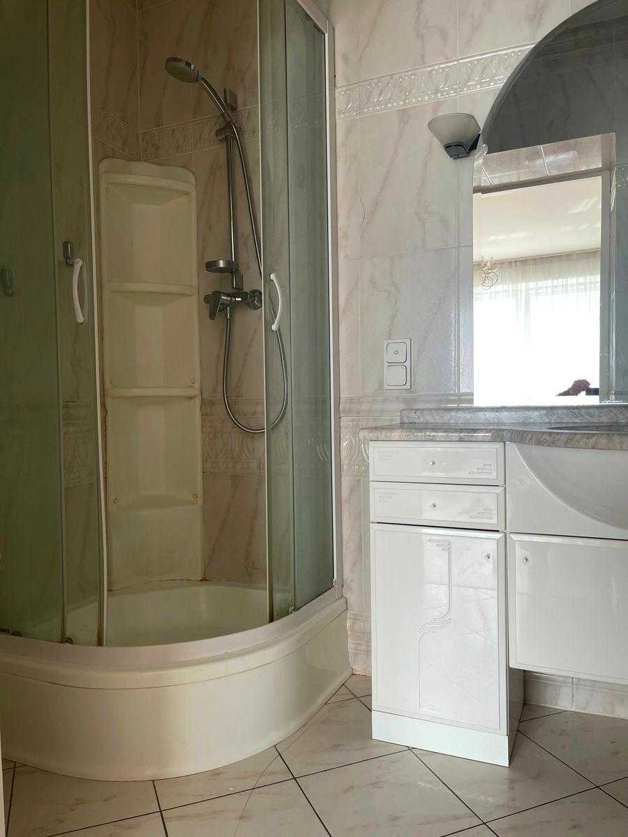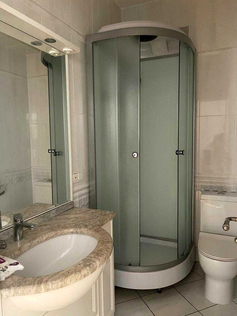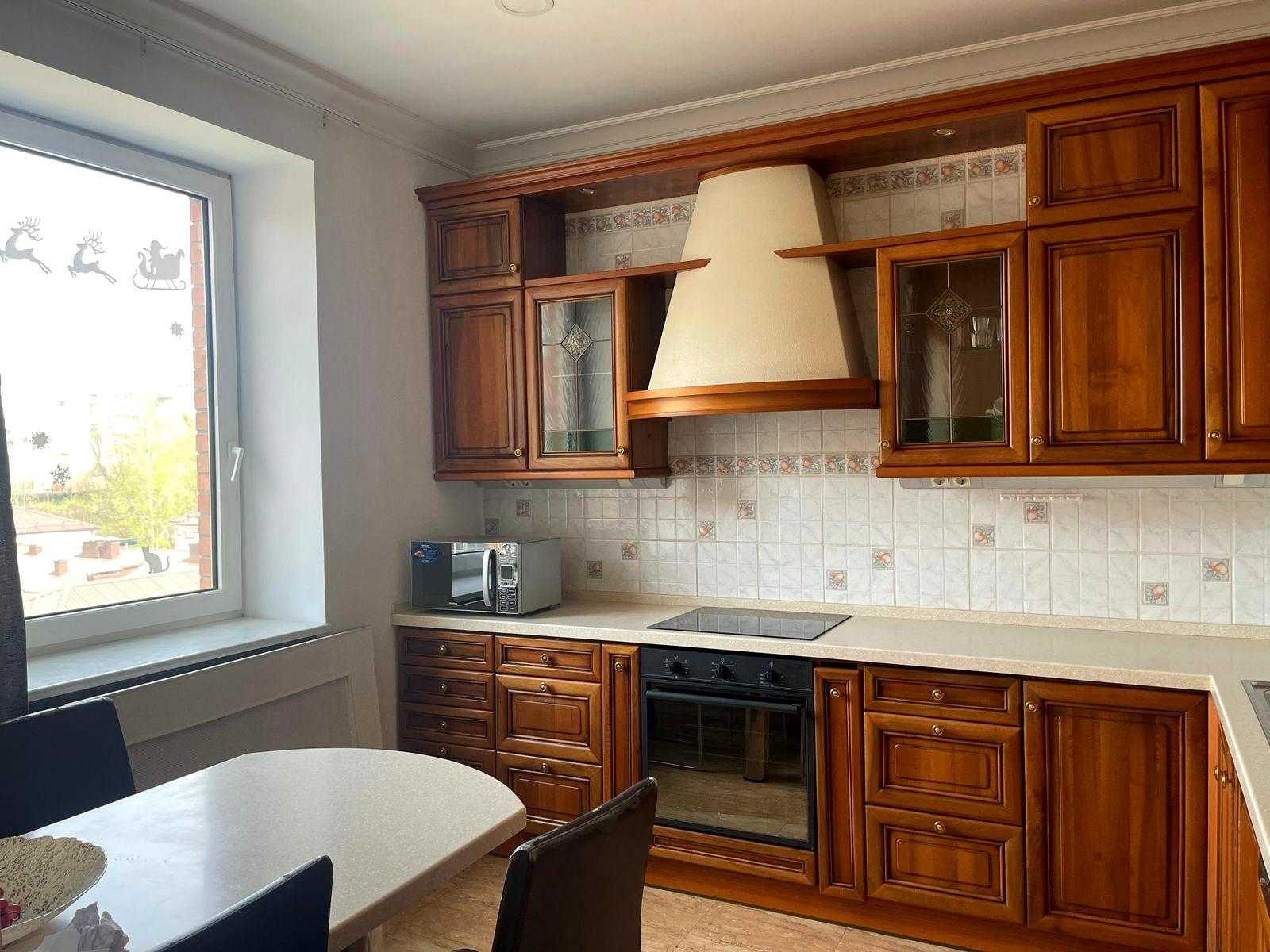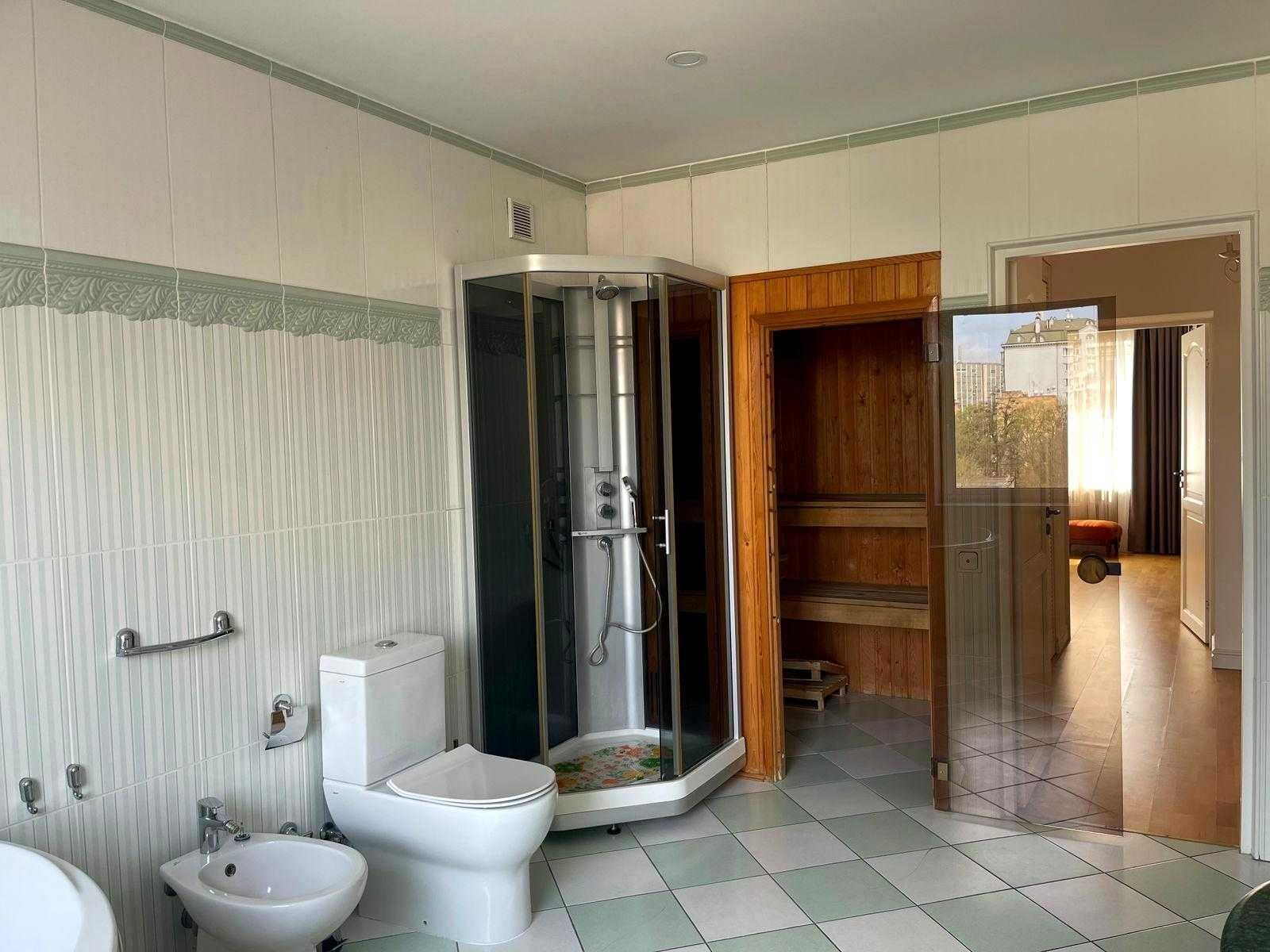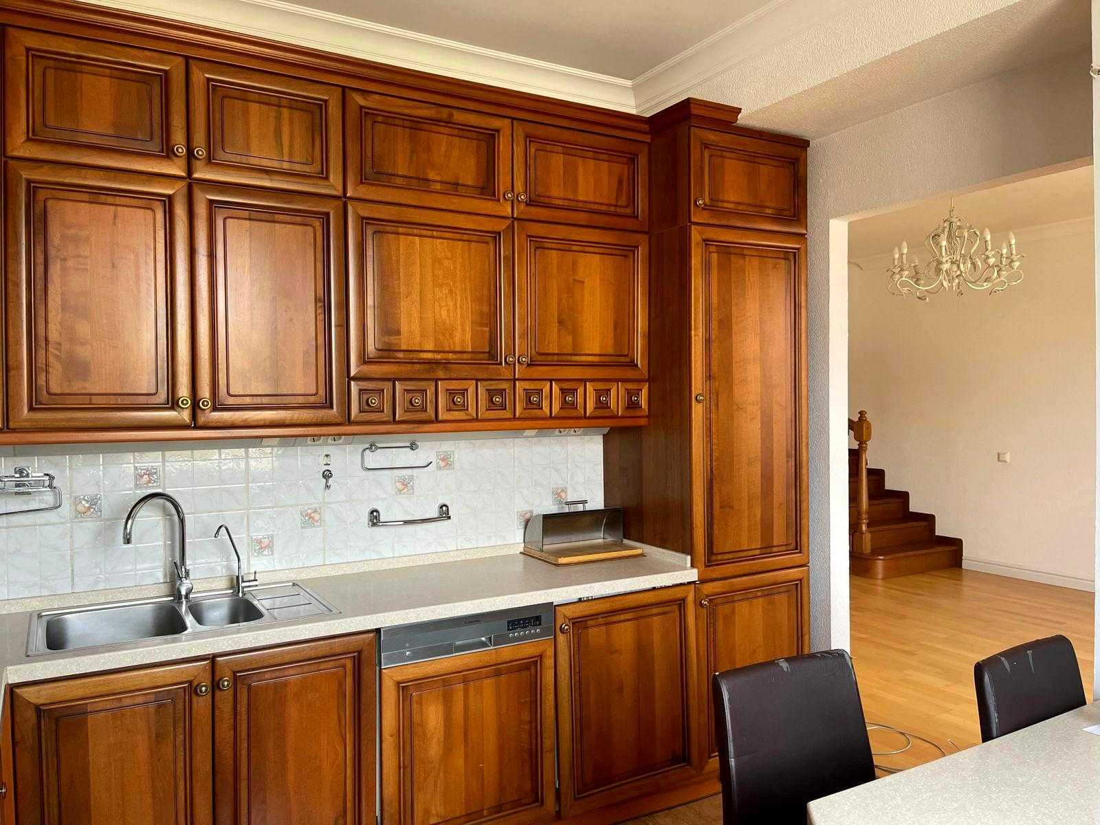 Пропонується квартира на Олександра Кониського вул., 52-58, в Шевченківському районі Києва, неподалік від метро Лук'янівська. Це клубний будинок з двома квартирами на поверсі площею 190 м² на 8-му поверсі. Квартира має сучасний класичний ремонт, висота стель 3 м, паркет, а кухня та столярка виконані з дерева. Раціональне планування в два рівня: на першому розташовані вітальня, кухня-столова, спальня та с/в; на другому - три спальні та два с/в. Доступні підземний та гостьовий паркінг, закрита прибудинкова територія, а також власна котельня.