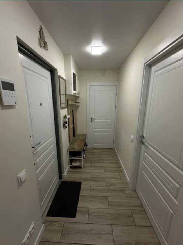 Пропонується до уваги 2-кімнатна квартира на вул. Олега Мудрака, 41. Площа складає 45 м², кухня – 6 м², розташована на 6-му поверсі 9-поверхового будинку. У квартирі виконано капітальний ремонт у 2023 році із заміною всіх систем. Стильний інтер'єр з використанням німецького ламінату та плитки. Утеплена лоджія з комфортним робочим місцем, наявність гардеробної та ніш під техніку. Кухня облаштована вбудованою технікою, два кондиціонери, бойлер, відеодомофон. Розвинута інфраструктура: школи, садочки, парк, супермаркети.