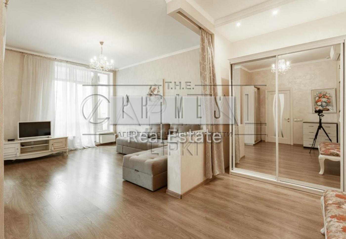 Квартира розташована в елітному ЖК "Новопечерські Липки" на вулиці Андрія Верхогляда. Площа 50 м², з кухнею-студіо та відокремленою зоною спальні. Є балкон з видом на парк, ванна кімната та багато місця для зберігання речей. Внутрішня інфраструктура включає ландшафтний парк, тенісний корт, спортивні та дитячі майданчики. Комплекс пропонує SPA-салон, преміум-фітнес-клуб, магазини, ресторани, дитячі заклади та культурні центри. Вигідне розташування біля станції метро Дружби Народів.