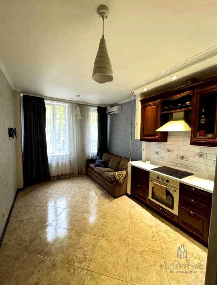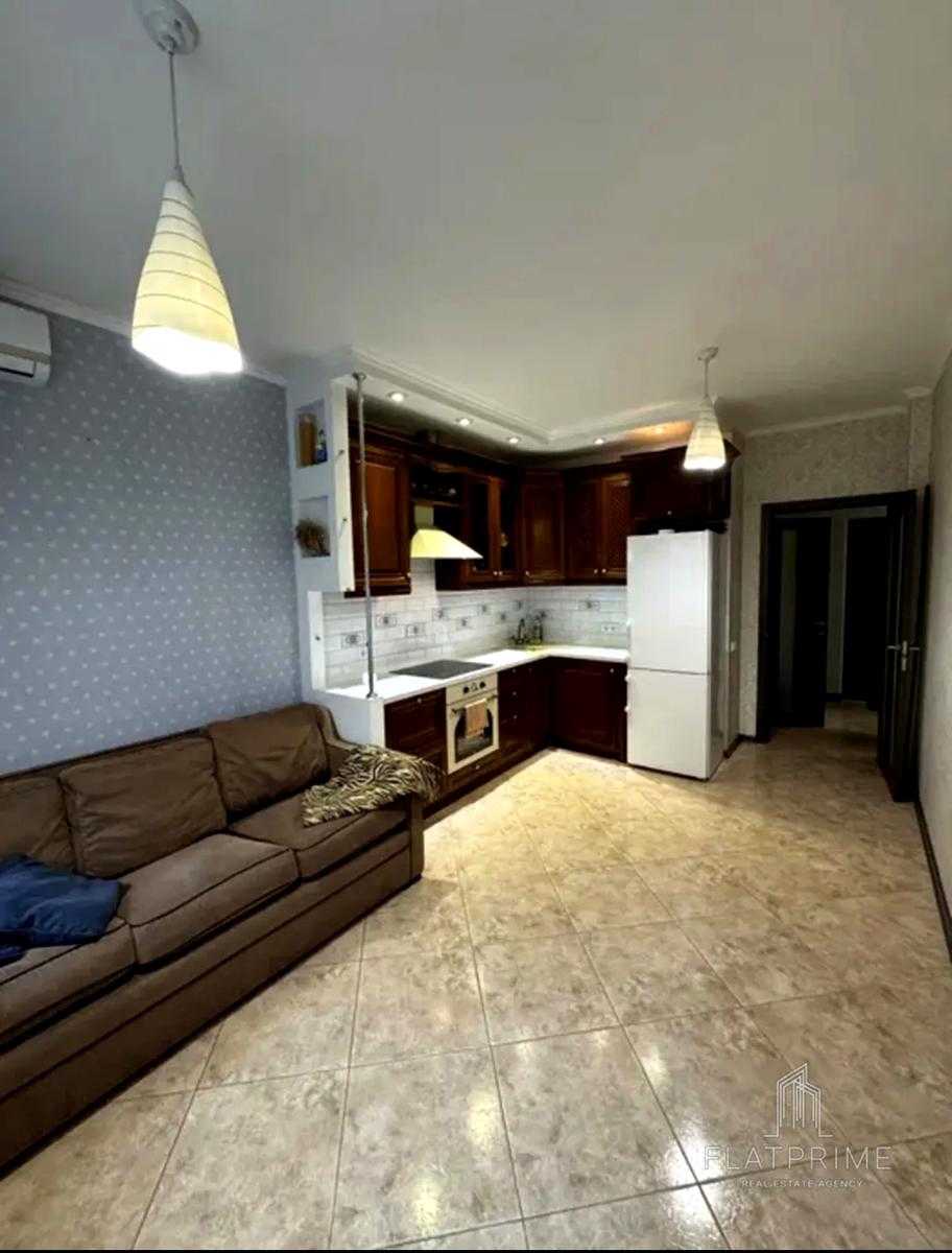 1-кімнатна квартира в ЖК «Комфорт Таун», площею 45 м², розташована на 1 поверсі 3 корпусу. Квартира повністю мебльована та укомплектована технікою. Наявні окрема спальня, кухня-студія, гардеробна та ванна кімната. Інтернет, опалення і водопостачання функціонують навіть при відключенні електрики. Вікна виходять у тихий двір. У безпосередній близькості розташовані Novus, аптеки та кавʼярні.