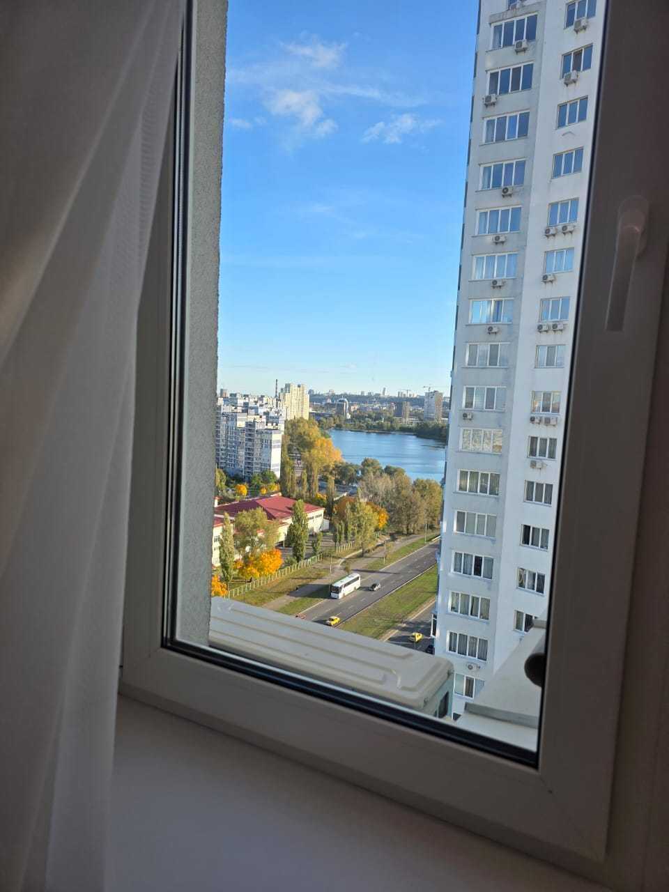 Двокімнатна квартира в ЖК Obolon SKY, розташована на 17-му поверсі 25-поверхового будинку. Квартира має сучасний ремонт, з оснащенням технікою: холодильник, посудомийна машина, 2 телевізори, 2 кондиціонери, бойлер, мікрохвильова піч, електрочайник, пральна машина. Спільна територія закрита, є підземний та відкритий паркінг, консьєрж, охорона, спортивні майданчики, дитячі зони. Вигідне місцезнаходження поруч метро Оболонь, ТРЦ Дрім Таун та набережна.
