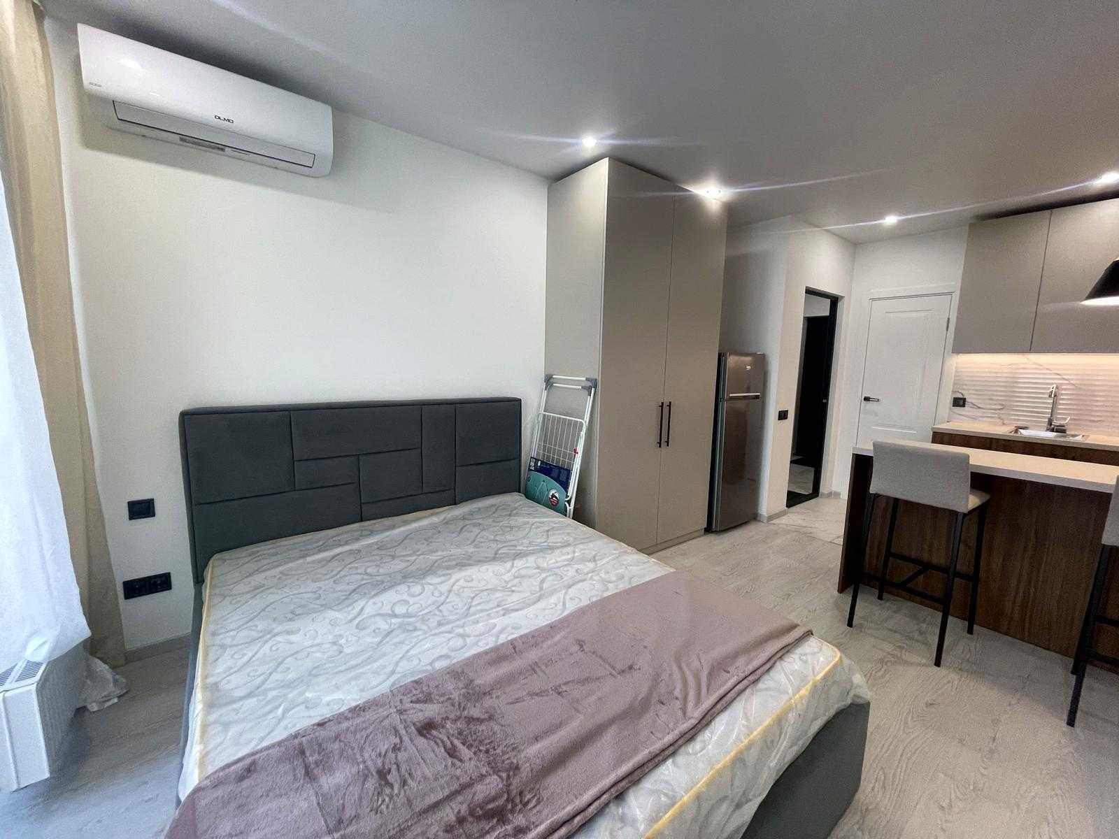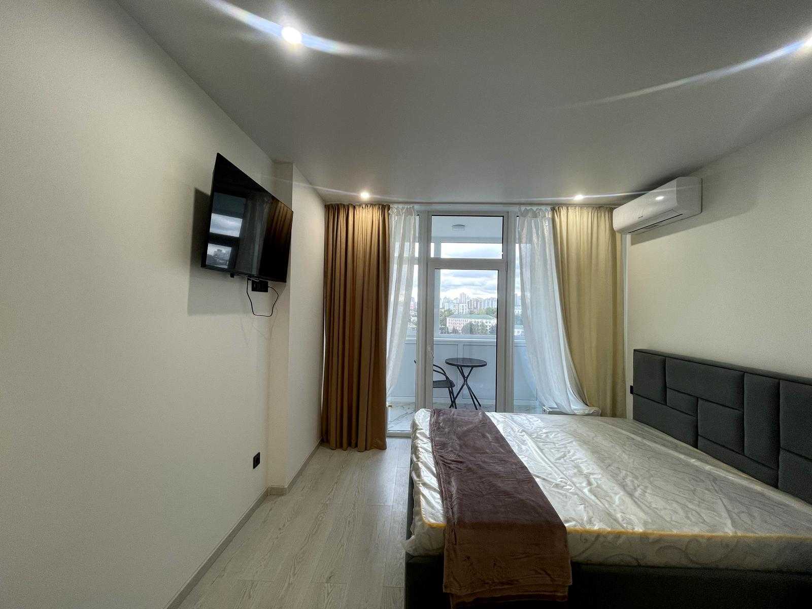 Пропонується 1-кімнатна квартира-студіо в ЖК Manhattan City, розташована на Берестейському проспекті у Шевченківському районі Києва. Квартира повністю укомплектована меблями та побутовою технікою, включаючи телевізор, холодильник, ліжко і пральну машину. Дизайнерський ремонт надає приміщенню сучасний вигляд. Будинок бетонно-монолітний, з зручною транспортною розв'язкою та розвиненою інфраструктурою. Квартира готова до переглядів. Є генератор.