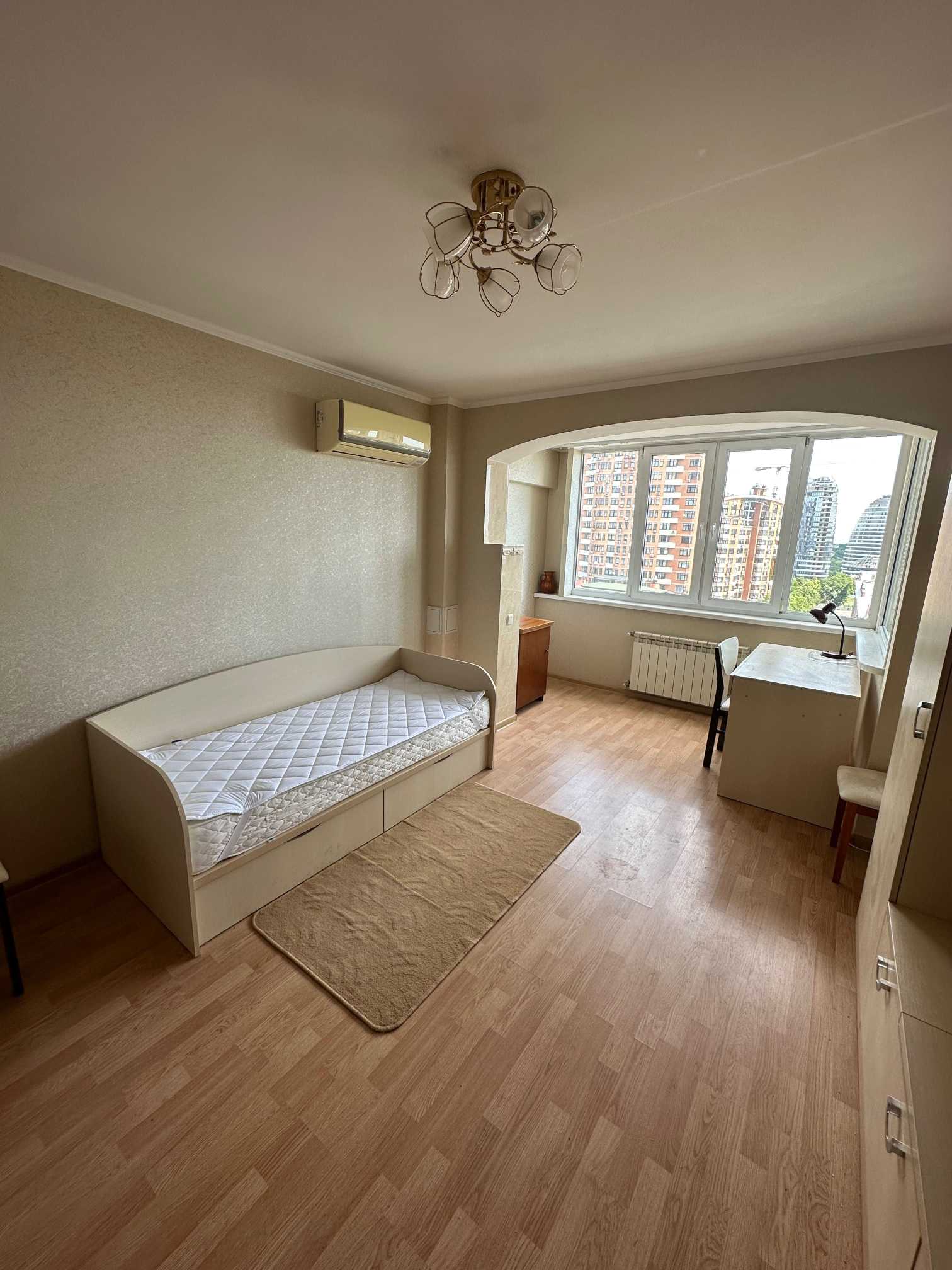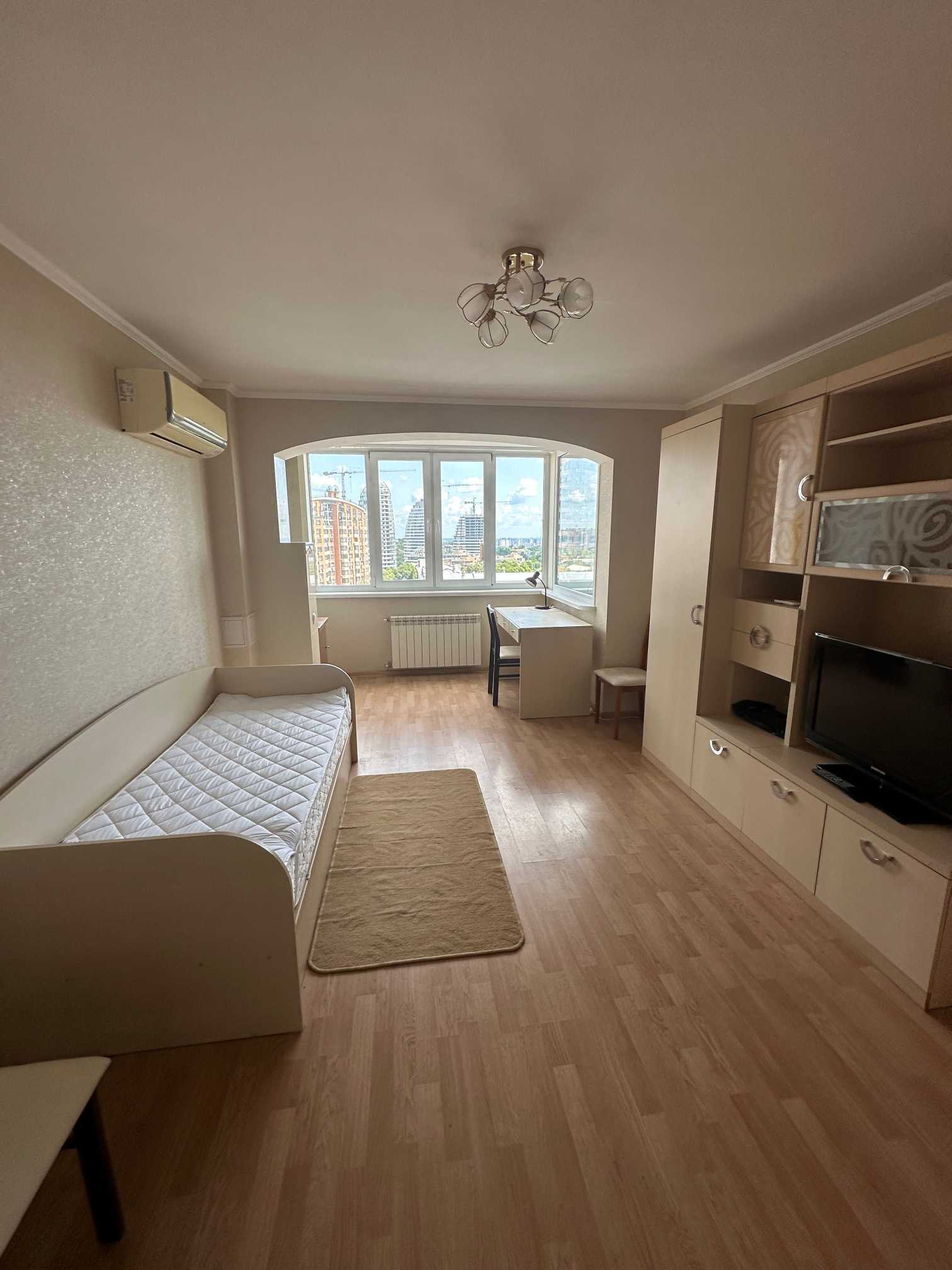 Однокімнатна квартира розташована на 11 поверсі 14-поверхового будинку на бульварі Лесі Українки, 30а, в Печерському районі. Загальна площа становить 40 кв.м, з якої 18 кв.м займає кімната, а 12 кв.м - кухня. Квартира має свіжий ремонт з використанням іспанської плитки та норвезького ламінату. Встановлено євровікна та євробатареї. З техніки присутні бойлер, газова плита, духова шафа, холодильник, пральна машина та кондиціонер. Вікна виходять із чудовим видом на Печерськ. Поруч розташована станція метро.