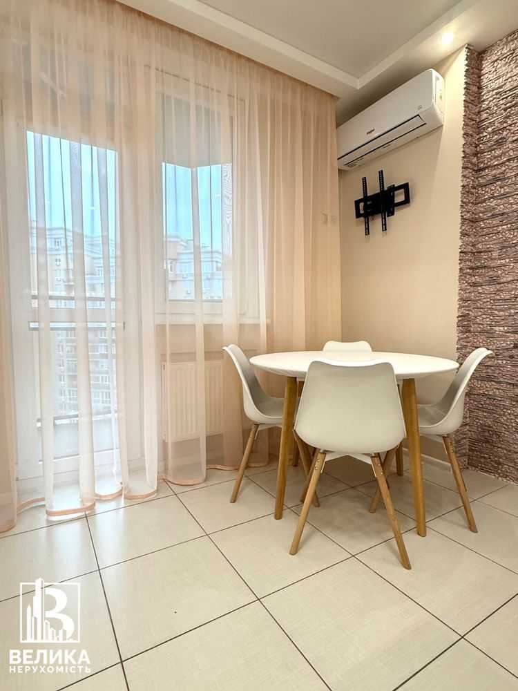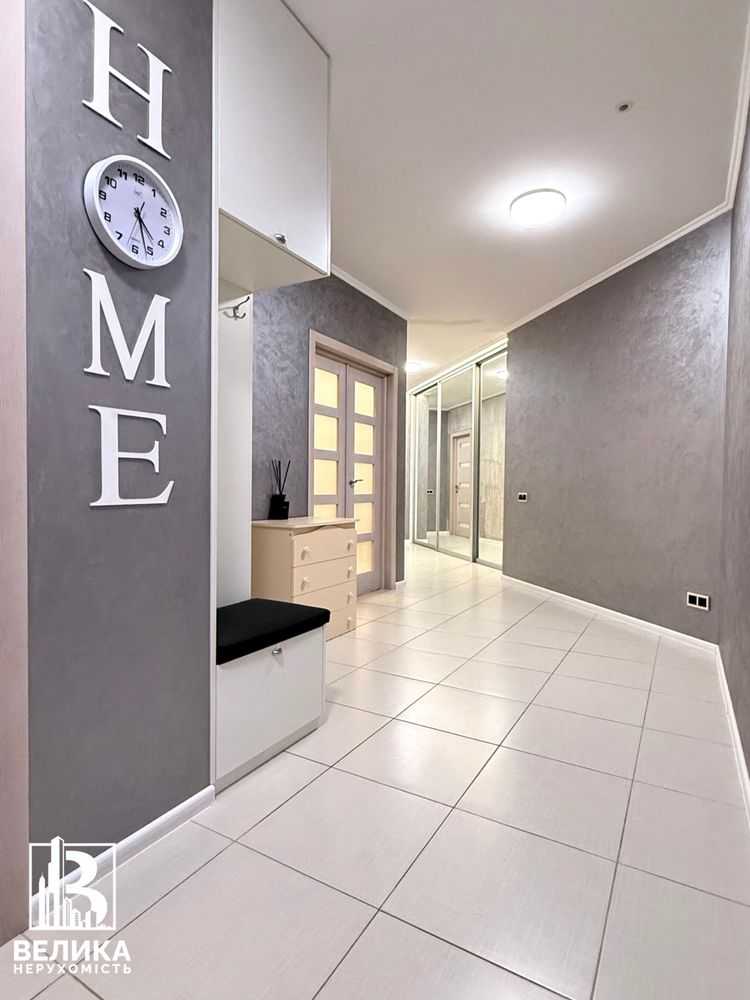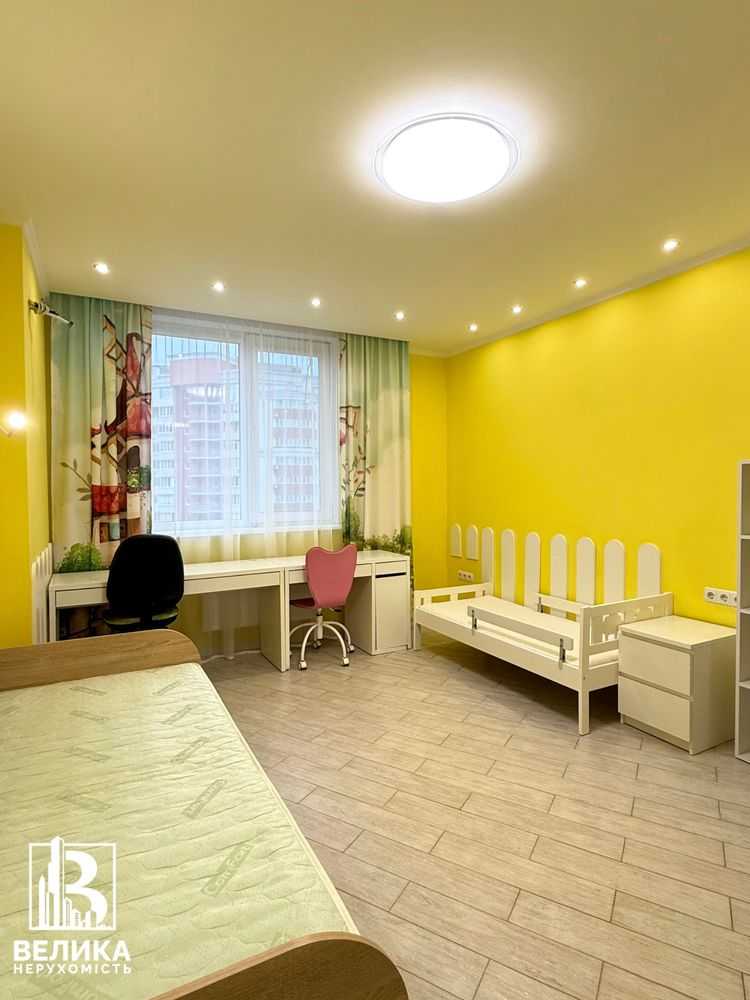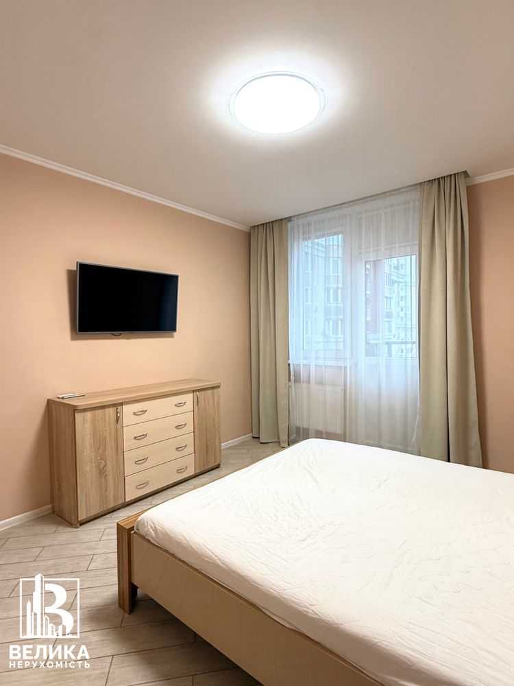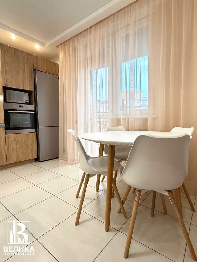 Пропонується до уваги трикімнатна квартира на 11-му поверсі сучасного ЖК Liko-Grad у Києві. Загальна площа 105 м2, квартира має зручне планування з кухнею-вітальнею, трьома спальнями, двома санвузлами та гардеробною. Виконано сучасний ремонт, квартира обладнана новою технікою: індукційна плита, духова шафа, холодильник. Просторі кімнати обладнані меблями, включаючи великий шафу та комфортні стільці. Входить гараж на території, а навколо будинку розвинена інфраструктура та зручна транспортна розв'язка.