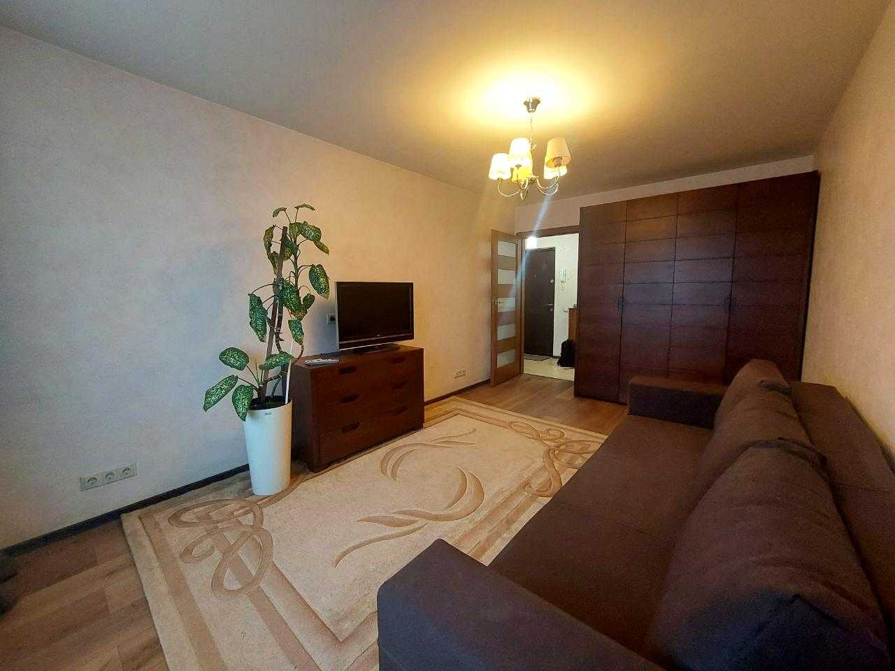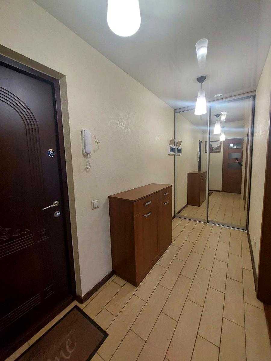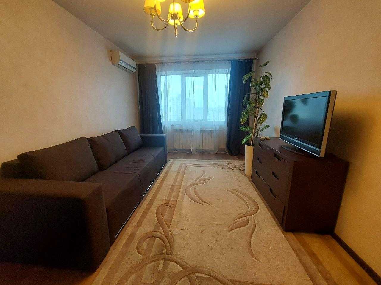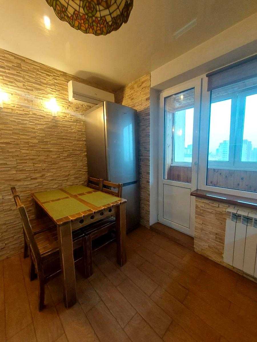 Пропонується 1-к квартира в Оболонському районі, розташована на 15-му поверсі будинку. Квартира має якісний ремонт і обладнана всім необхідним для комфортного проживання. Простора кухня зі встроєною технікою, окрема кімната з двоспальним диваном та великою шафою. Санвузол сумісний, встановлений душ. Є засклений балкон, побутова техніка включає холодильник, пральну машину, водонагрівач та два кондиціонери. Інфраструктура розвинута, до метро Мінська всього 7 хвилин.