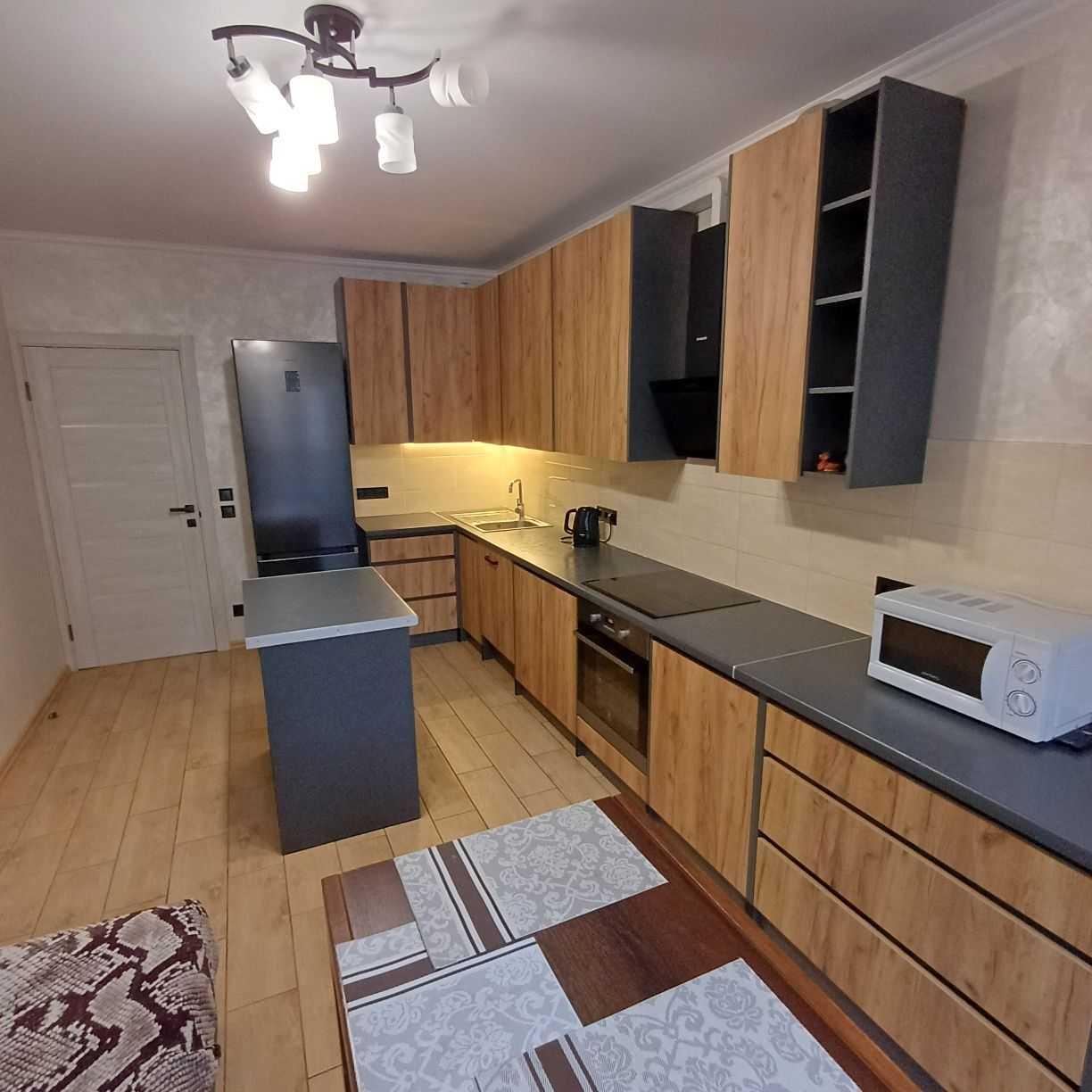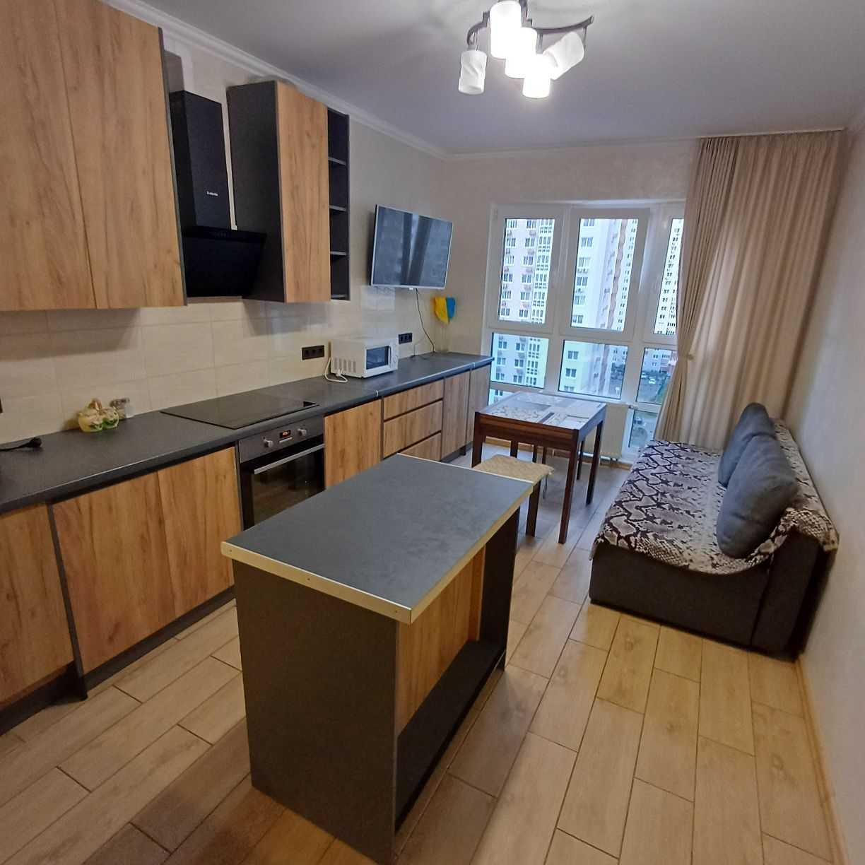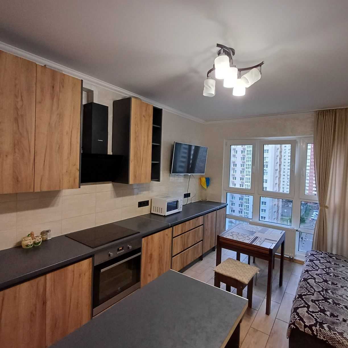 Пропонується 2-кімнатна квартира в житловому комплексі "Патріотика" на вулиці Бориса Гмирі, побудованій у 2021 році. Квартира площею 72 кв. м розташована на 11-му поверсі 24-поверхового будинку. В кімнатах виконано сучасний ремонт з використанням венеційської штукатурки, ламінату та кахлю. Спальня обладнана двоспальним ліжком, тумбами та комодом, а дитяча - має два ліжка, письмовий стіл та шафу. Простора кухня (17 кв. м) мебльована та обладнана усією необхідною технікою. Є два санвузли, бойлер, пральна машинка, пилосос. У будинку діє ОСББ, поруч розташовані супермаркети, а також зручний доступ до станції метро "Позняки".