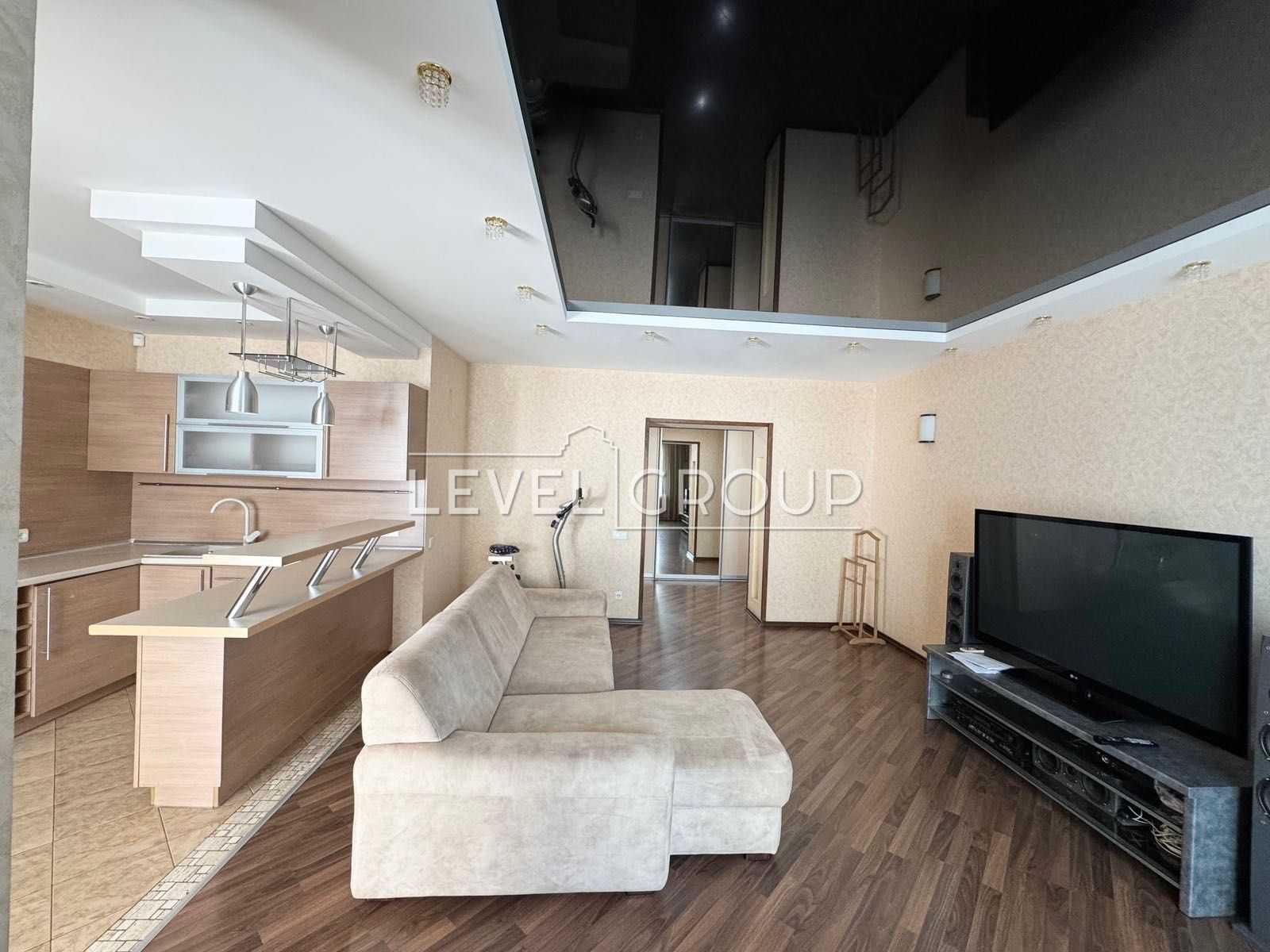Трикімнатна квартира знаходиться на дев'ятому поверсі сучасного будинку за адресою: вул. Анни Ахматової, 33. Площа квартири складає 97 м². Простора кухня-студія, спальня з лоджією, дитяча спальня, ванна кімната з ванною та душем, а також гостьовий санвузол забезпечують комфортне проживання. Квартира оснащена необхідною технікою та меблями, що надає зручності. Додатковою перевагою є паркомісце у підземному паркінгу. У пішій доступності розташовані станція метро Позняки, магазини, школи, та парк.