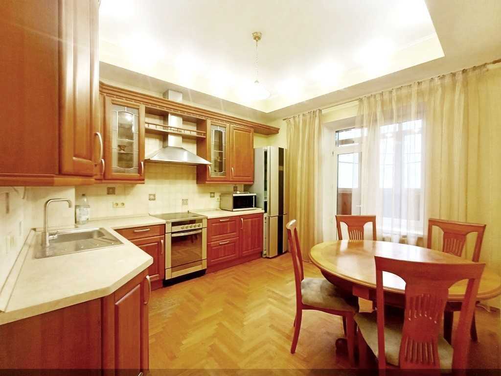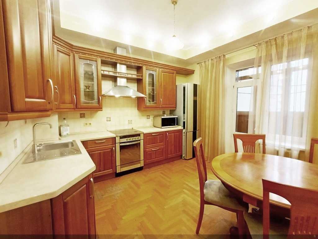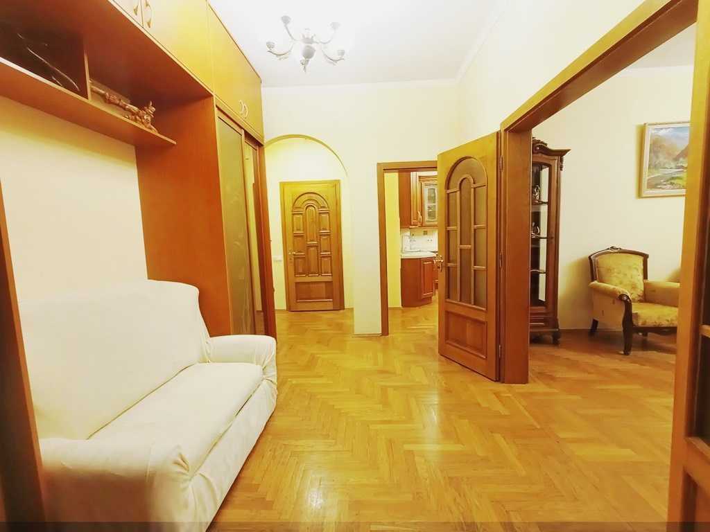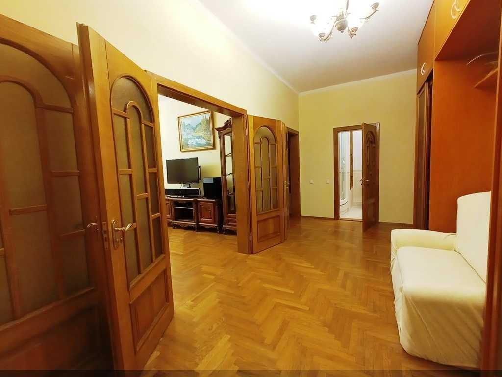 Пропонується в оренду простора 3-кімнатна квартира площею 104 м² у цегляному будинку бізнес-класу 2005 року на 7 поверсі ЖК «Златоустівський». Квартира обладнана усім необхідним для комфортного життя, з кондиціонерами в кожній кімнаті та класичним ремонтом. Висота стель складає 3 метри, зручне планування з великим холом. На території комплексу присутні охорона, відеоспостереження та дитячі майданчики. Навколо розвинута інфраструктура: магазини, кафе, пошта та клініка. Поруч парк, музеї, театри та зупинки транспорту. Для автолюбителів доступне паркомісце в підземному паркінгу.