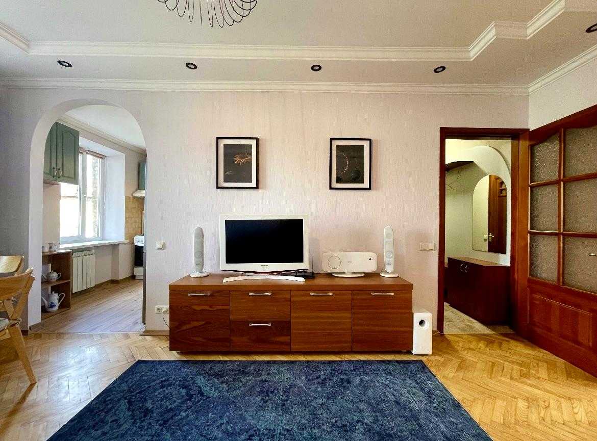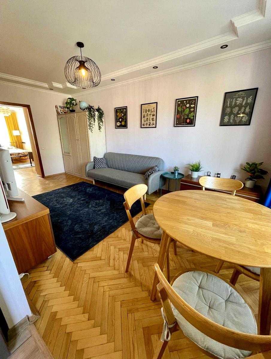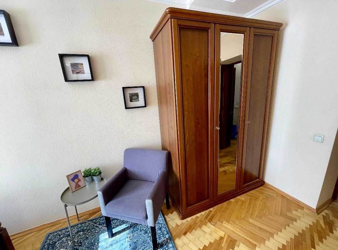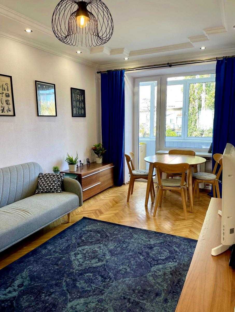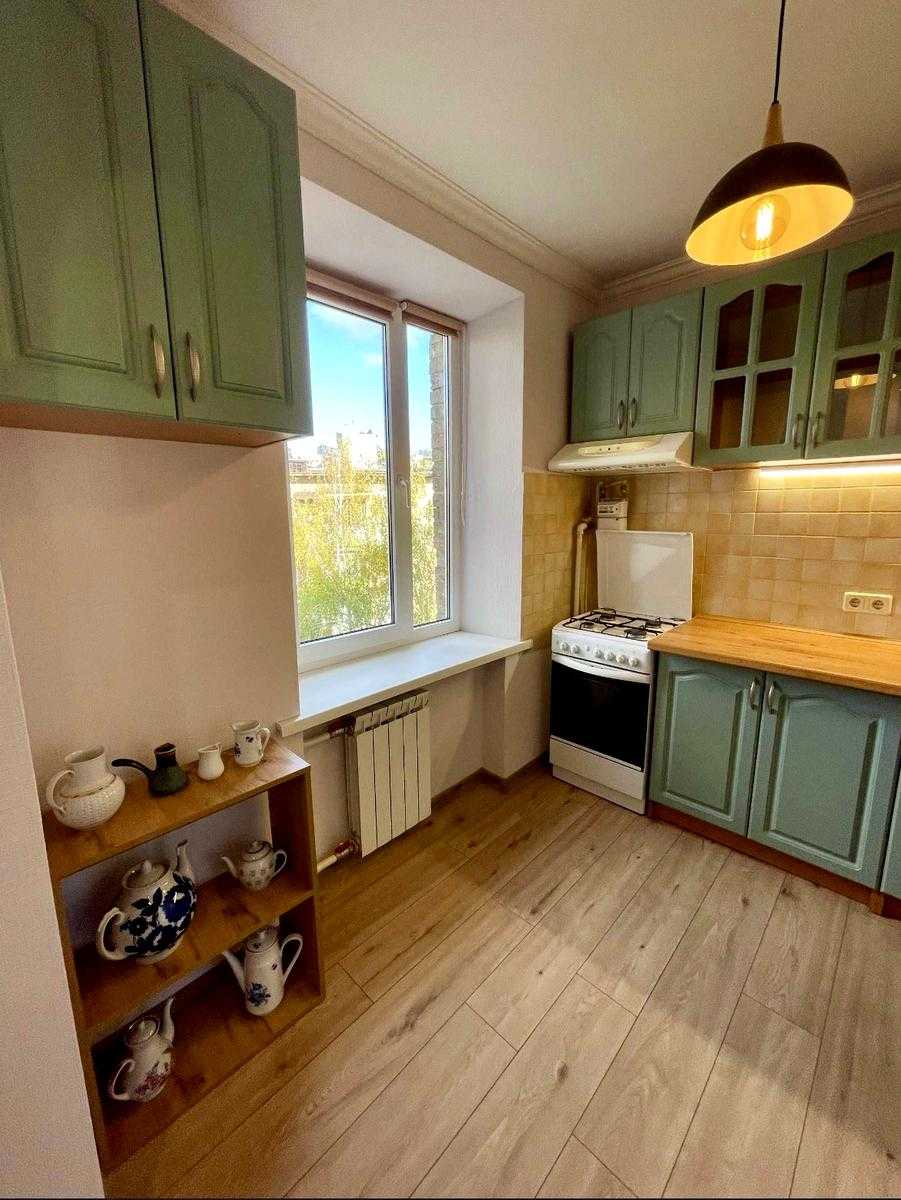 Пропонується затишна 1-кімнатна квартира в центрі Києва на Берестейському проспекті. Квартира знаходиться на 5-му поверсі 6-поверхового будинку, має високу стелю 2,75 м, що надає просторості. У квартирі є вся необхідна техніка та меблі: пральна машина, холодильник, телевізор, мікрохвильова піч та інше. Також є комфортна ванна кімната. У дворі є можливість паркування. Вокзальна станція метро розташована в 750 м. Поряд зупинки громадського транспорту та магазини.